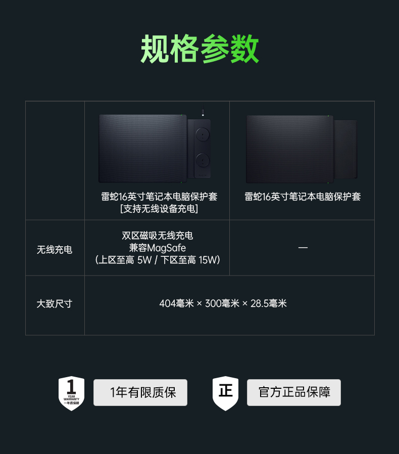 【限时双倍积分】Razer雷蛇 16英寸笔记本电脑保护套 双设备磁吸无线充电【雷蛇官方自营,2年有限质保】