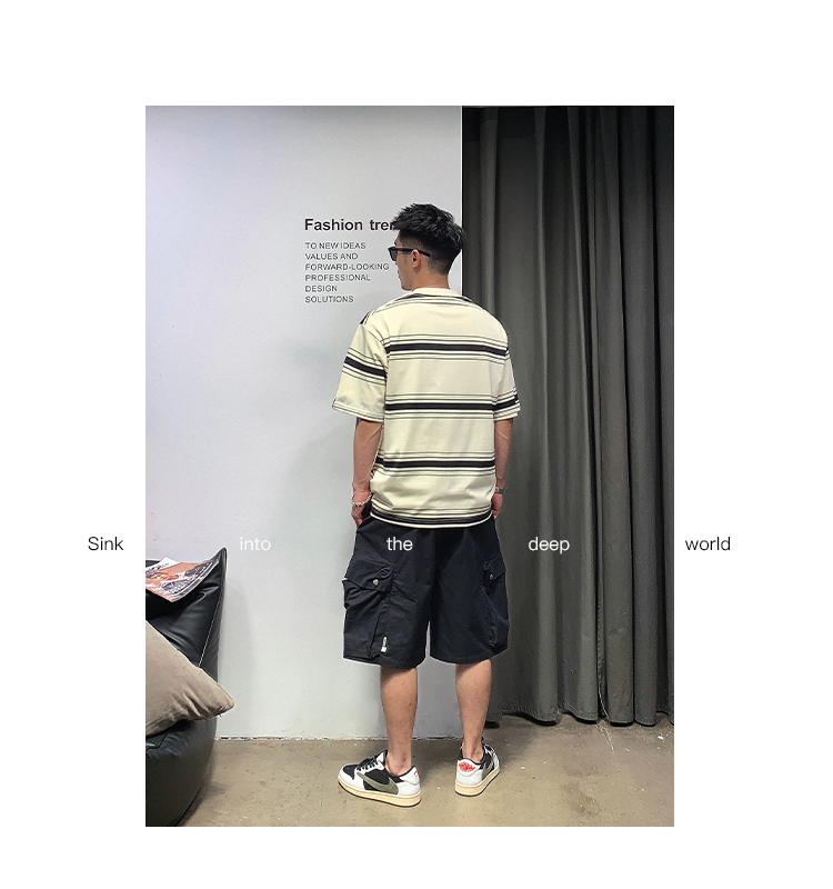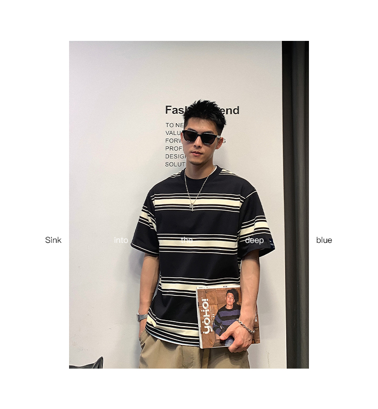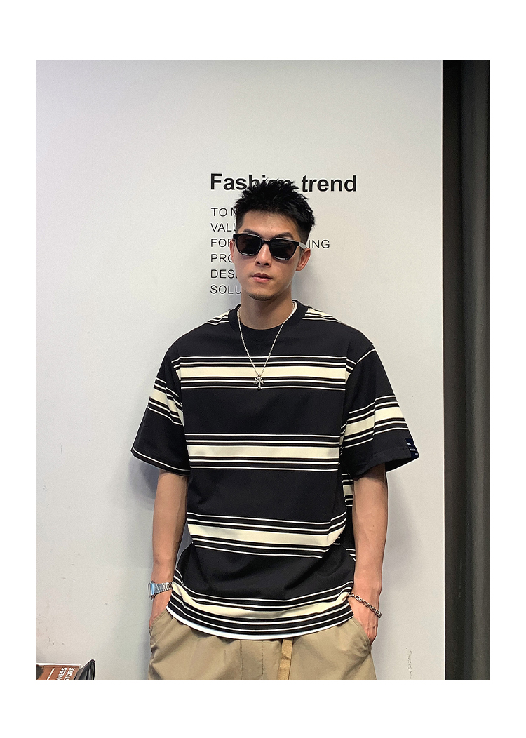 徐太浪美式撞色条纹短袖t恤男夏季时尚休闲潮流百搭宽松半袖上衣