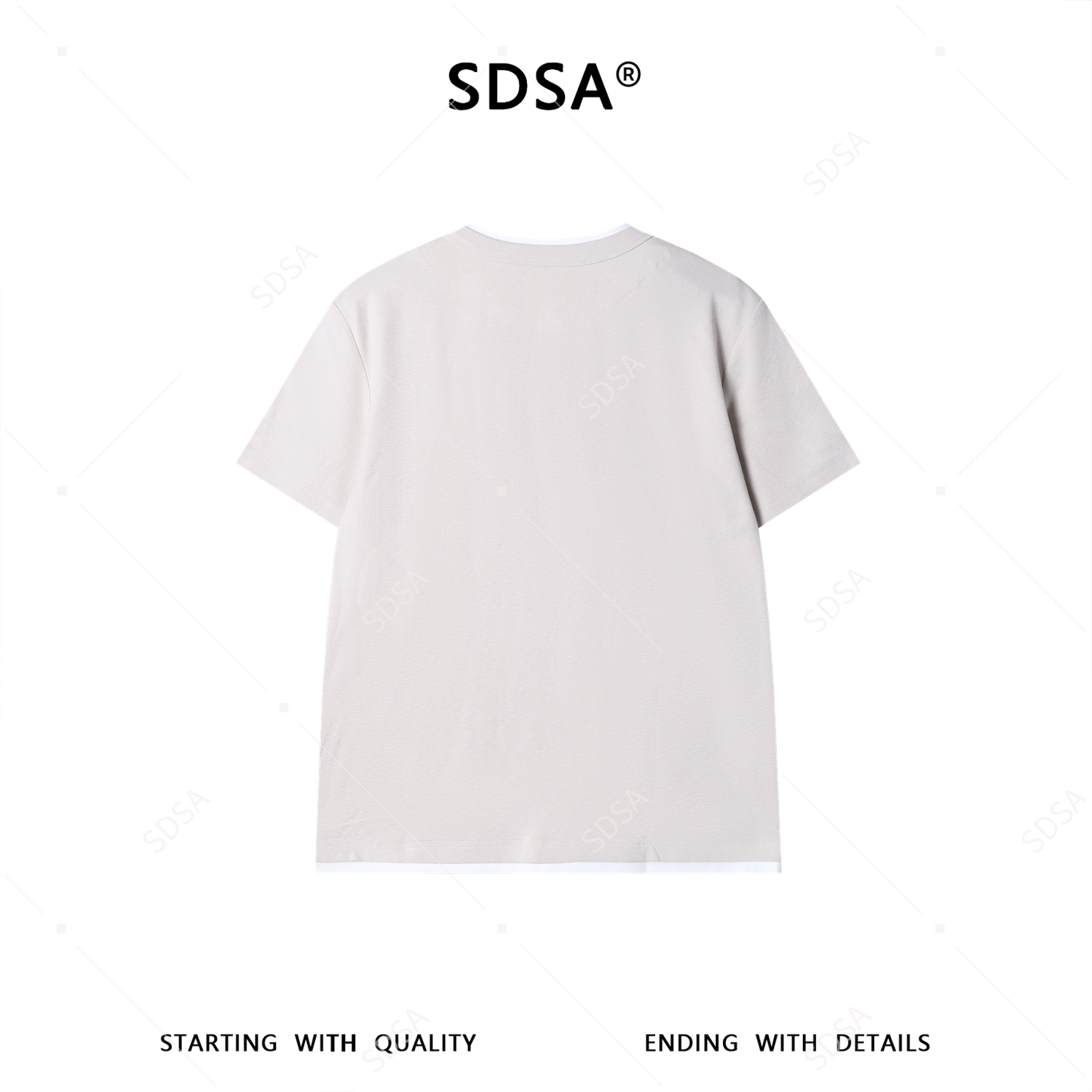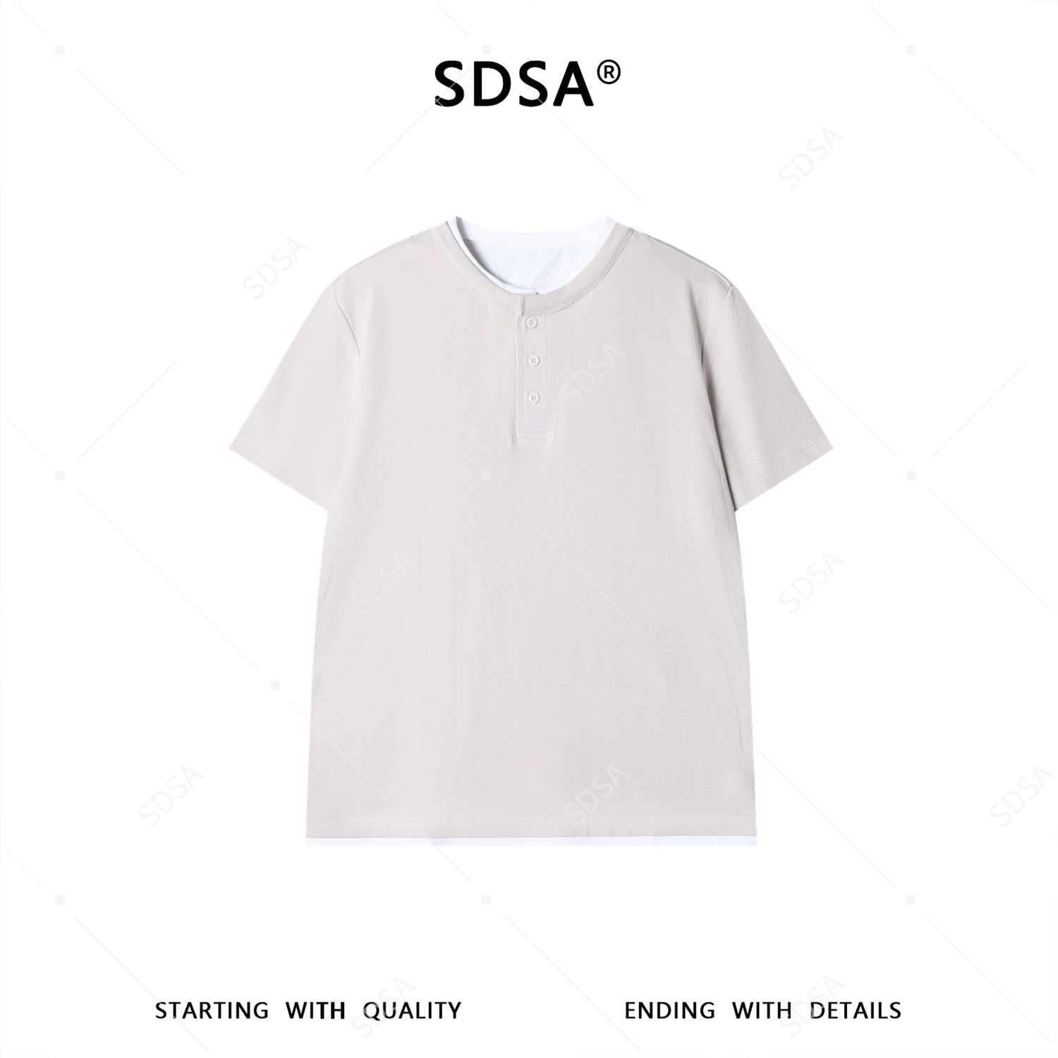 SDSA男装2026新款高贵轻奢韩版半纽扣假两件圆领短袖T恤百搭时尚