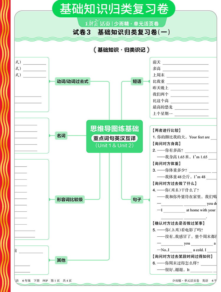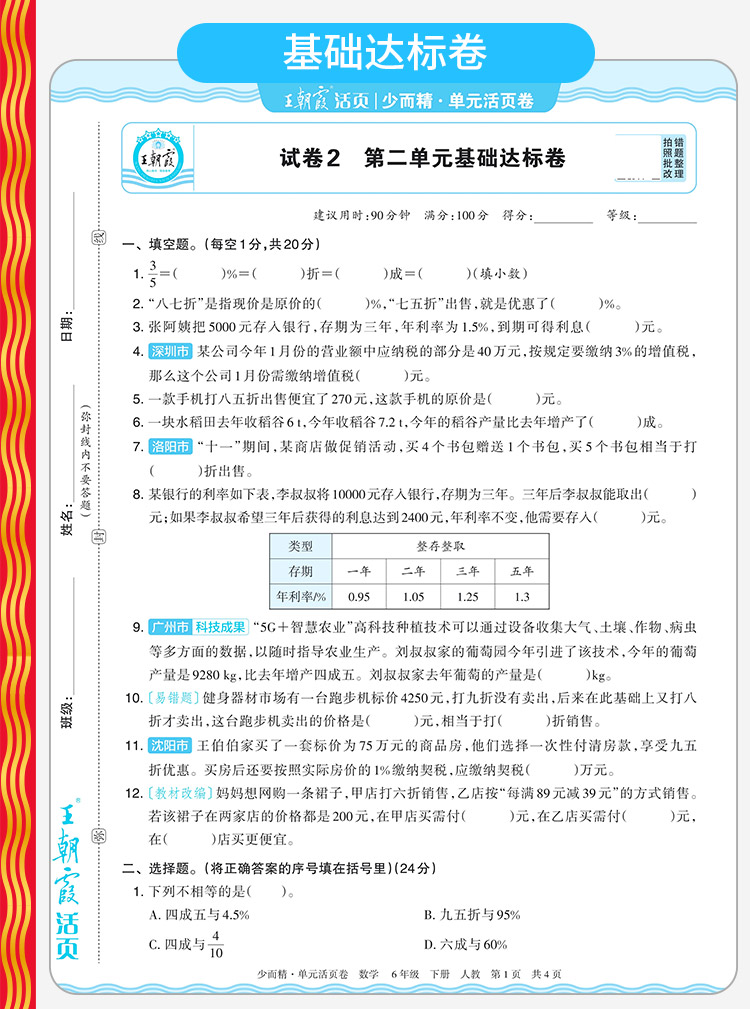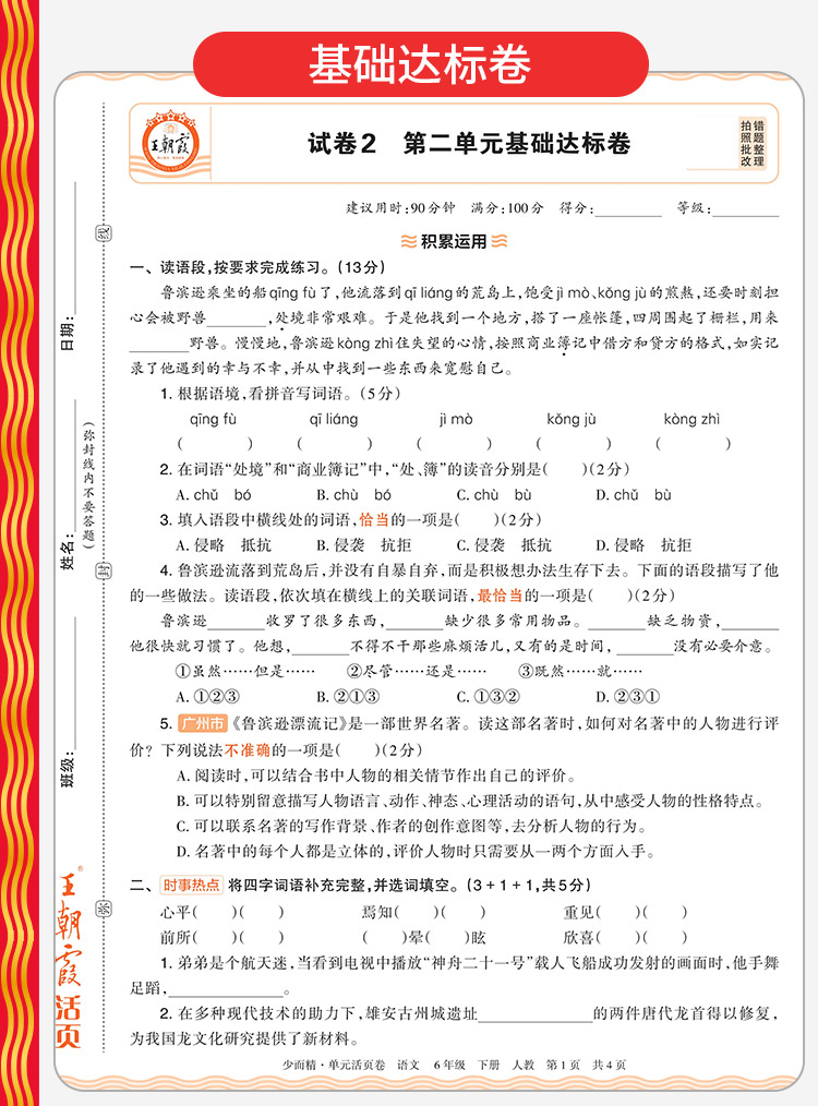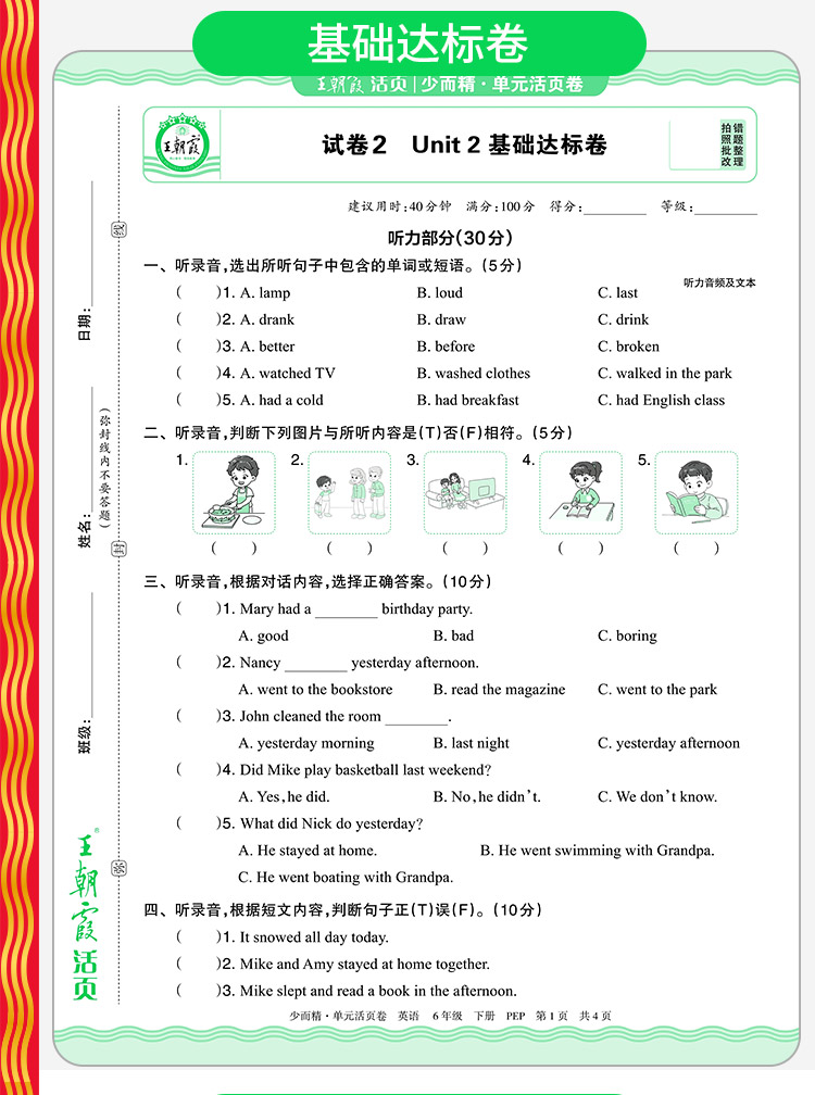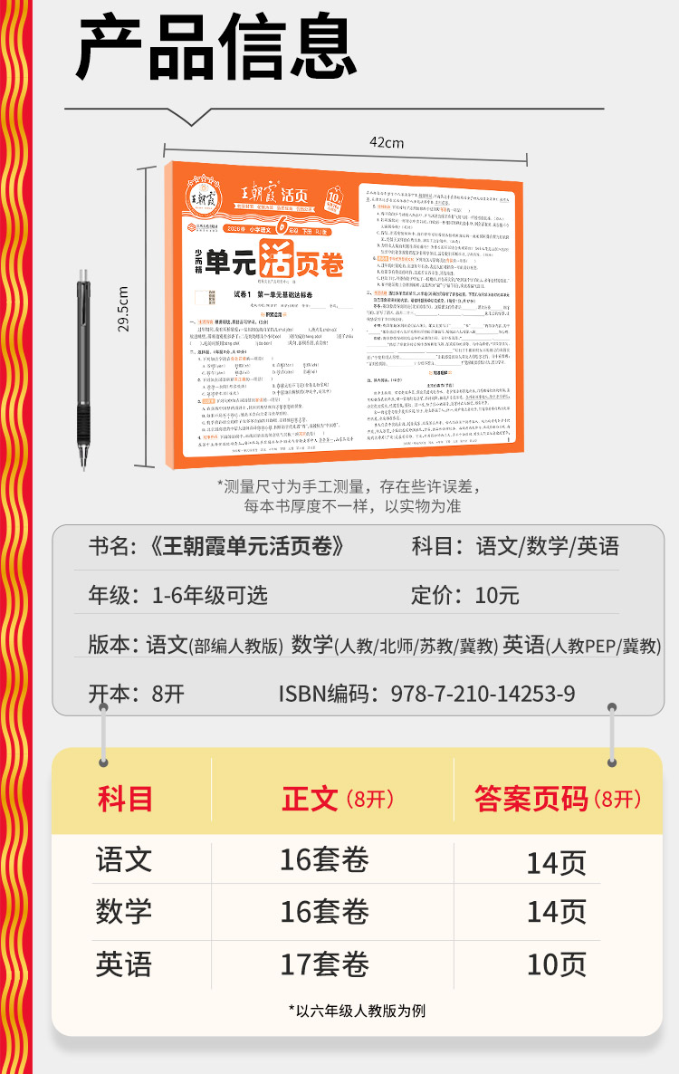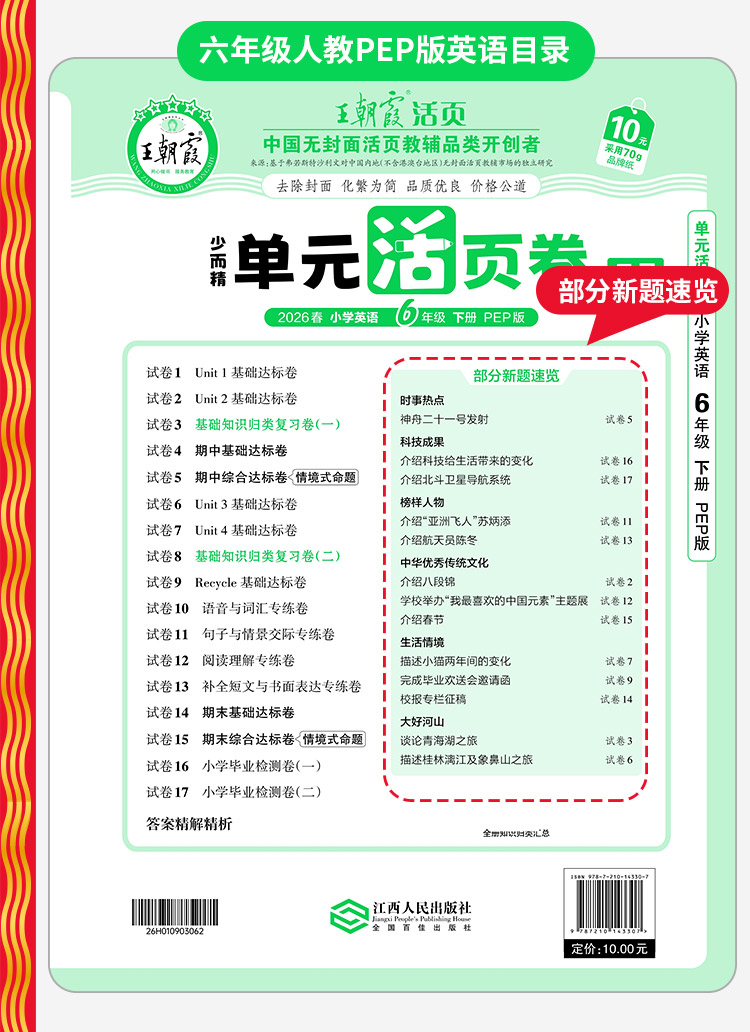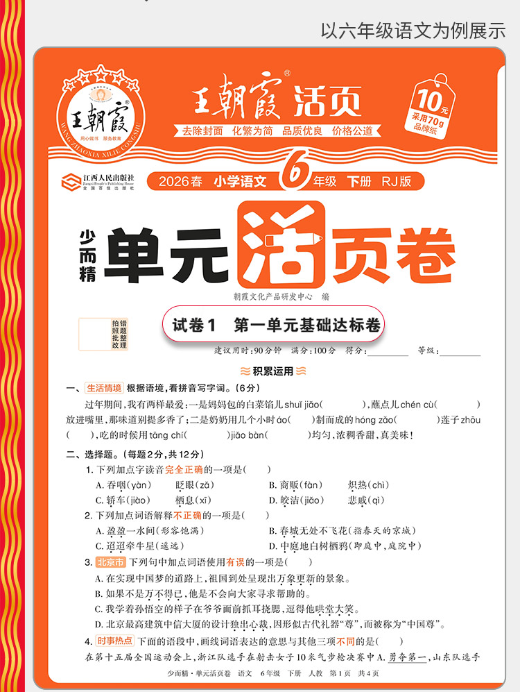 2026春(下册)1-6年级王朝霞活页卷▪单元卷语数英可选