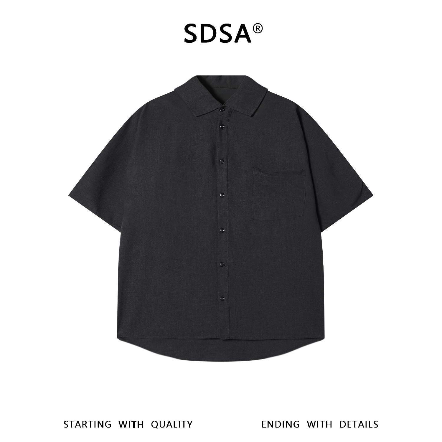 SDSA男装2026新款高贵轻奢极简风口袋拼接短袖衬衫纯色百搭上衣