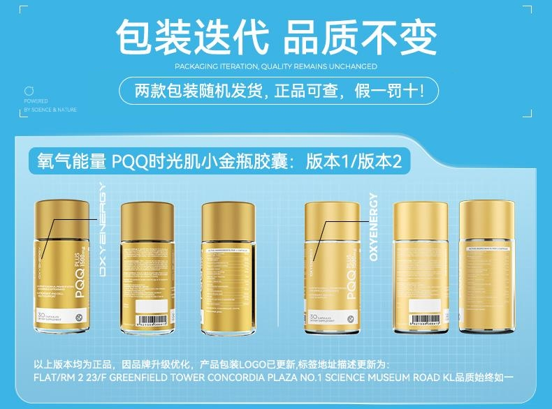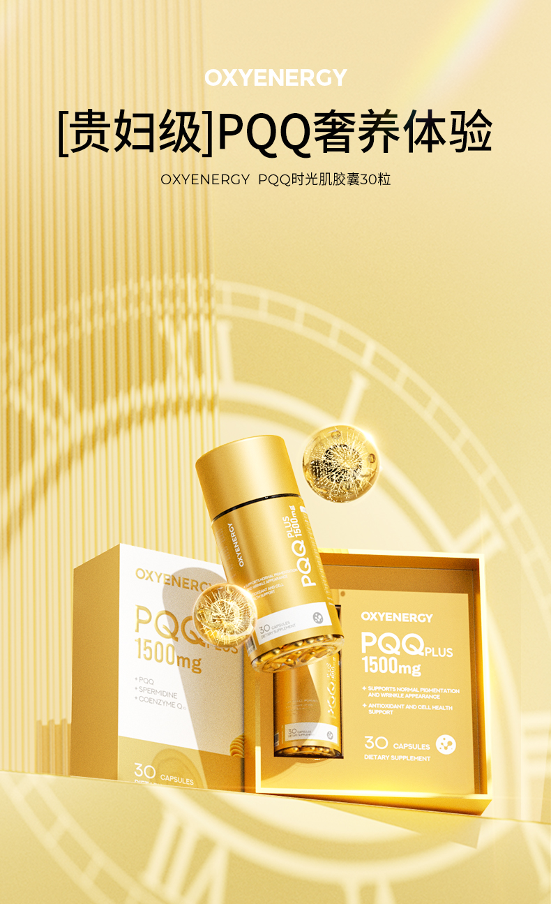 【贵妇级PQQ】OXYENERGY氧气能量PQQ小金瓶胶囊30粒/瓶端粒科技进口营养