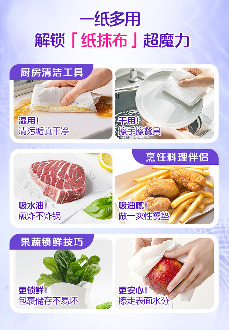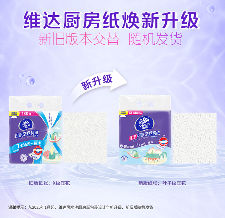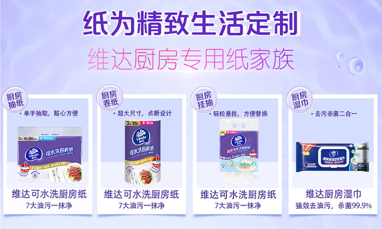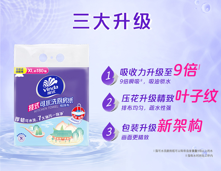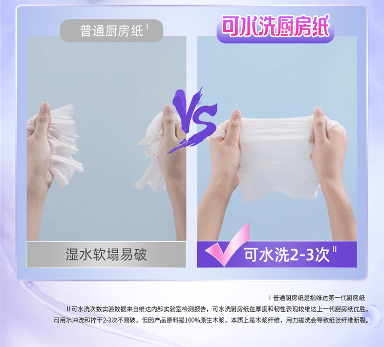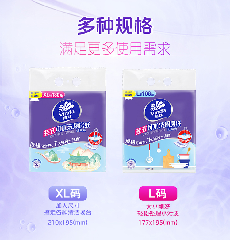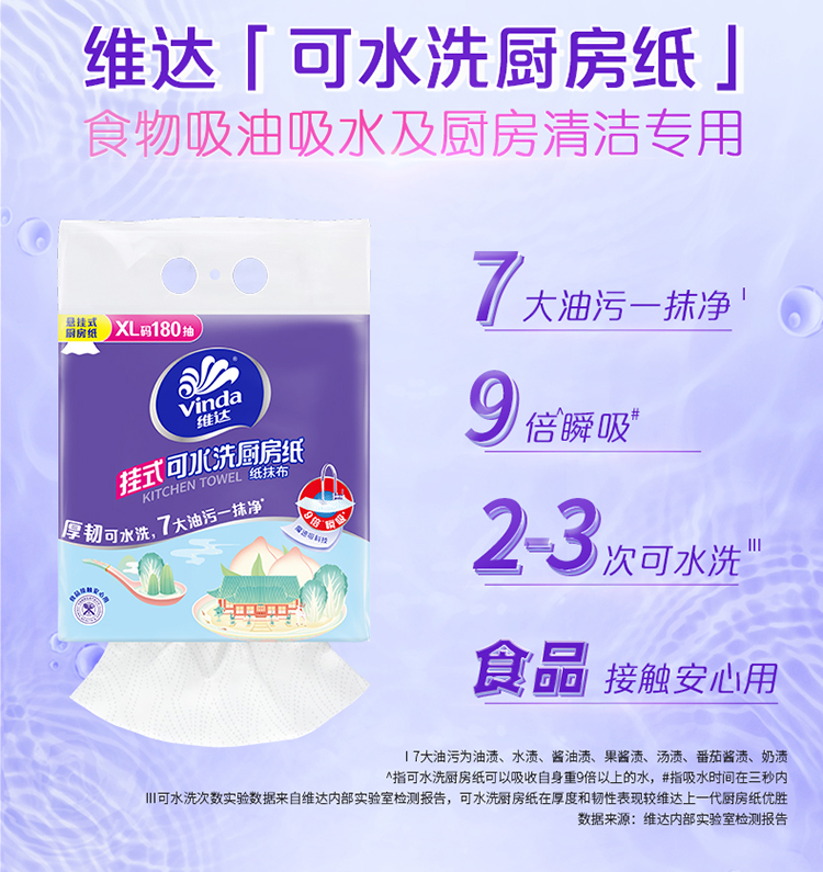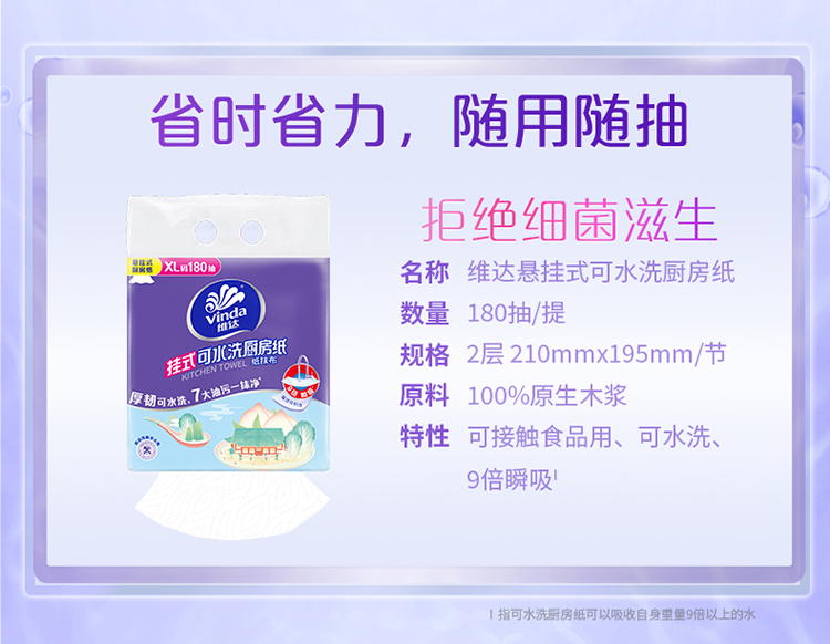 【官方包邮】维达可水洗厨房用纸XL码180抽/提 悬挂便携挂式