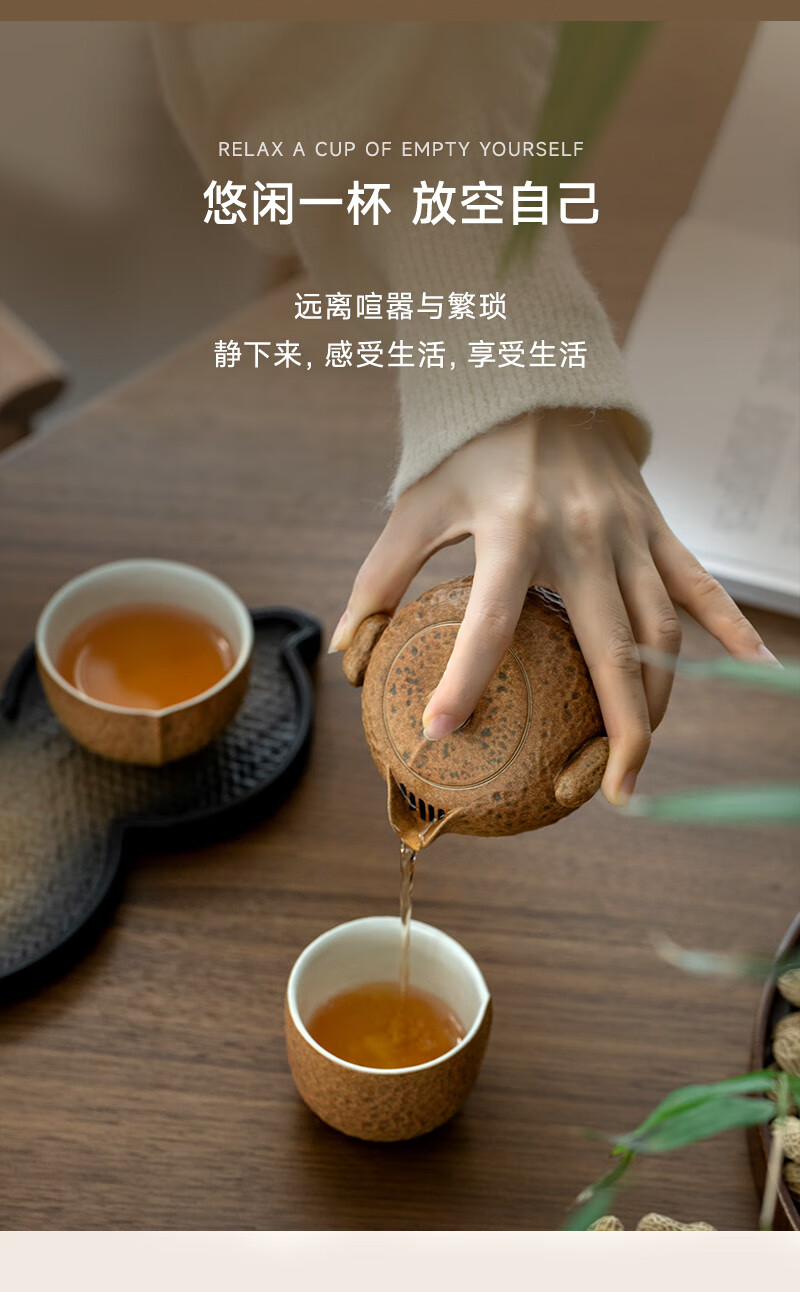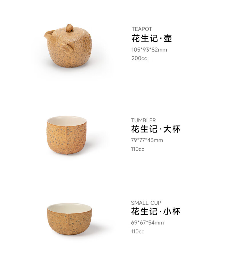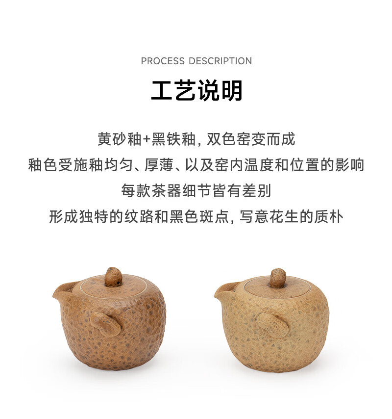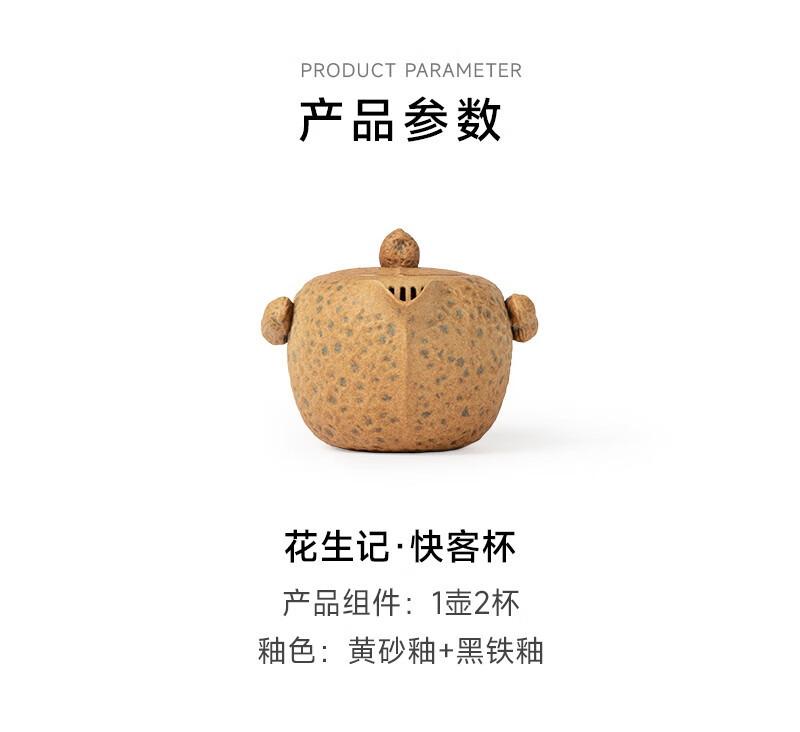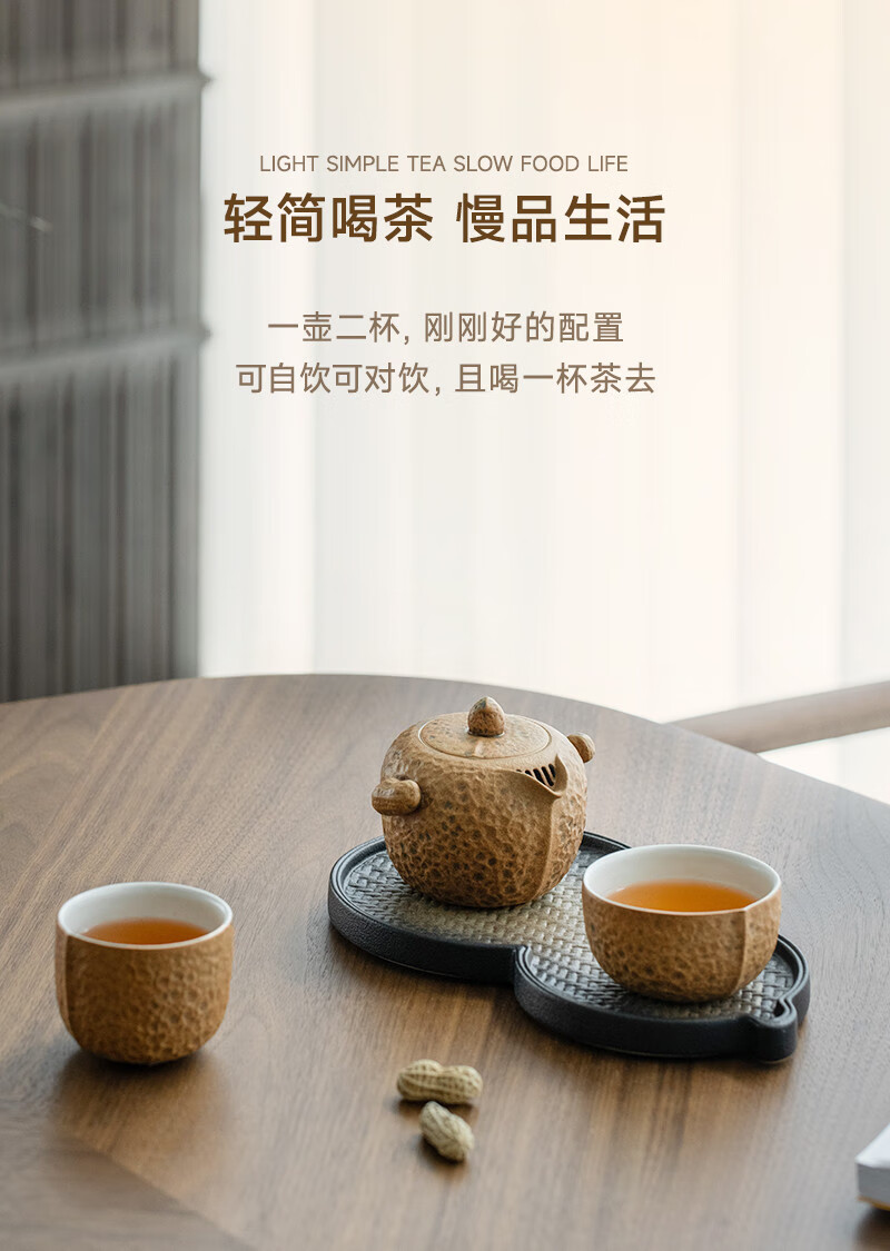 万仟堂(Edenus)旅行茶具 陶瓷便携户外茶具高档 创意泡茶茶杯 一壶两杯 花生记 黄砂釉+黑铁釉