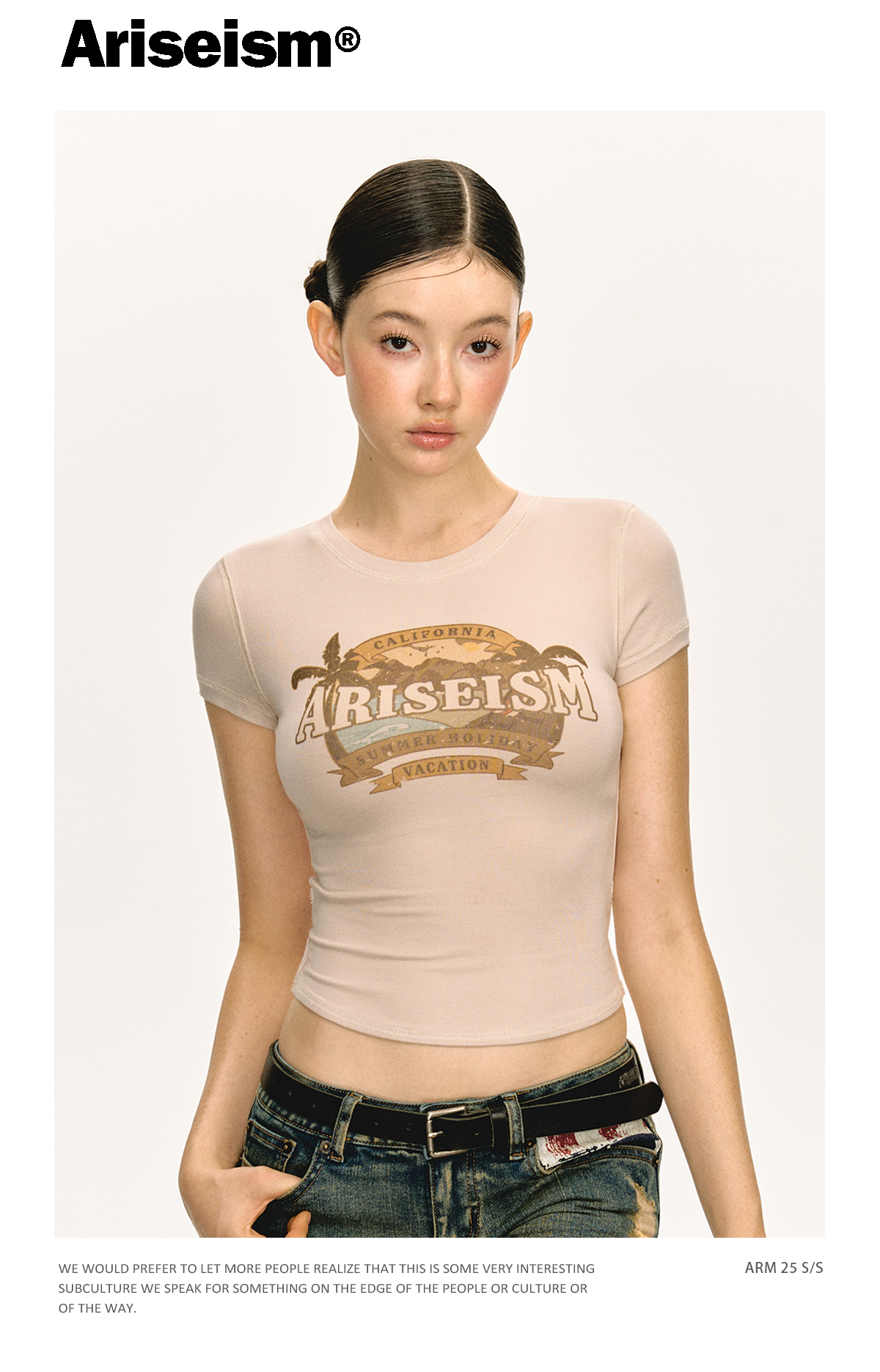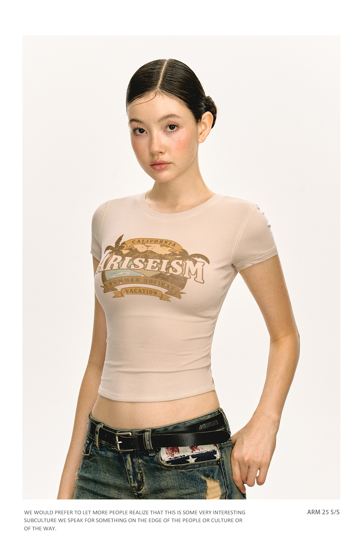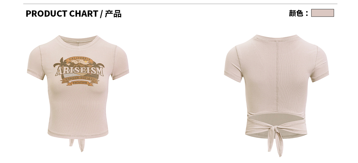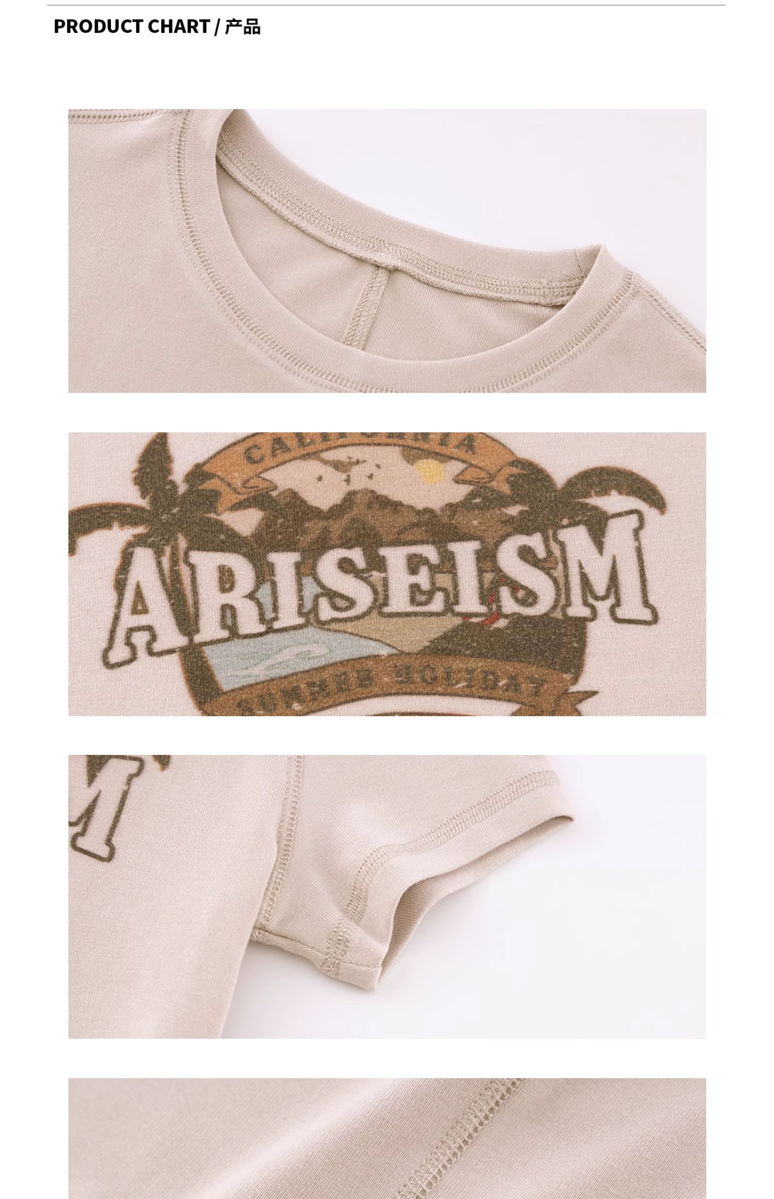 Ariseism美式复古圆领印花短袖T恤女2025夏季新款短款修身上衣