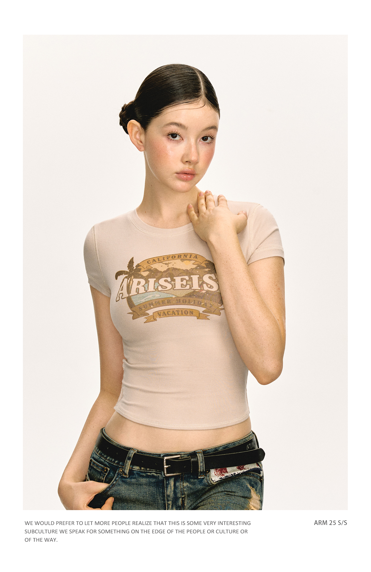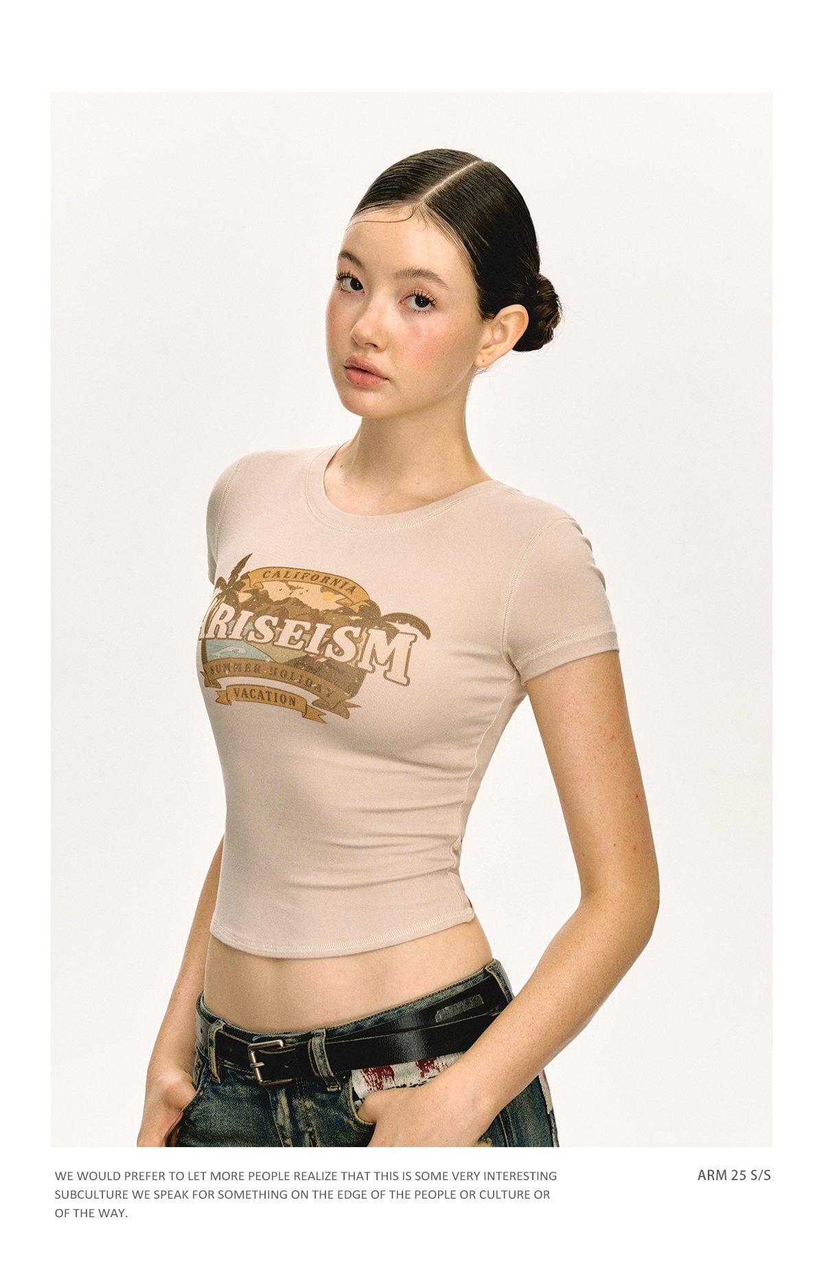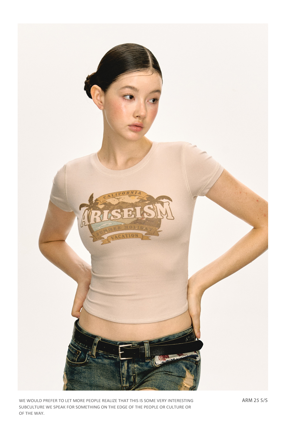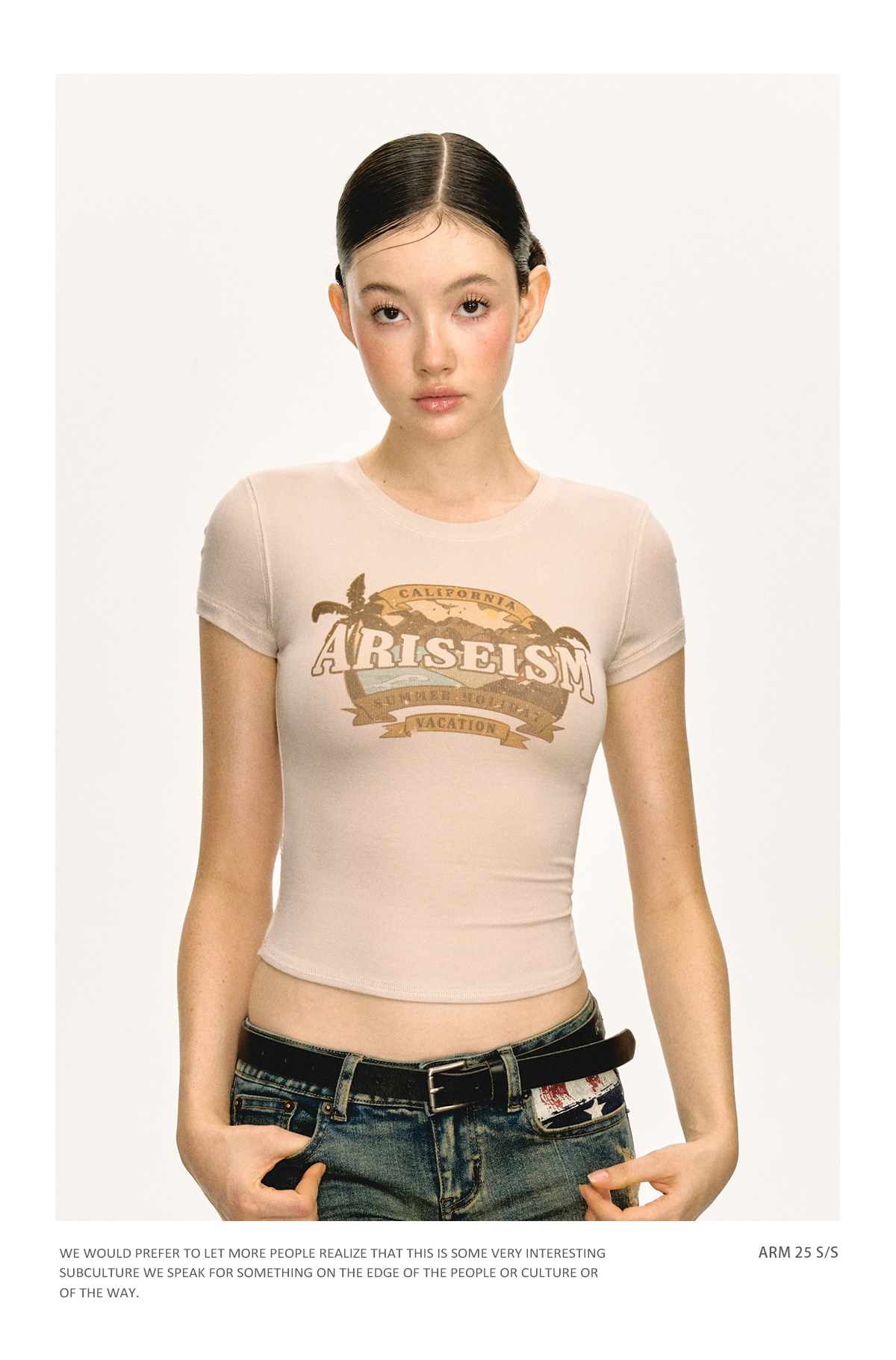 Ariseism美式复古圆领印花短袖T恤女2025夏季新款短款修身上衣