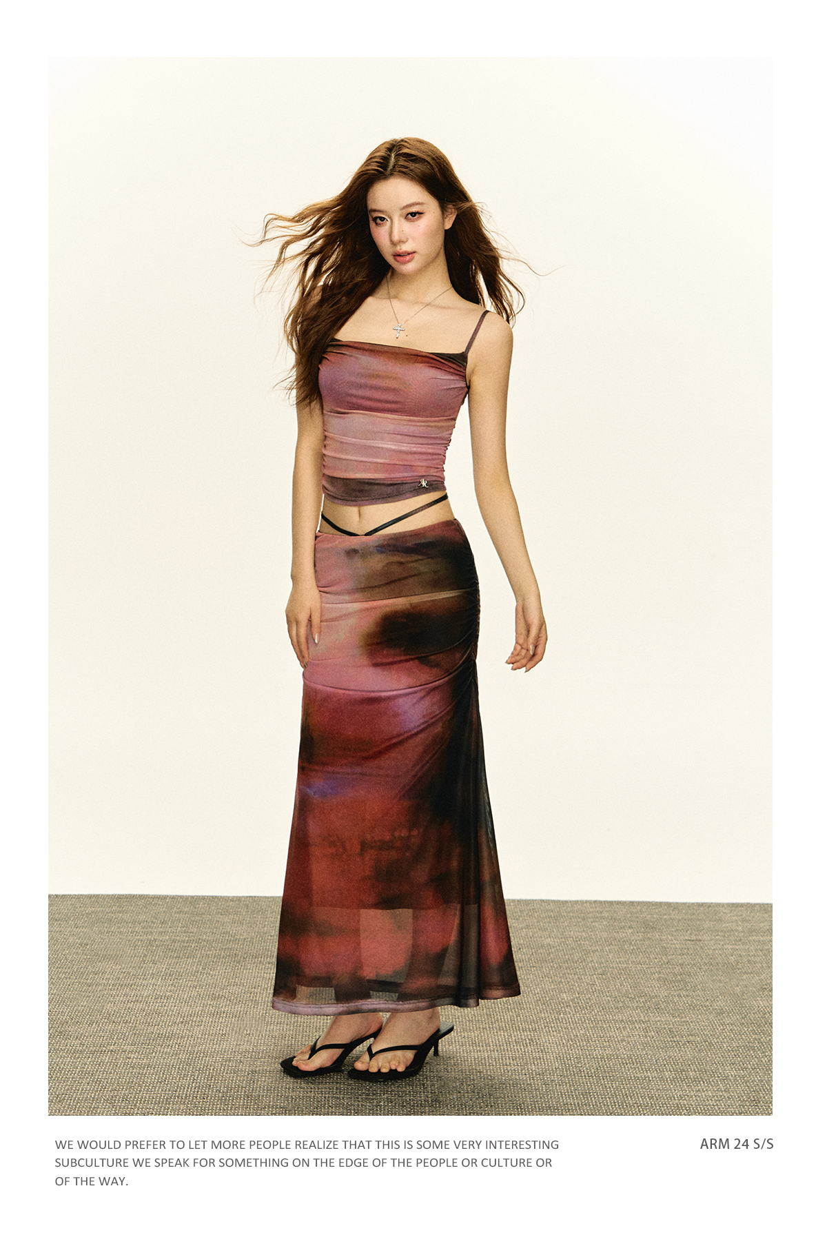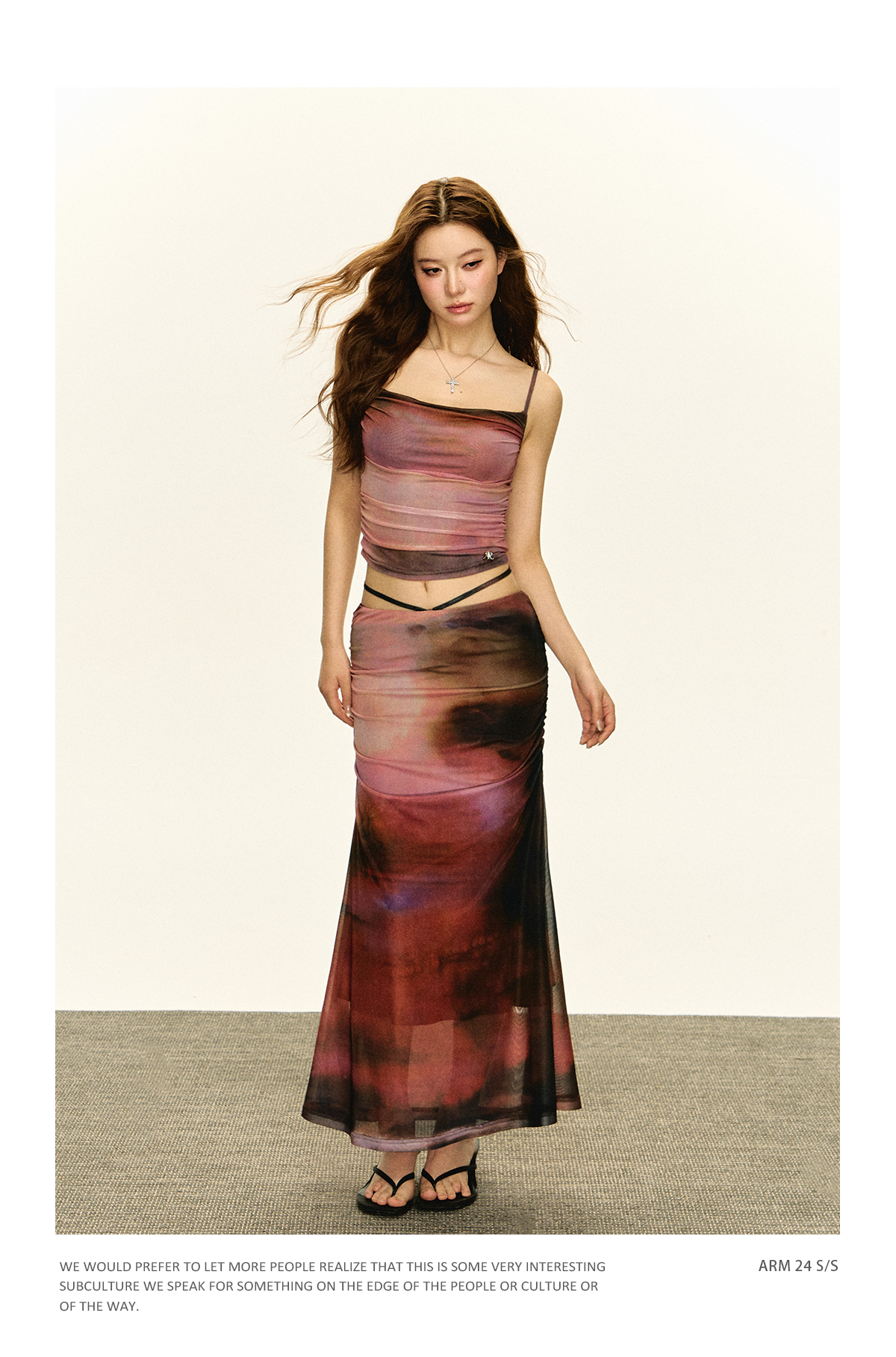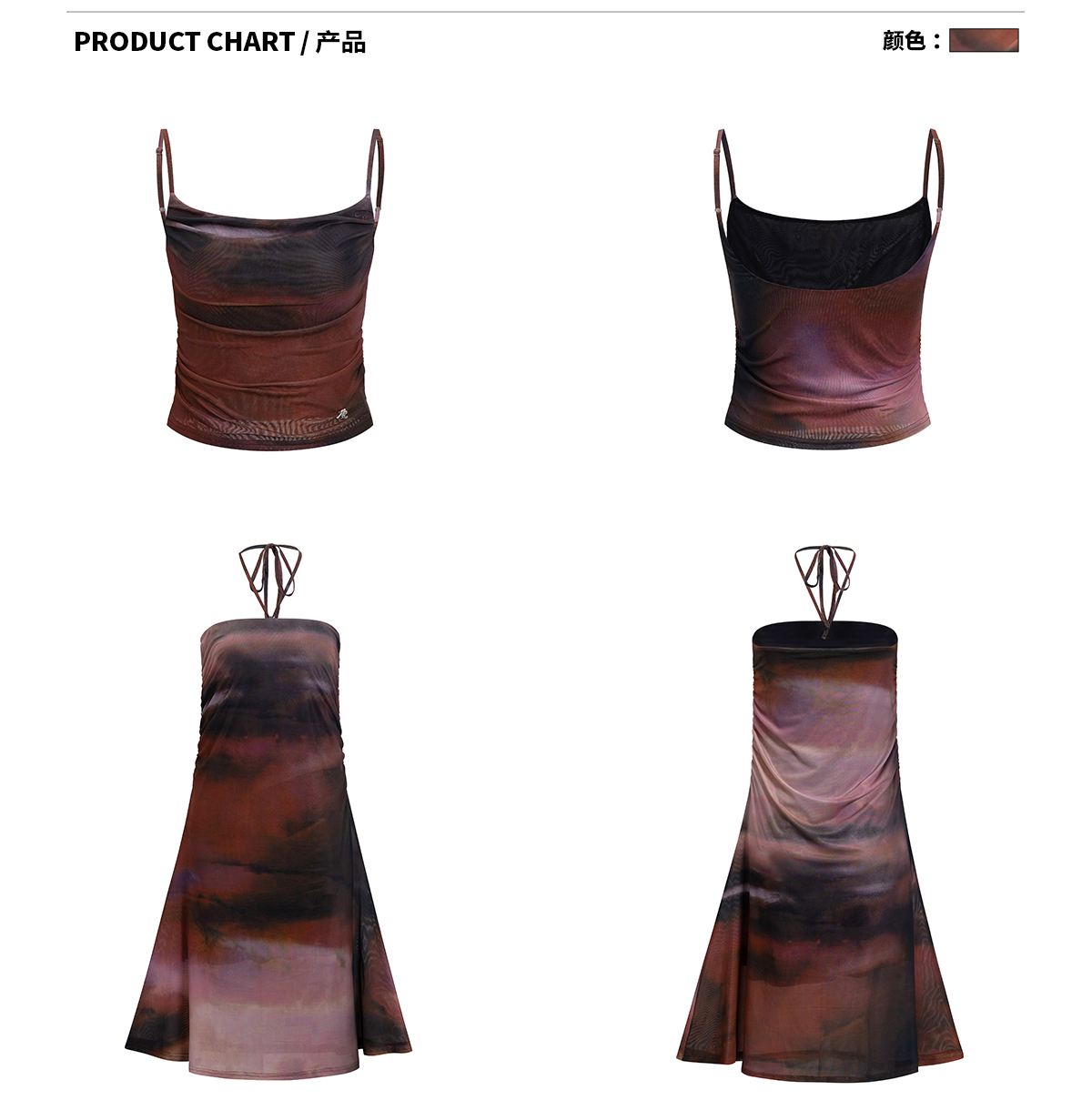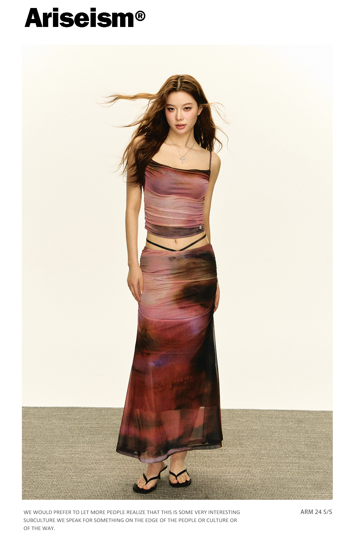 Ariseism 美式复古 水波纹吊带半身裙女两件套