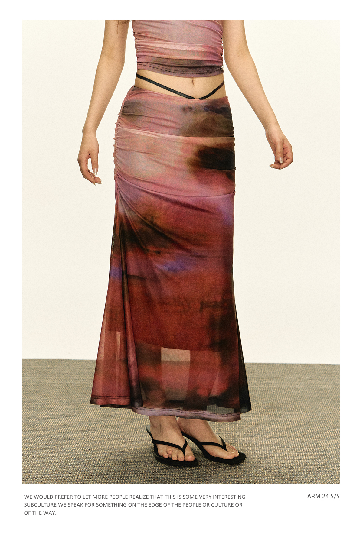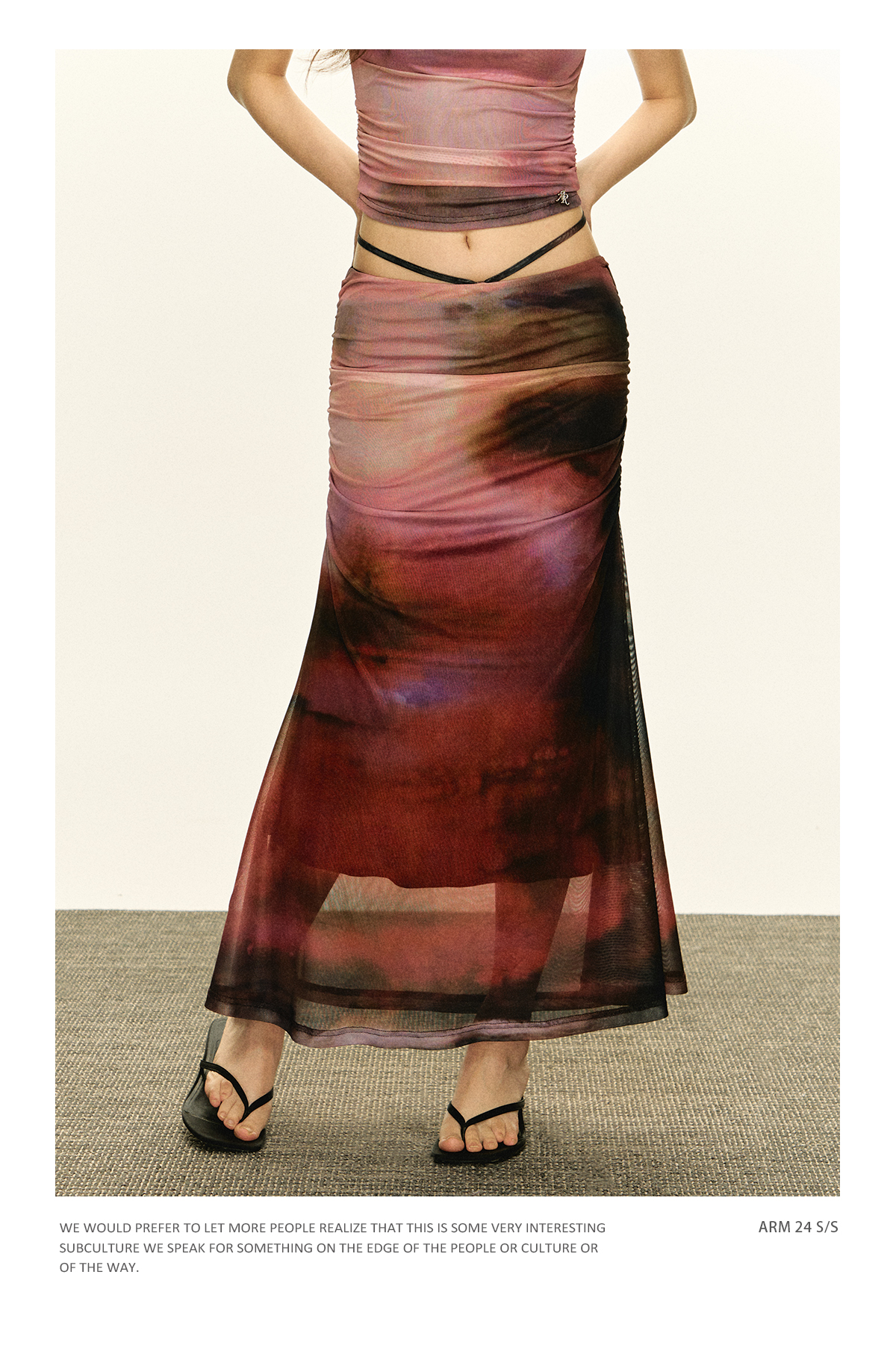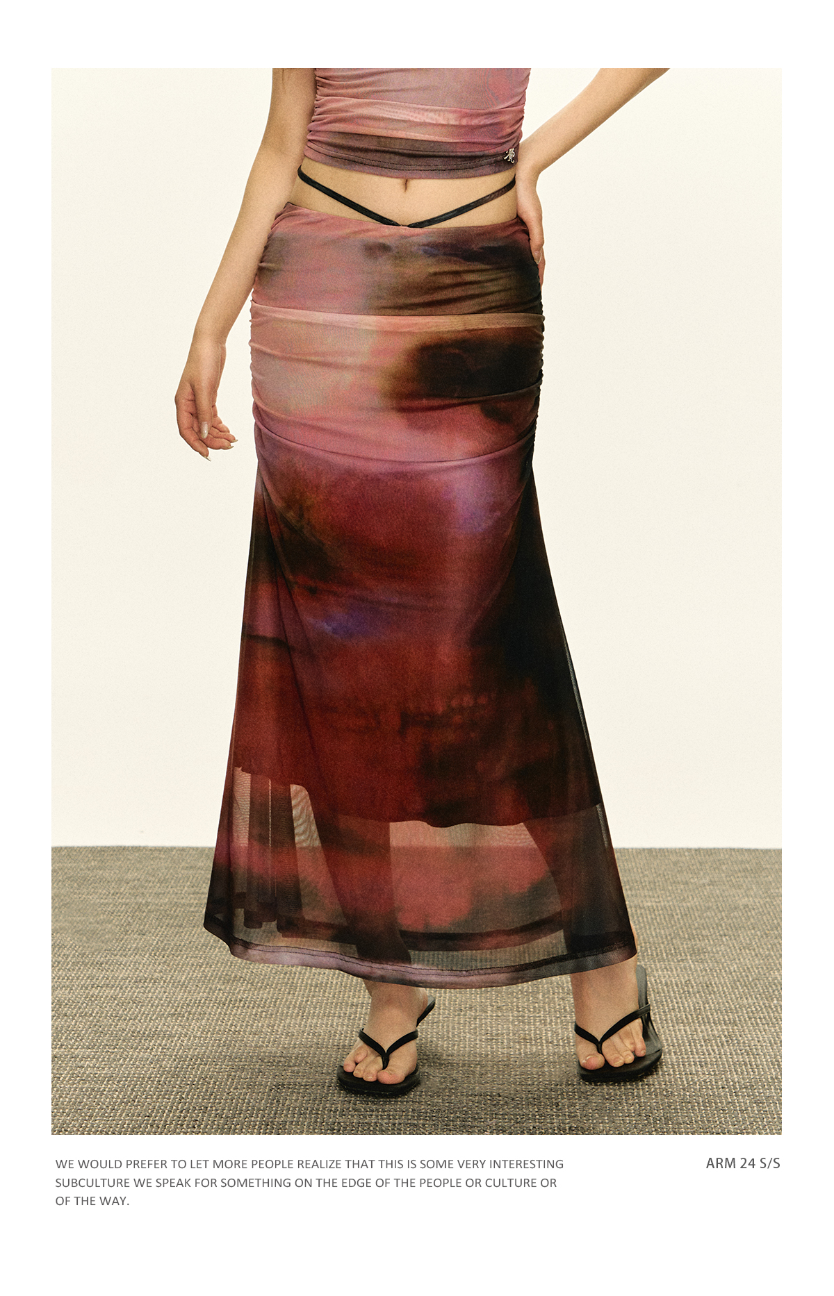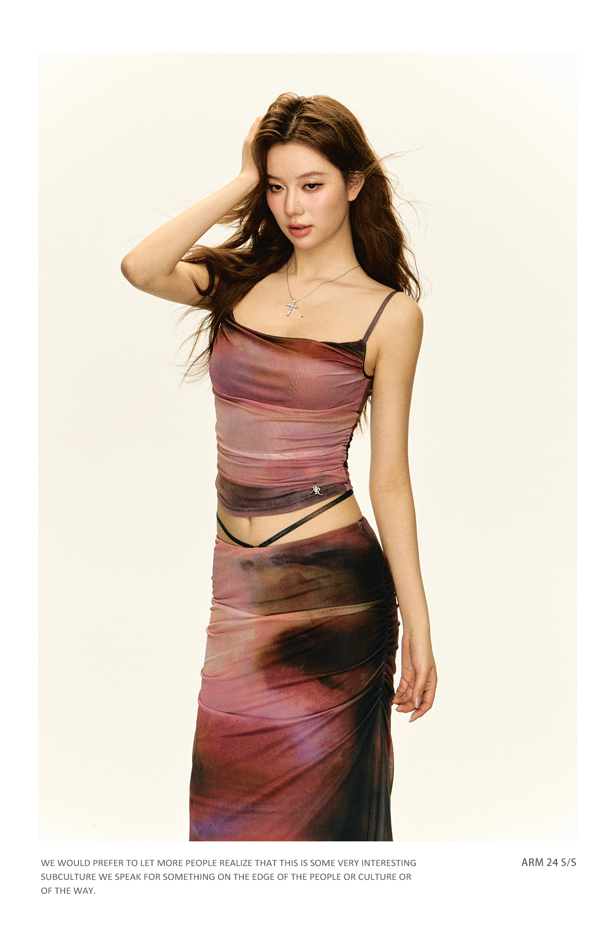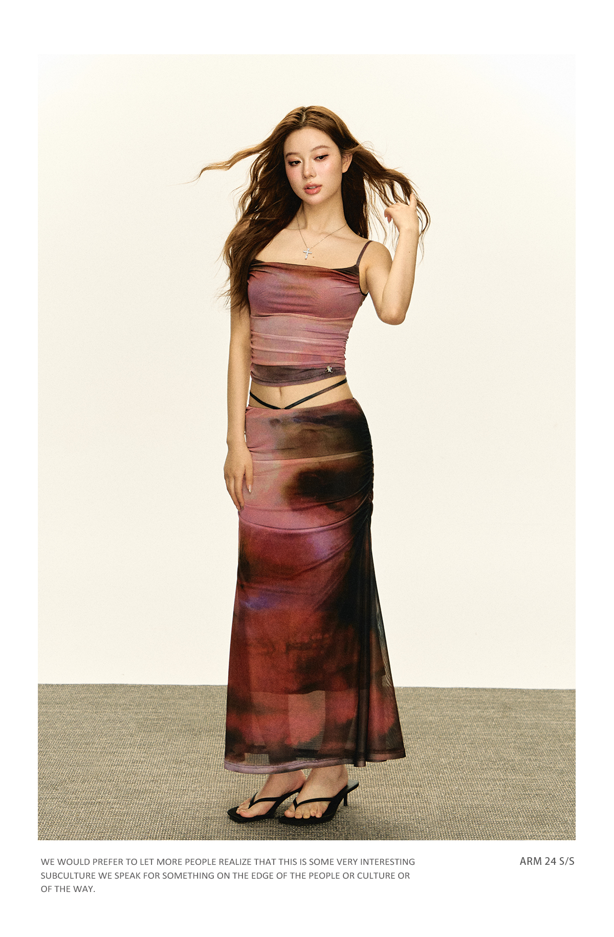 Ariseism 美式复古 水波纹吊带半身裙女两件套