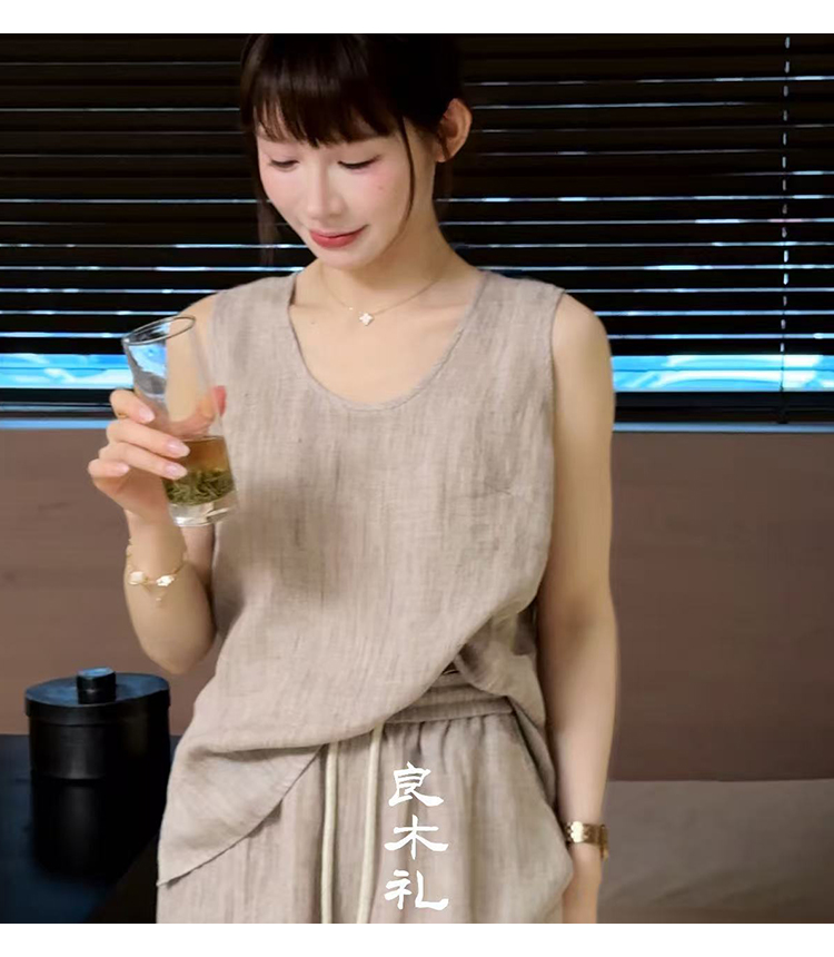 【不退不换】良木礼亚麻无袖套装(043756-783)