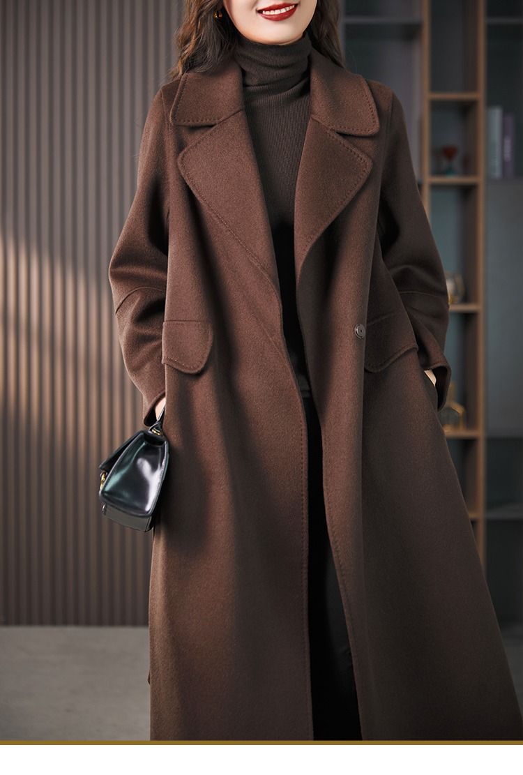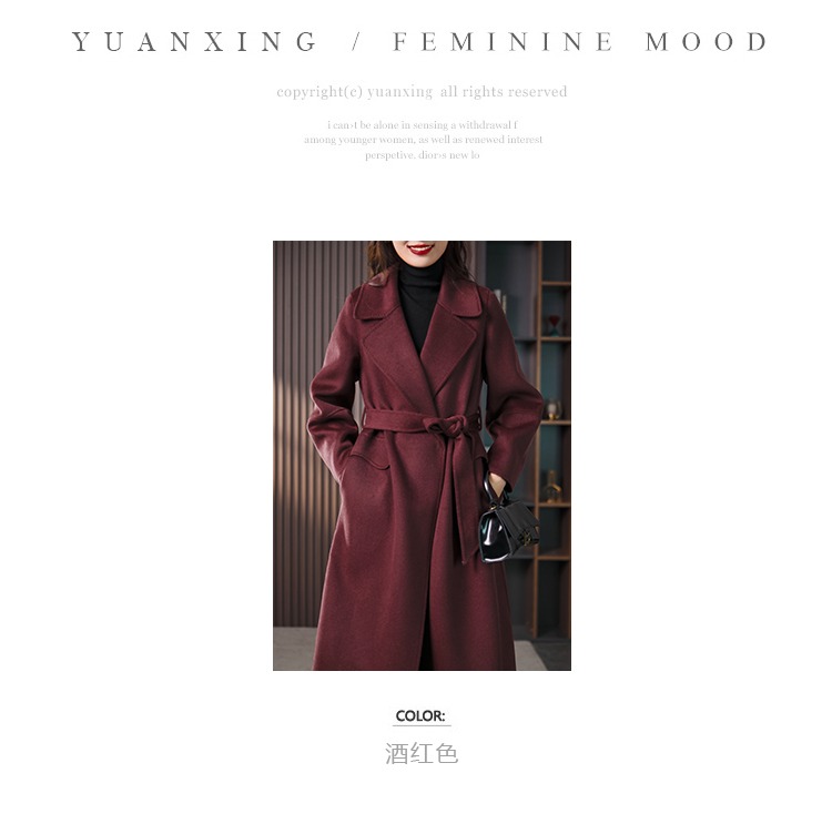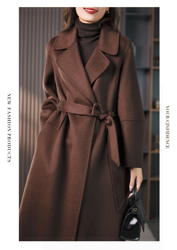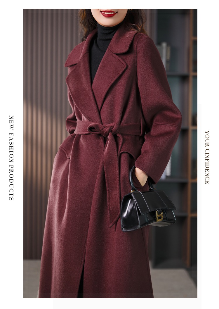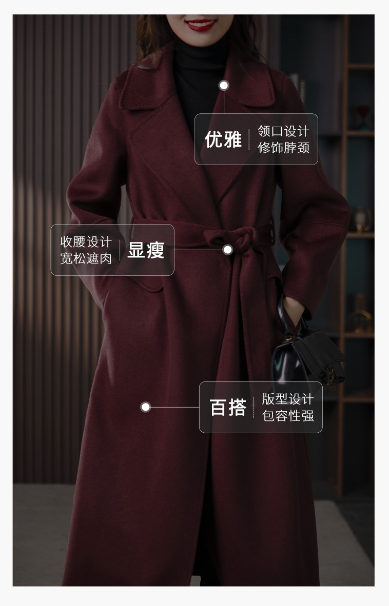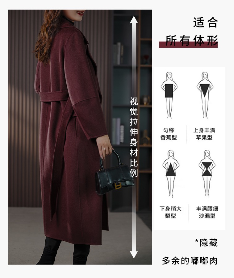 原形高端蚕丝羊绒双面呢大衣女长款过膝2023冬季新款羊毛毛呢外套