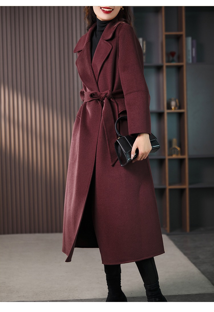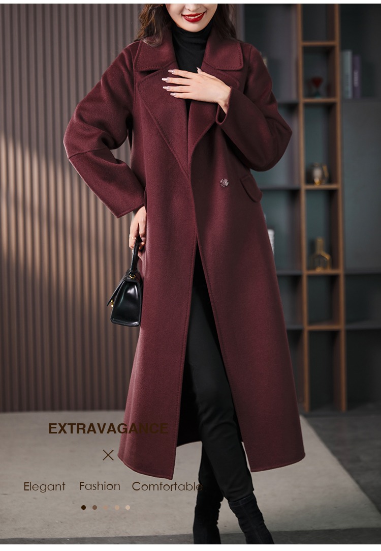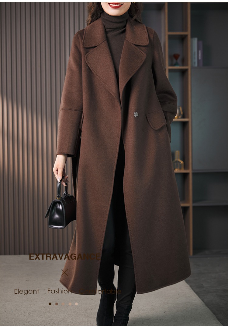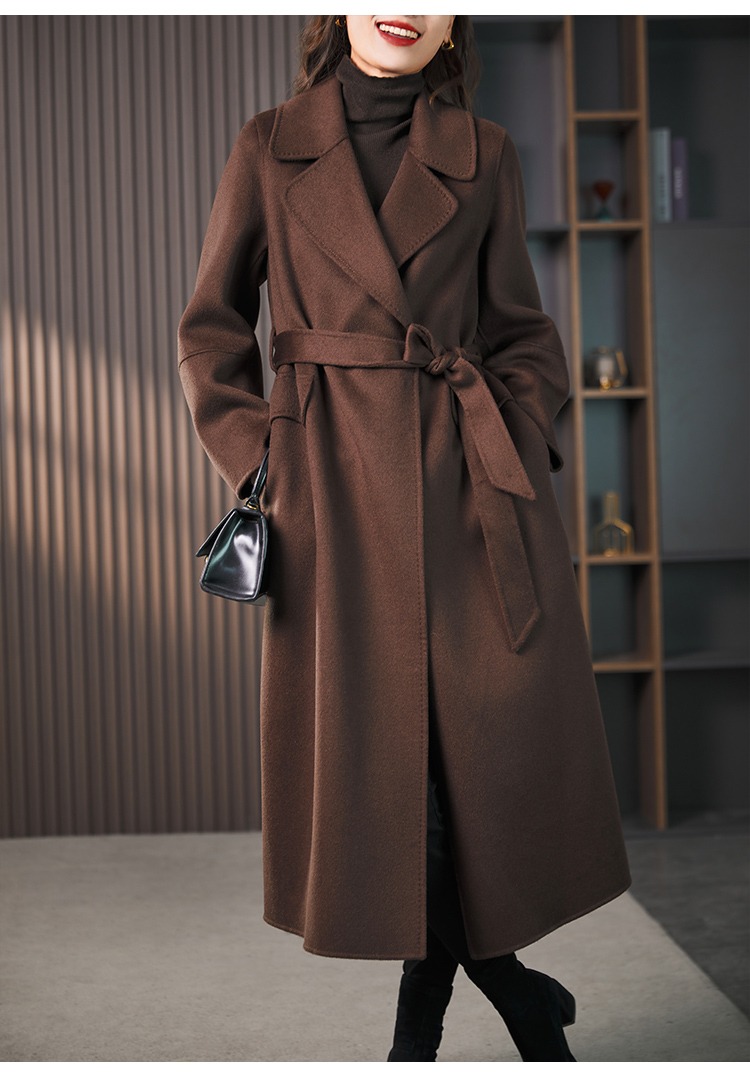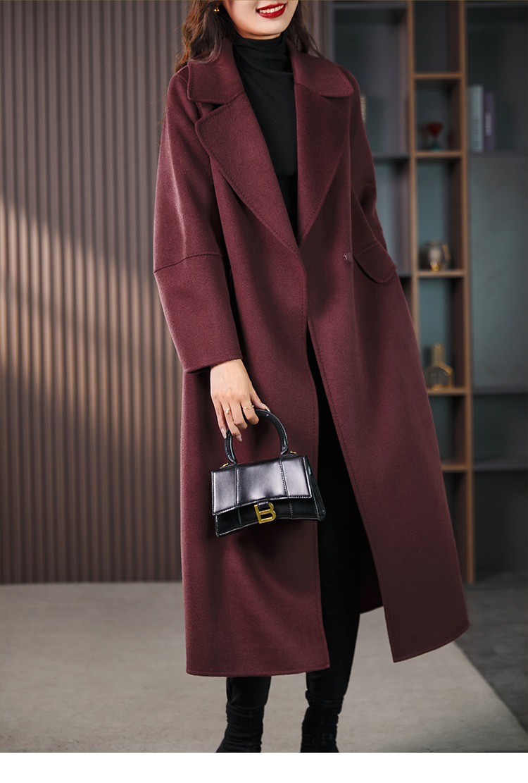原形高端蚕丝羊绒双面呢大衣女长款过膝2023冬季新款羊毛毛呢外套