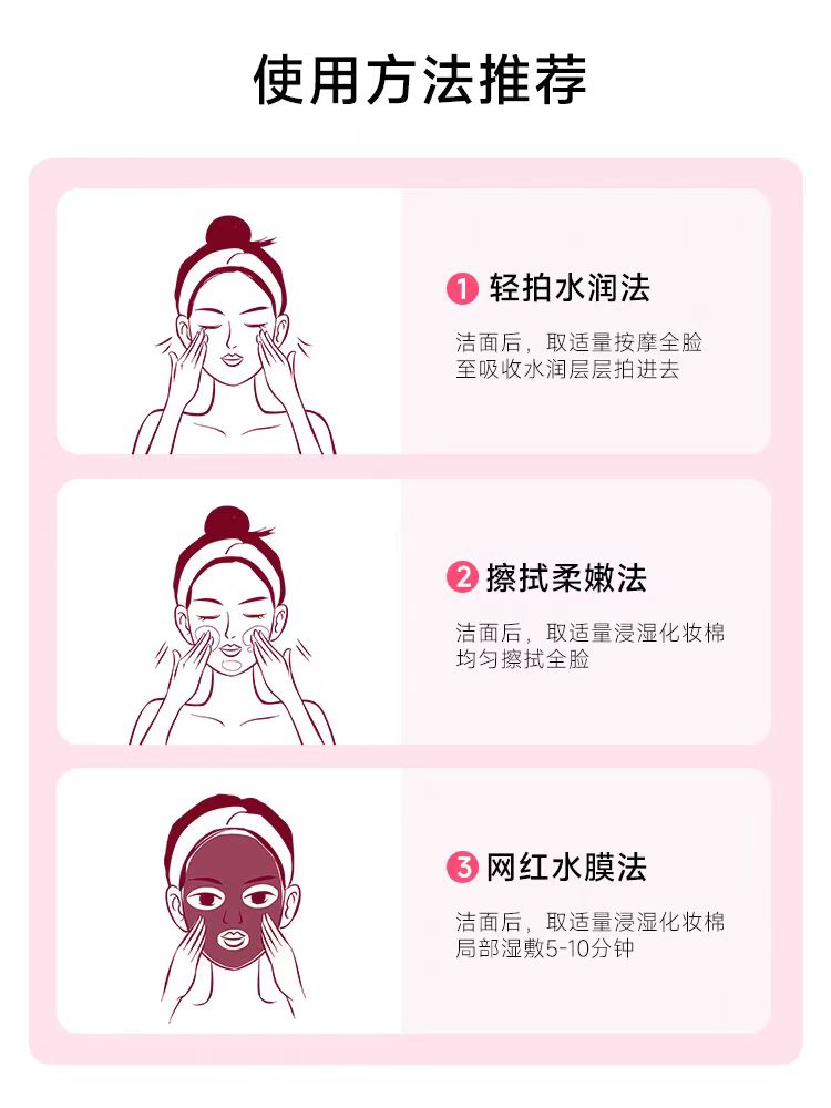 1.护肤品成分各有不同,敏感性肌肤的人士请先在耳后进行测试后再使用。