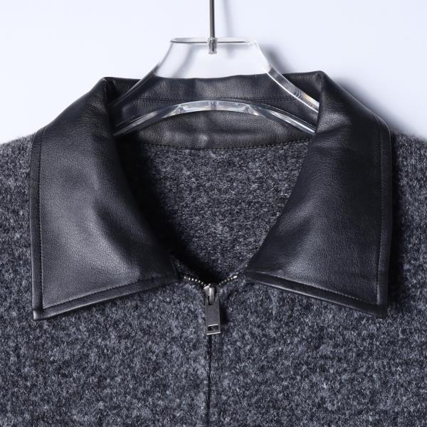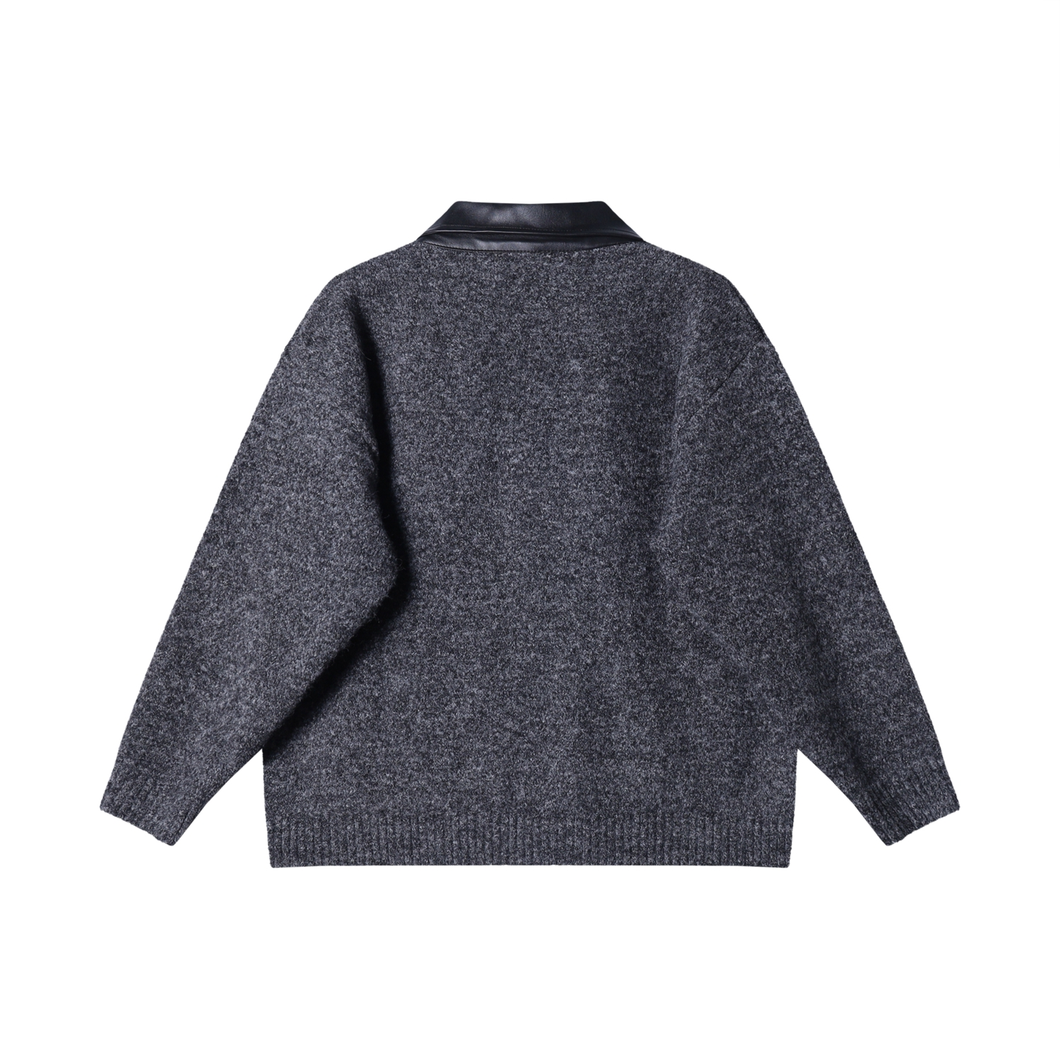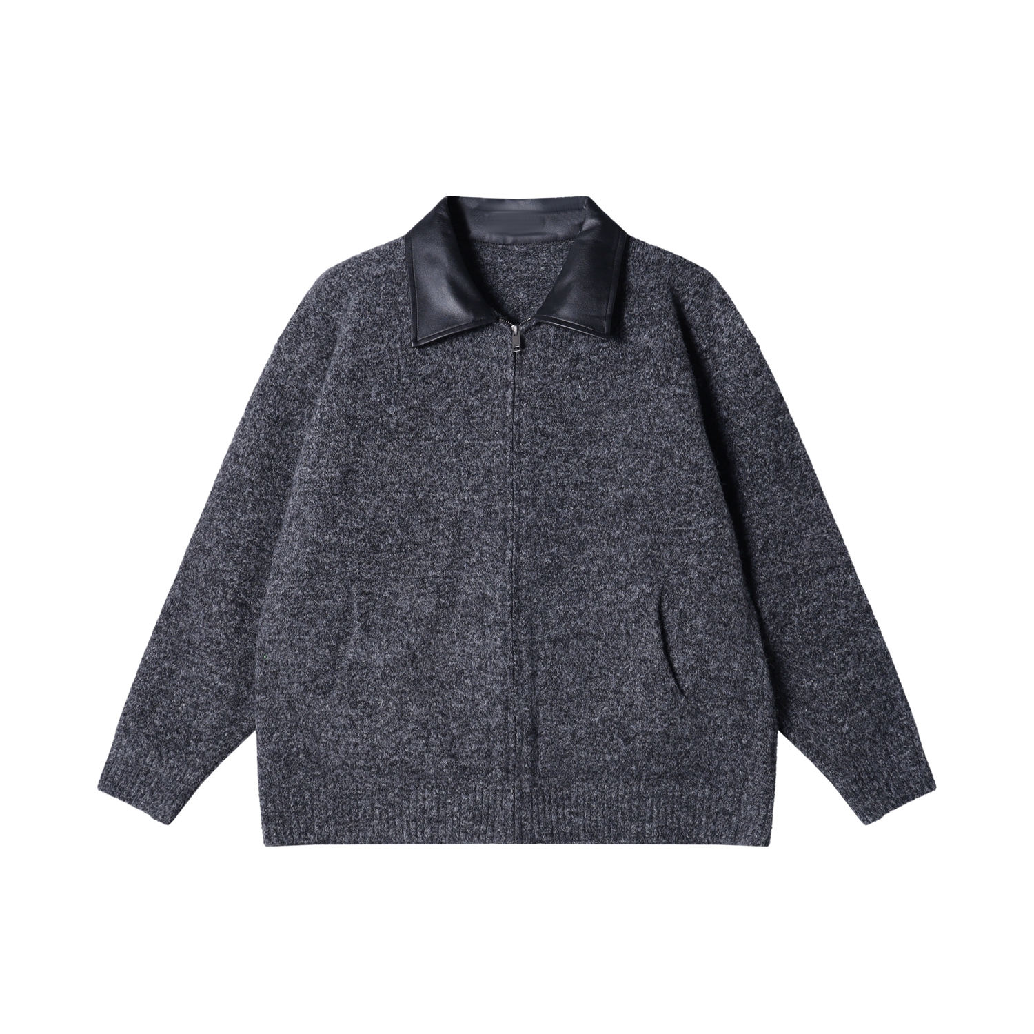 SDSA男士秋冬新款痞帅男装简约拼皮拉链翻领开衫毛衣百搭舒适外套