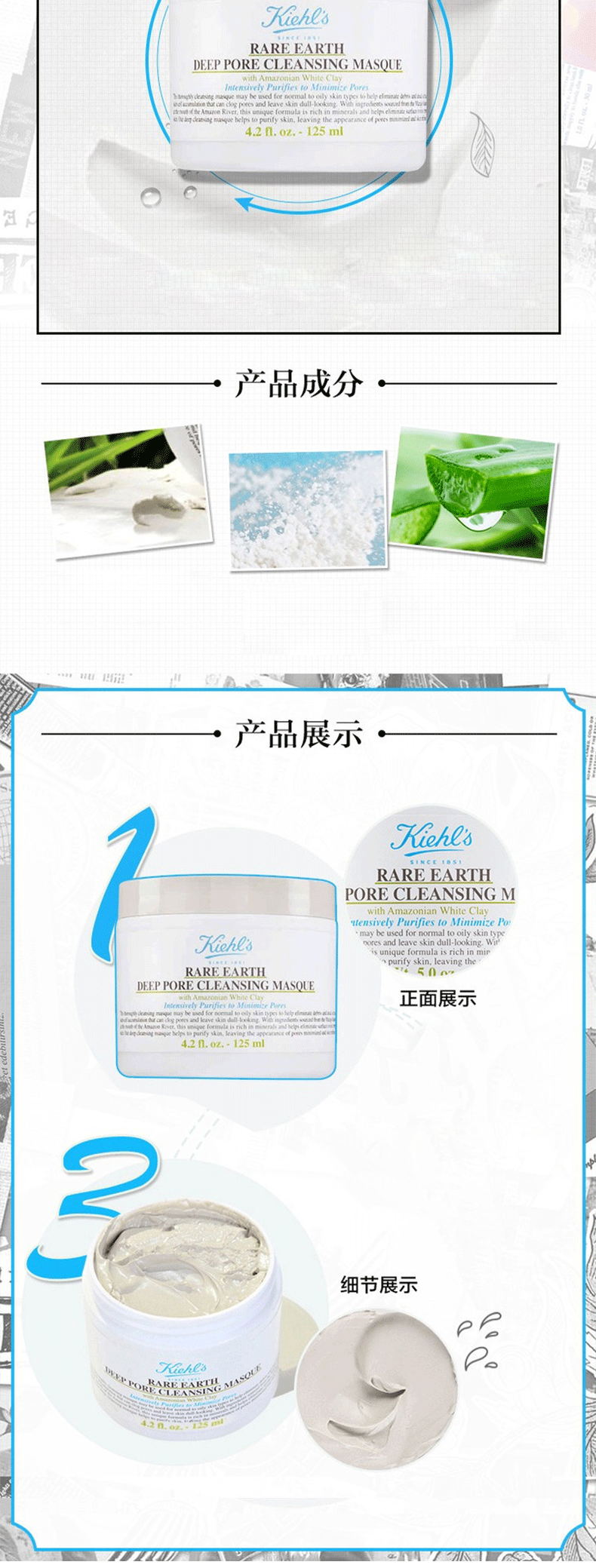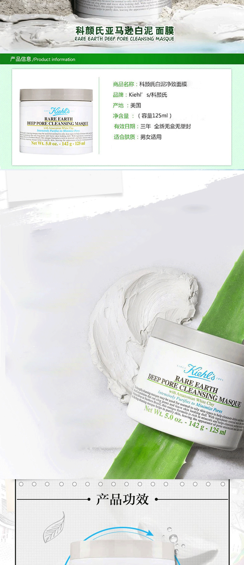 限时特价【保税直发A义乌】 Kiehl's科颜氏亚马逊白泥面膜125ml