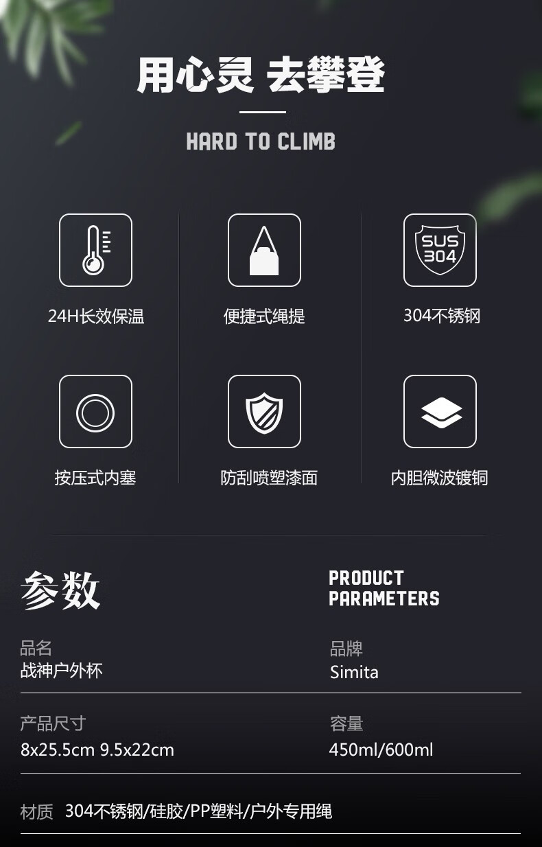 施密特(simita)户外保温杯304不锈钢保温杯真空便捷军迷运动水杯子带提绳 MBW6006-060A