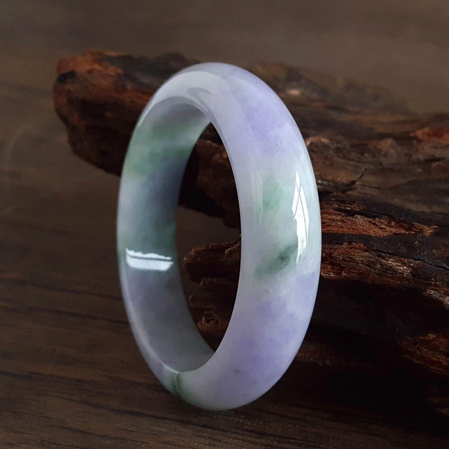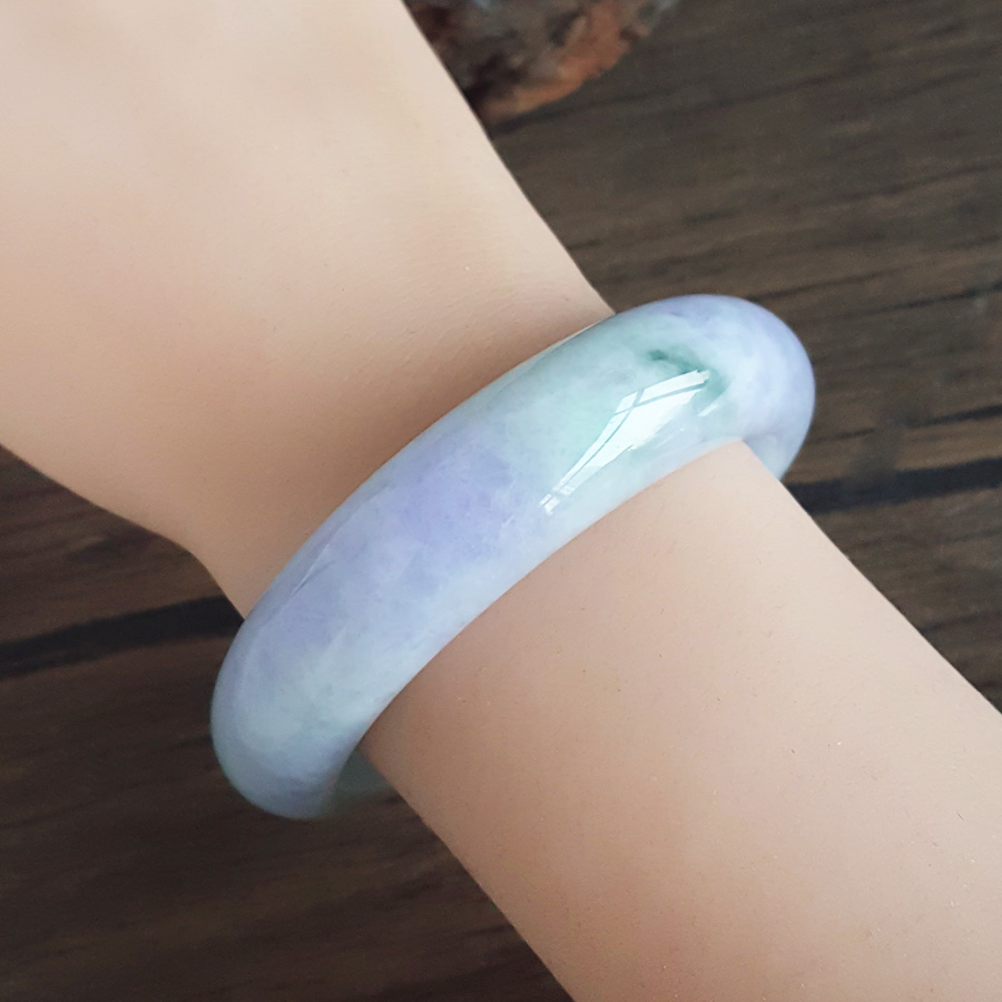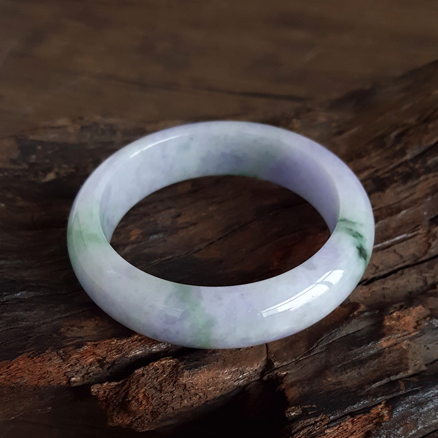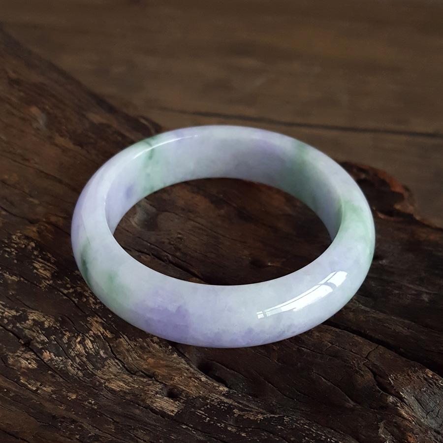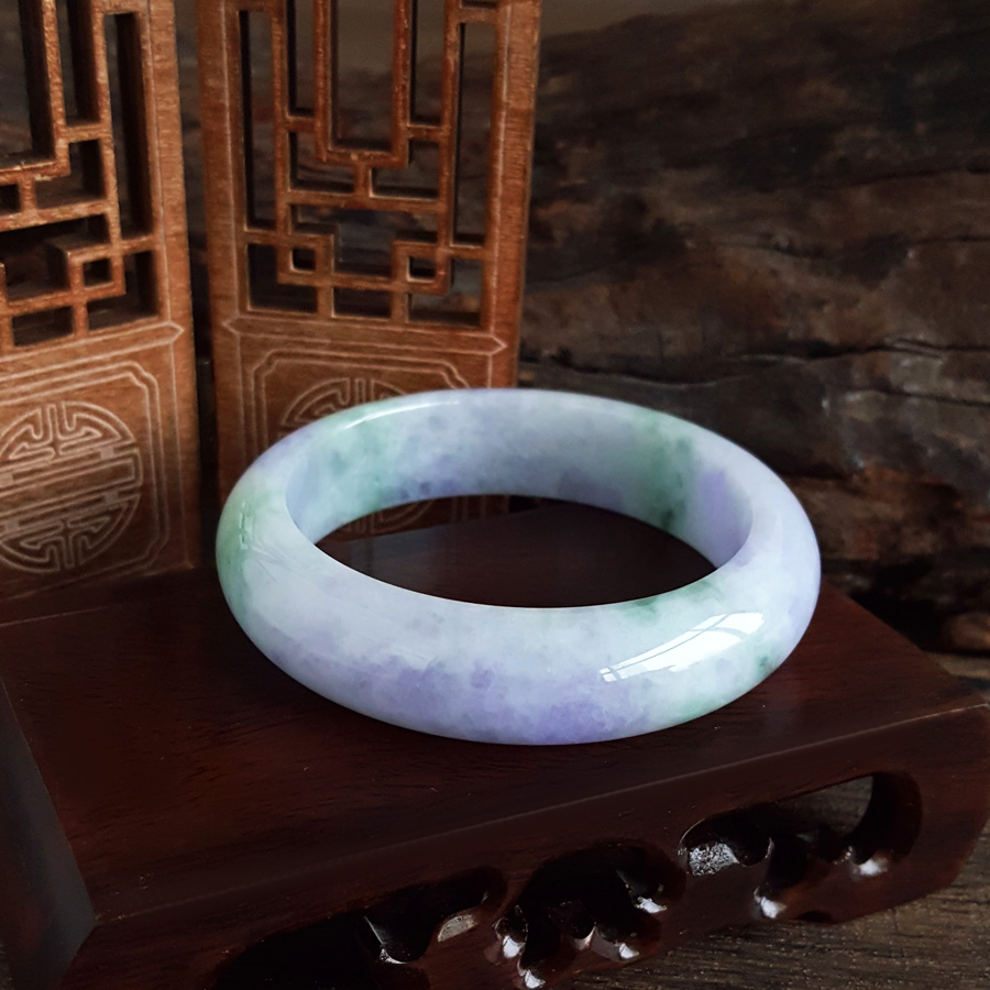 名称 | 天然精品正桩细腻细豆种春彩紫罗兰飘蓝花55.5号翡翠手镯 |