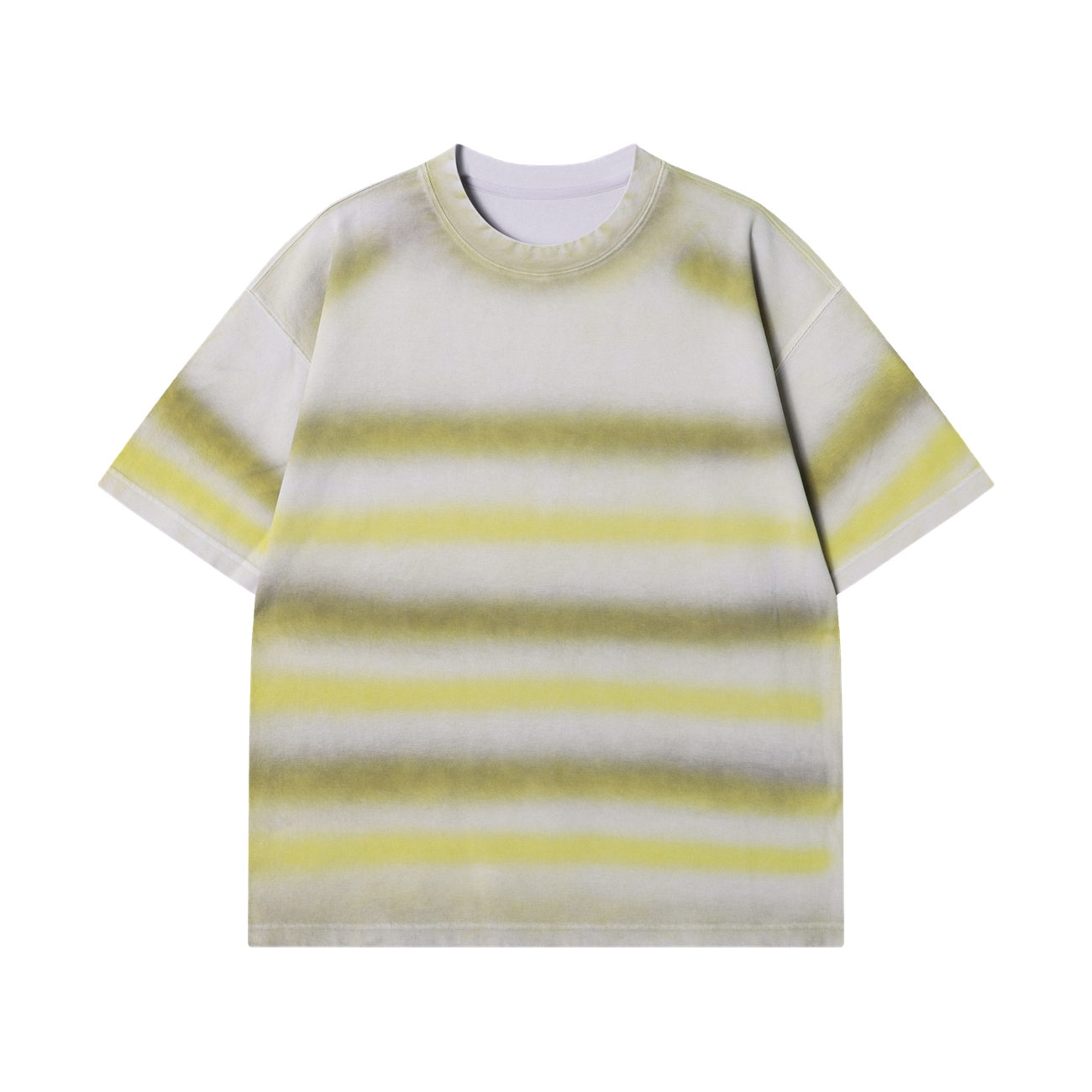67378夏季高级感新款美式撞色晕染横纹圆领短袖T恤休闲百搭宽松上衣
