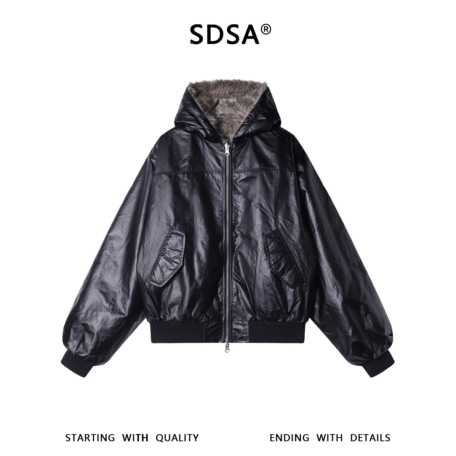 SDSA男士秋冬新款痞帅男装美式复古双面可穿连帽夹克百搭时尚外套