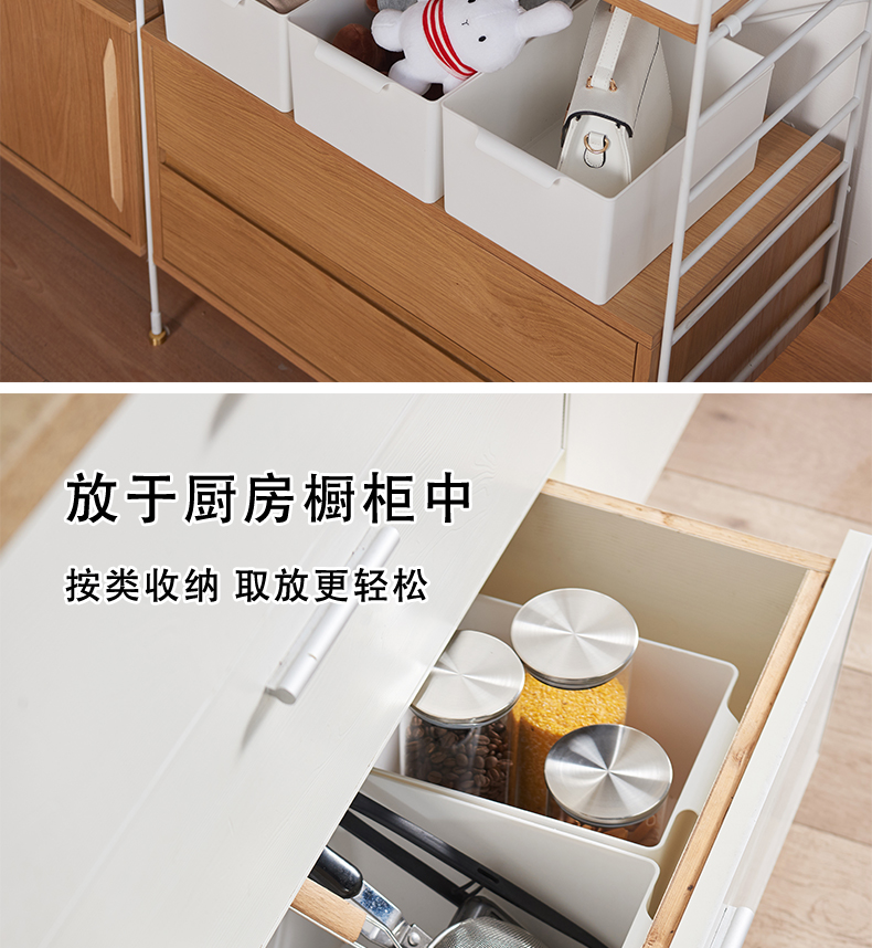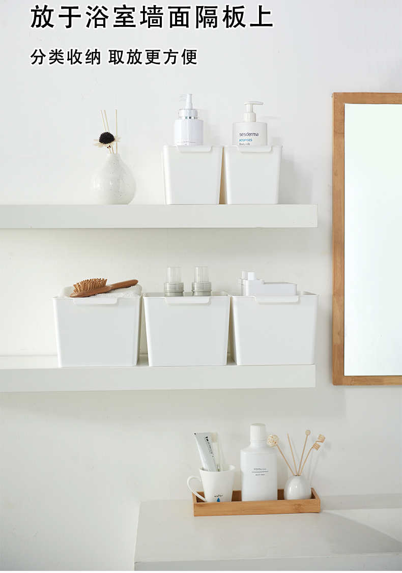 【白色3种规格可选】娜家无盖弯柄收纳筐
