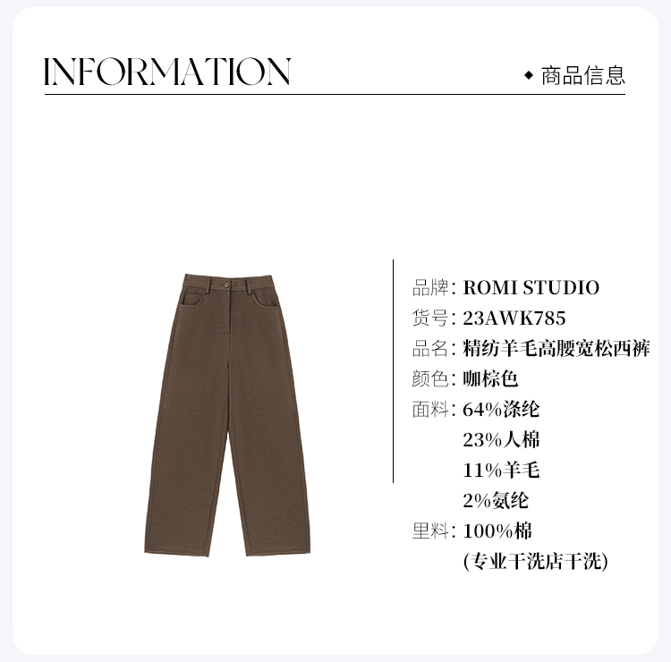 ROMI STUDIO“quiet luxury”精纺羊毛高腰宽松咖棕色西裤 23AWK785