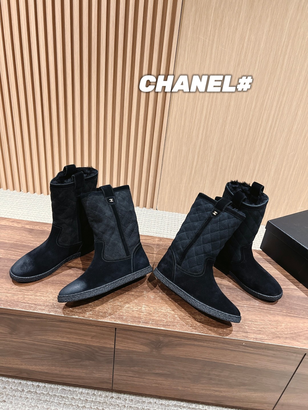𝐂𝐇𝐀𝐍𝐄𝐋#香奈儿秋冬新品皮毛一体雪地靴 今年冬天一定要入的雪地靴,高级感十足!复古又时髦的雪地靴 上脚美炸了 羊京材质 澳洲羊毛🐑内里 特别暖和原版开模TPU大底 Size:35-39(40定制不退换)