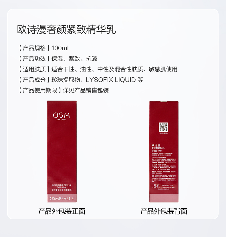 【到手200ml】欧诗漫珍珠奢颜紧致精华乳100ml 赠:珍珠奢颜紧致精华乳100ml