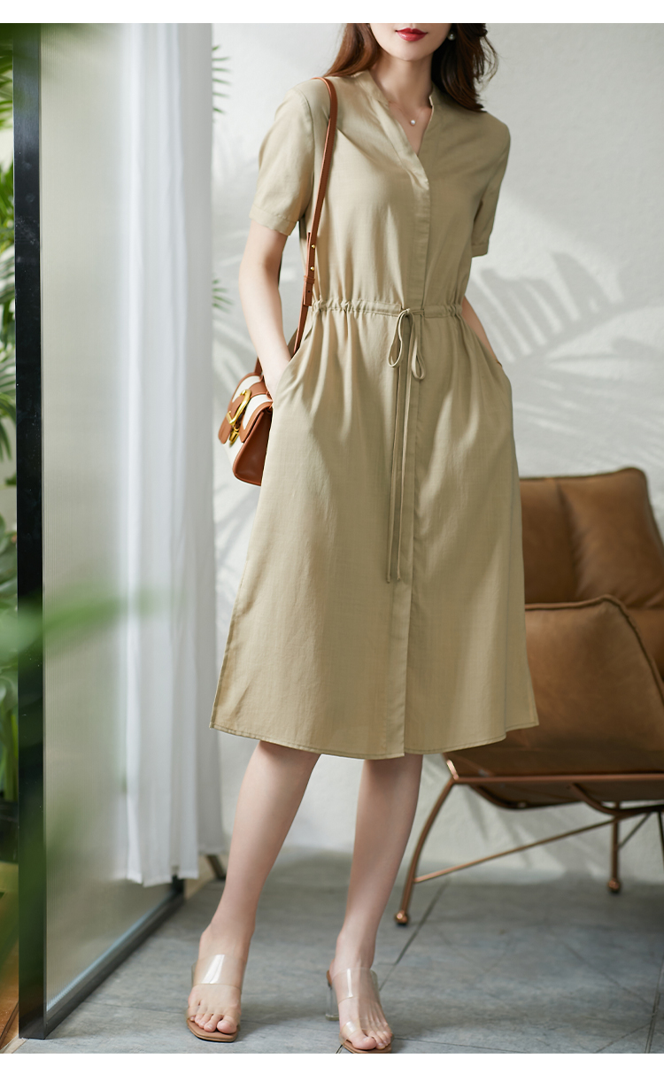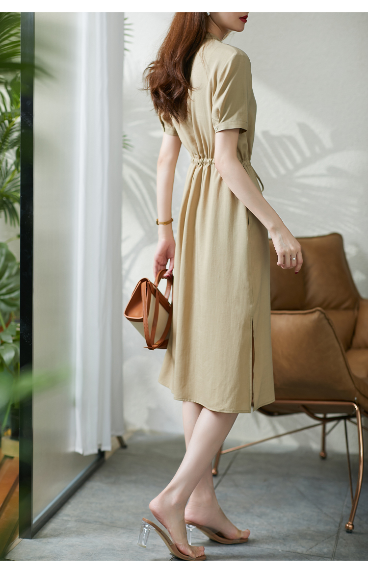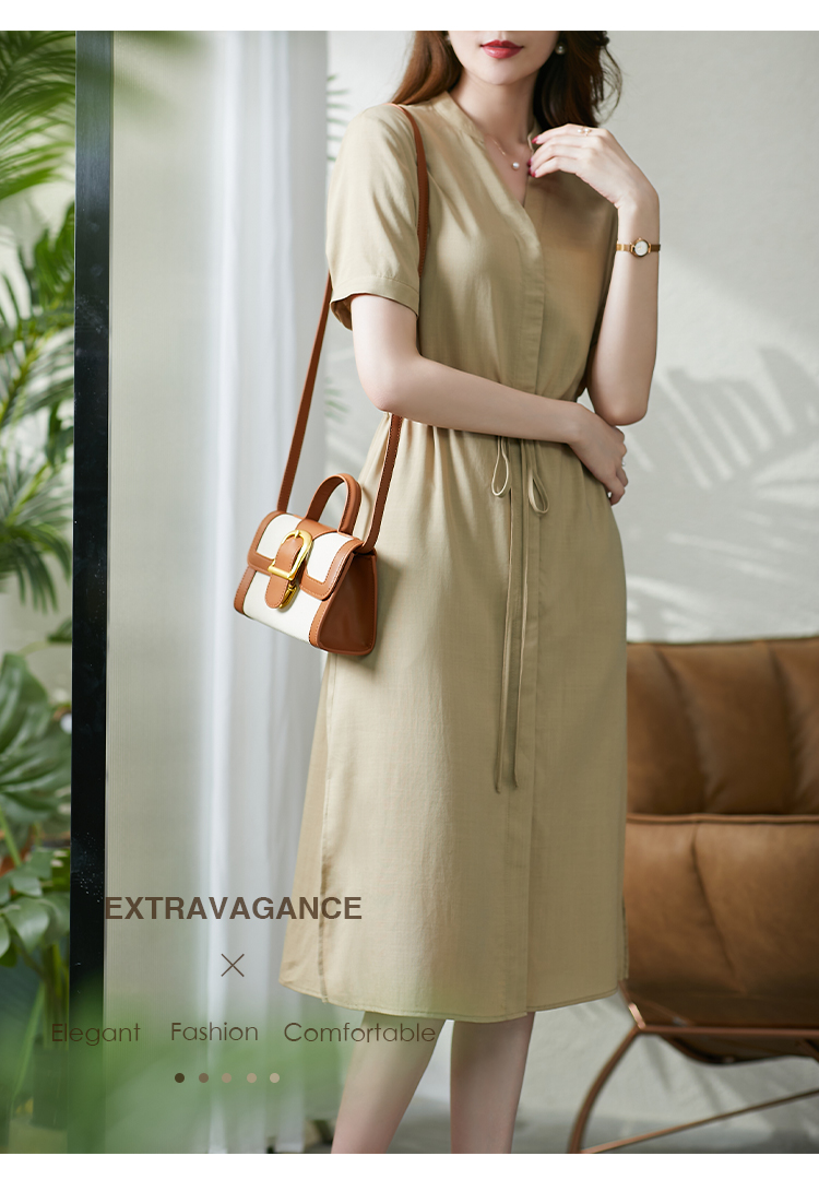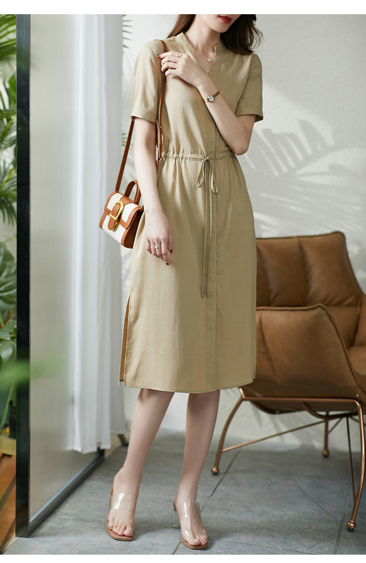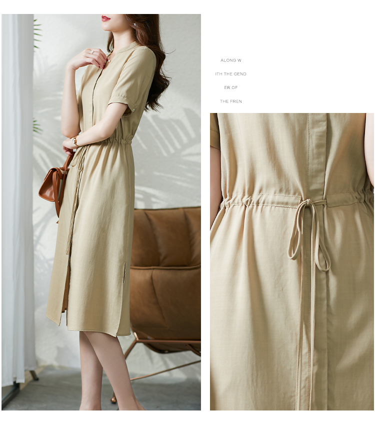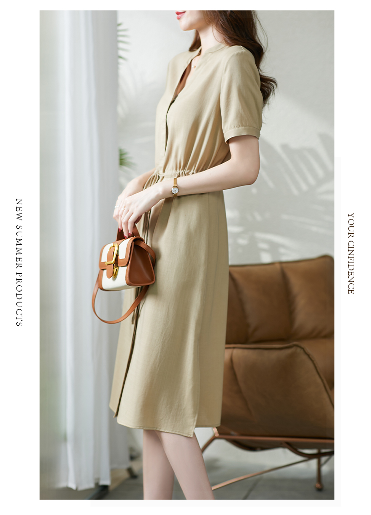 84615原形天丝连衣裙女收腰薄款2024春夏新款衬衫裙宽松显瘦中长款裙子