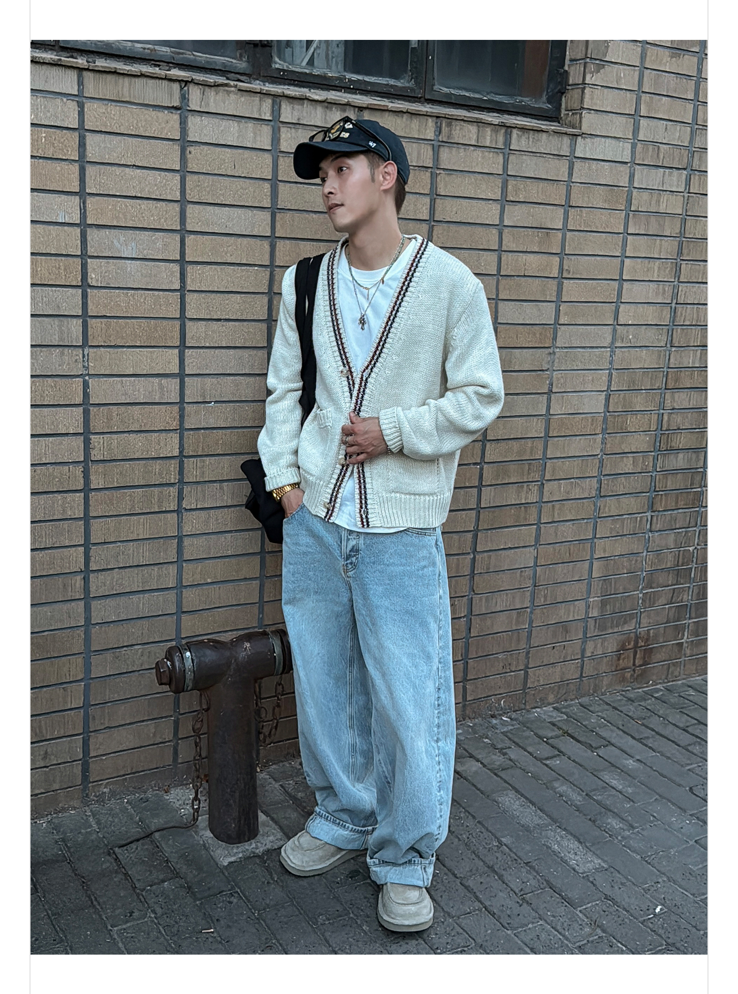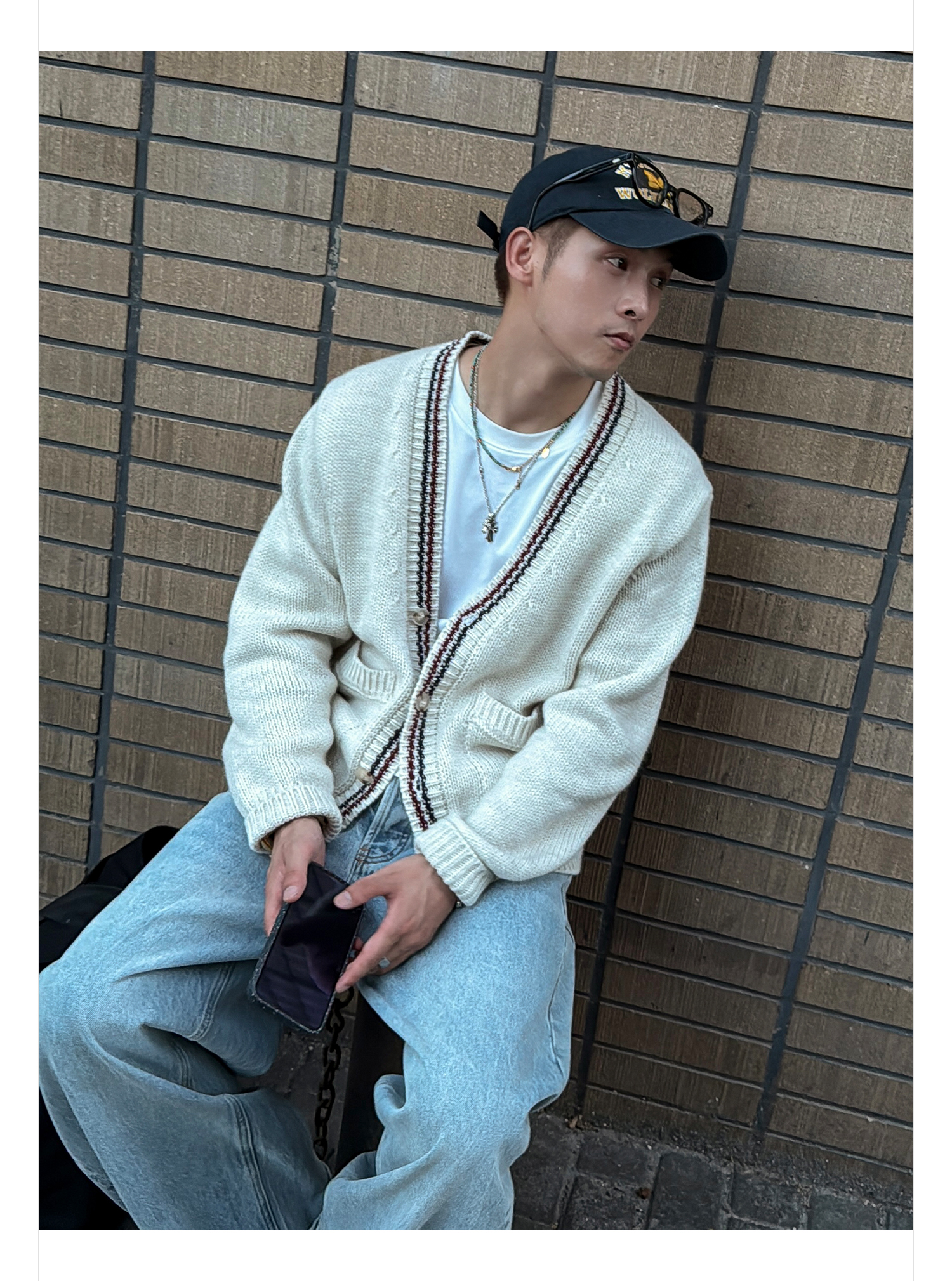 徐太浪【羊毛混纺 慵懒风】超好看V领开衫毛衣男款春秋休闲针织衫