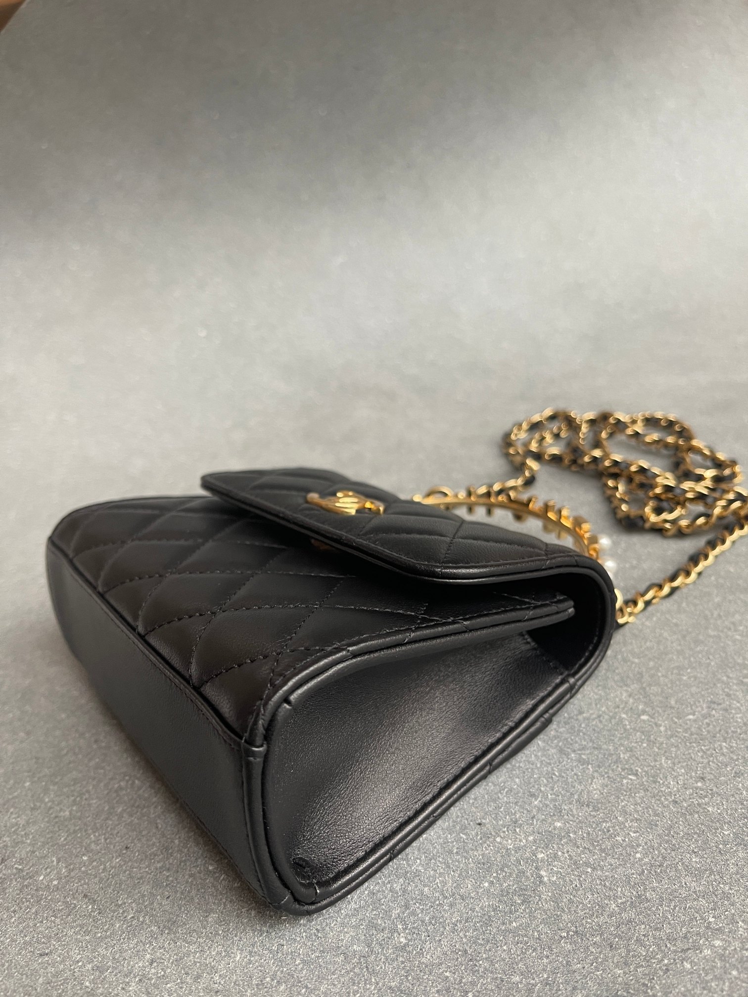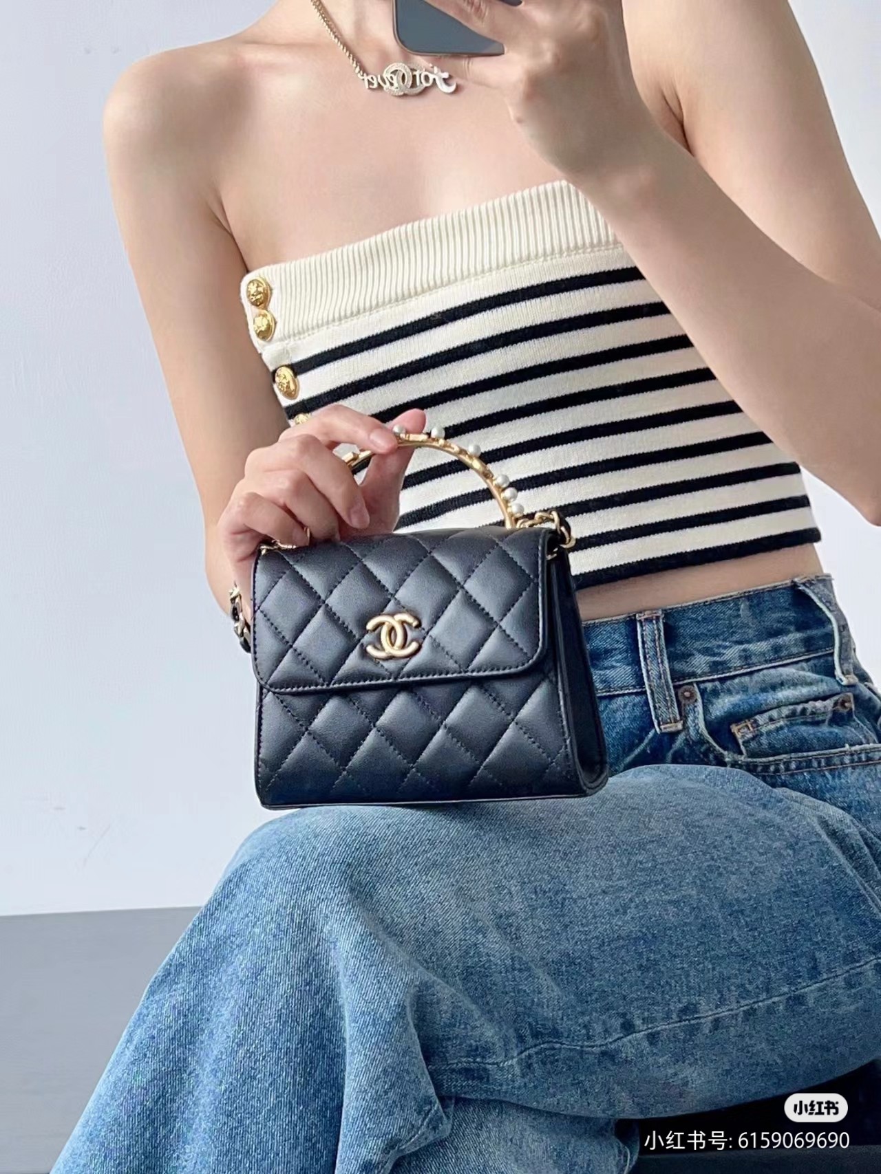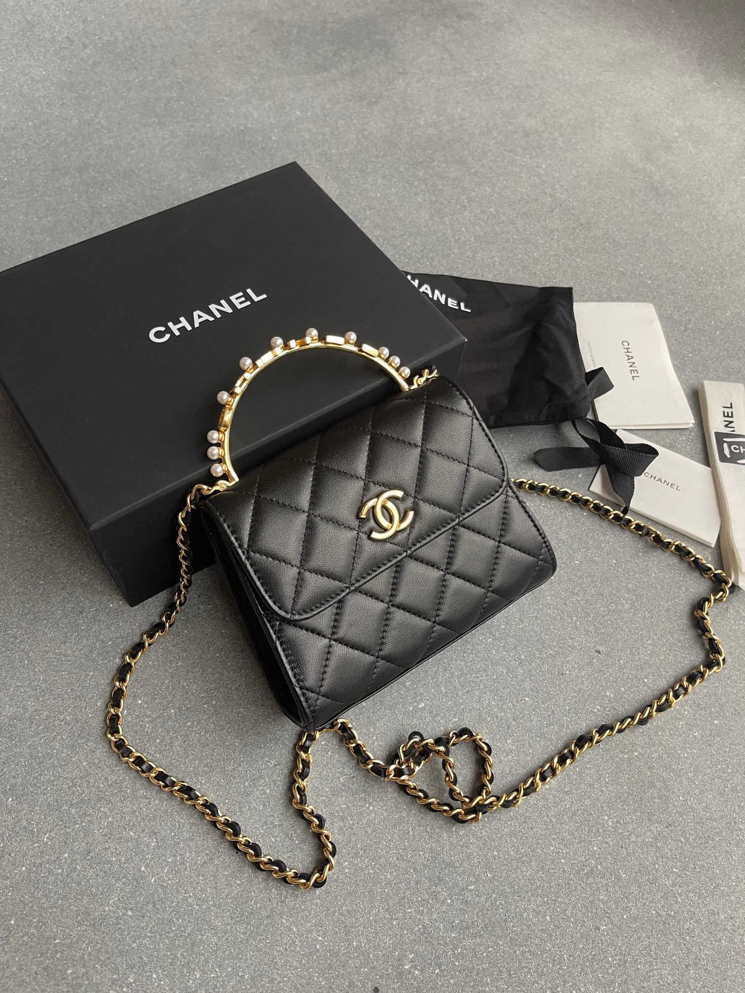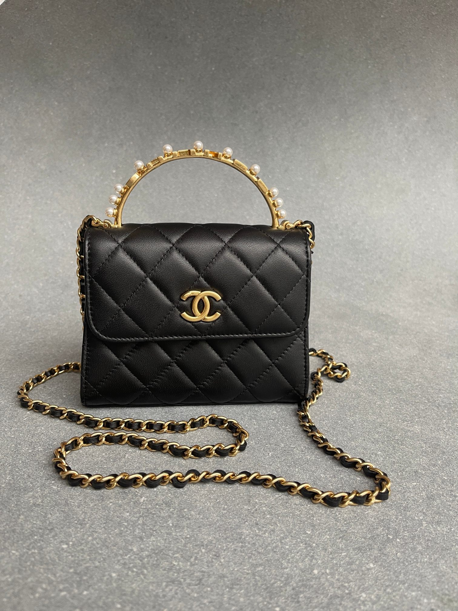 香奈儿23B珍珠手柄miniKelly 黑色现货