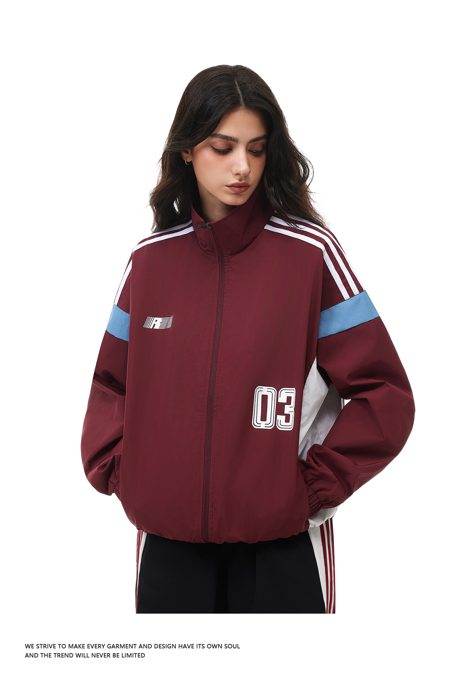 FDR官方店 美式复古运动撞色织带夹克外套女春季辣妹户外开衫上衣
