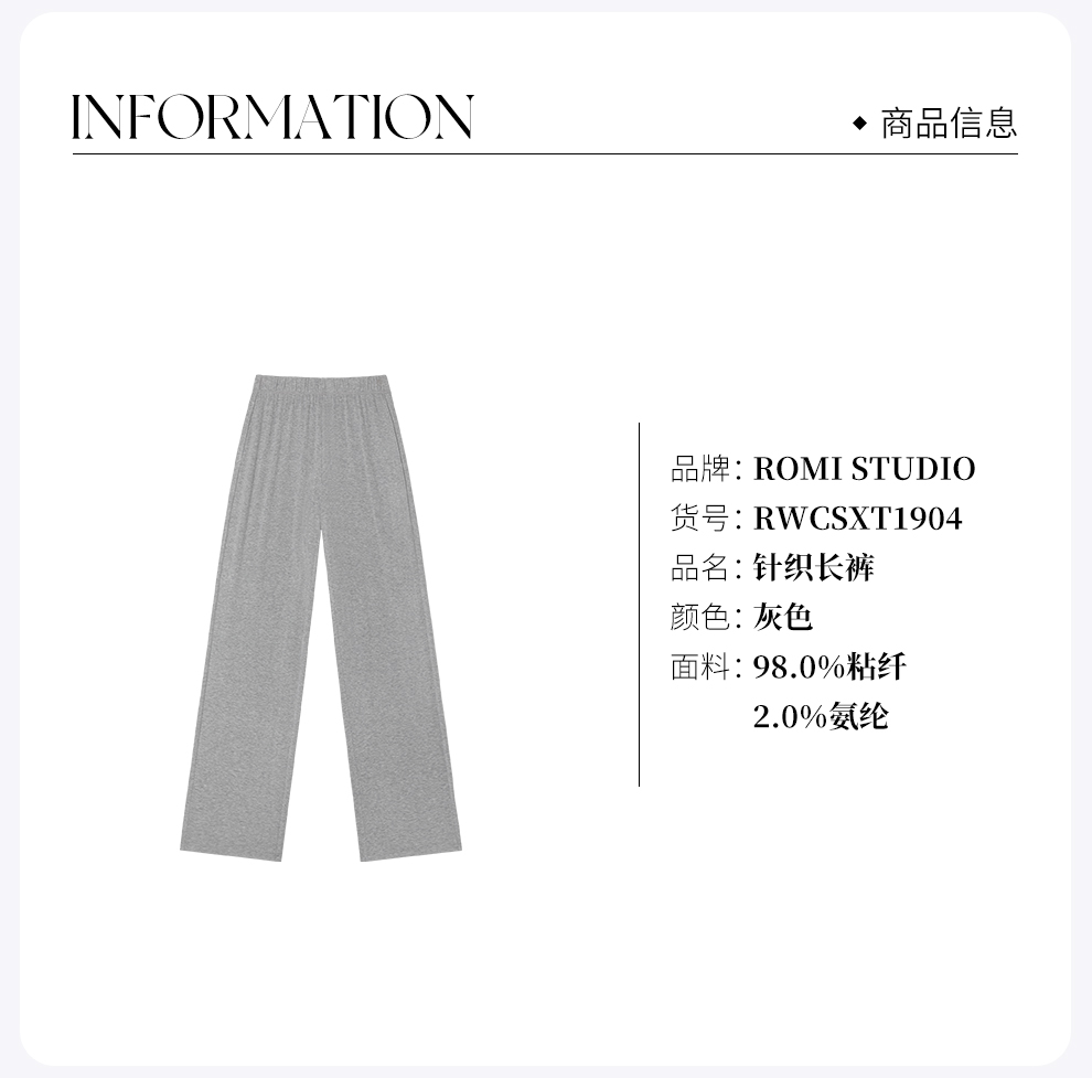 ROMI STUDIO极简花纱灰松紧腰直筒长裤 / 轻盈柔软垂感RWCSXT1904