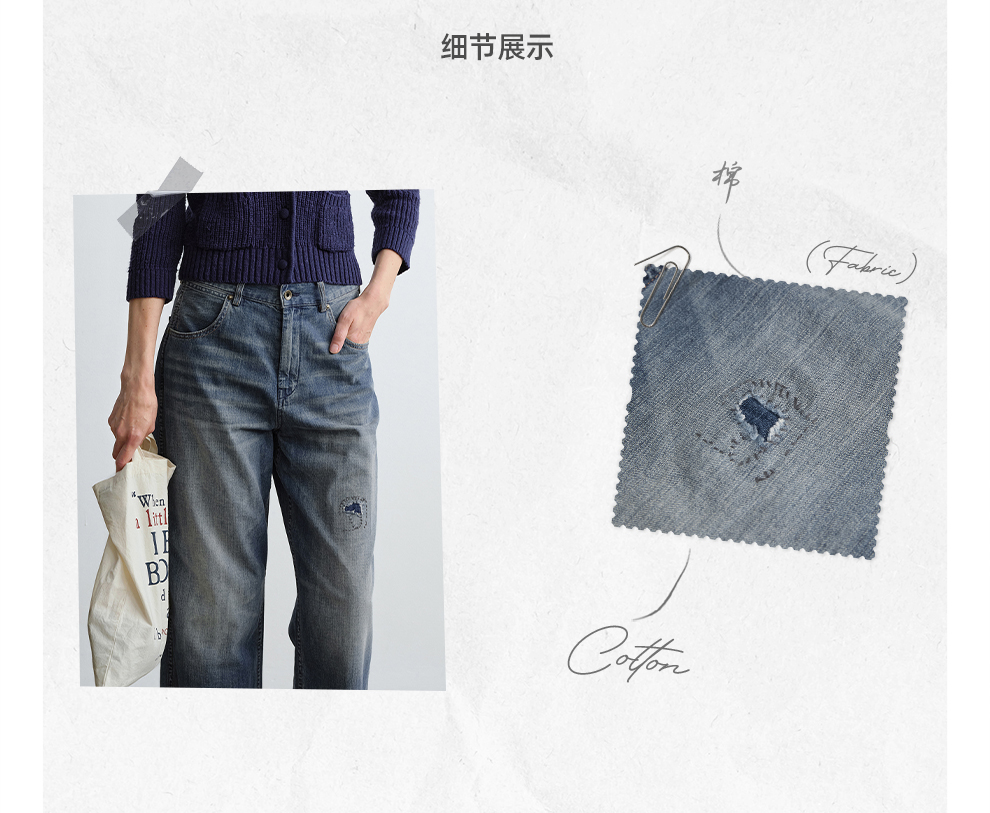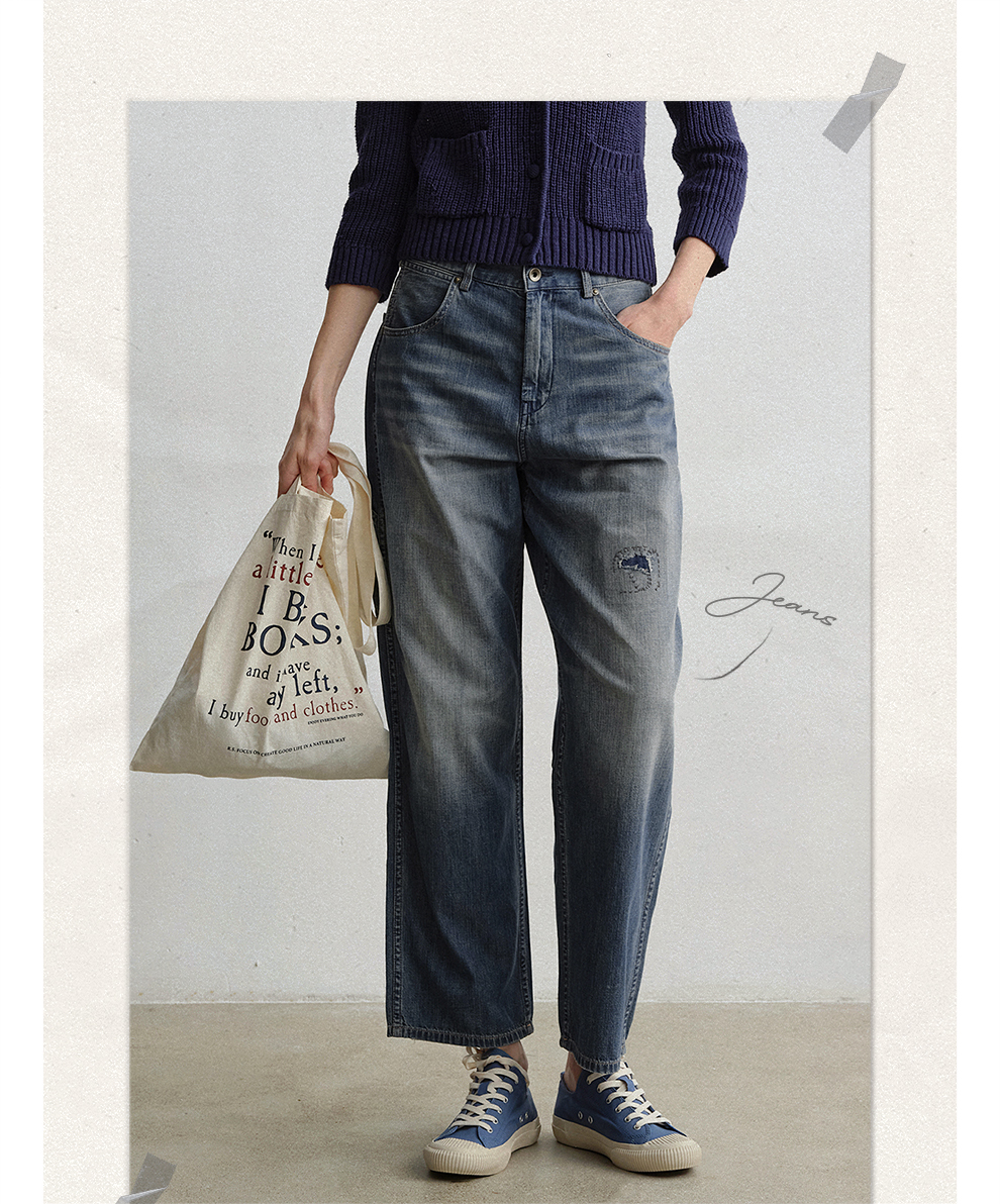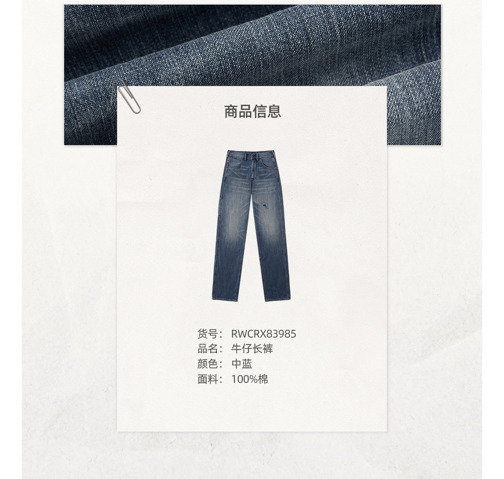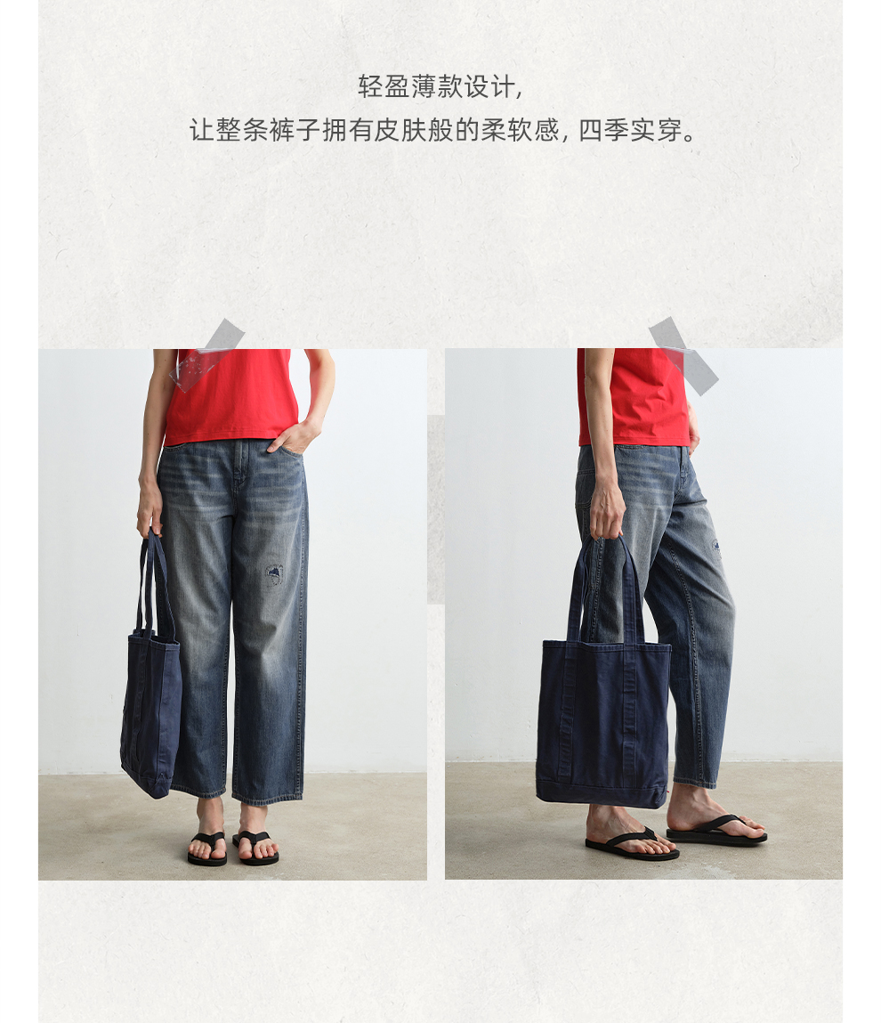 ROMI STUDIO“复古丹宁”夏季轻薄水洗毛须直筒牛仔裤 RWCRX83985