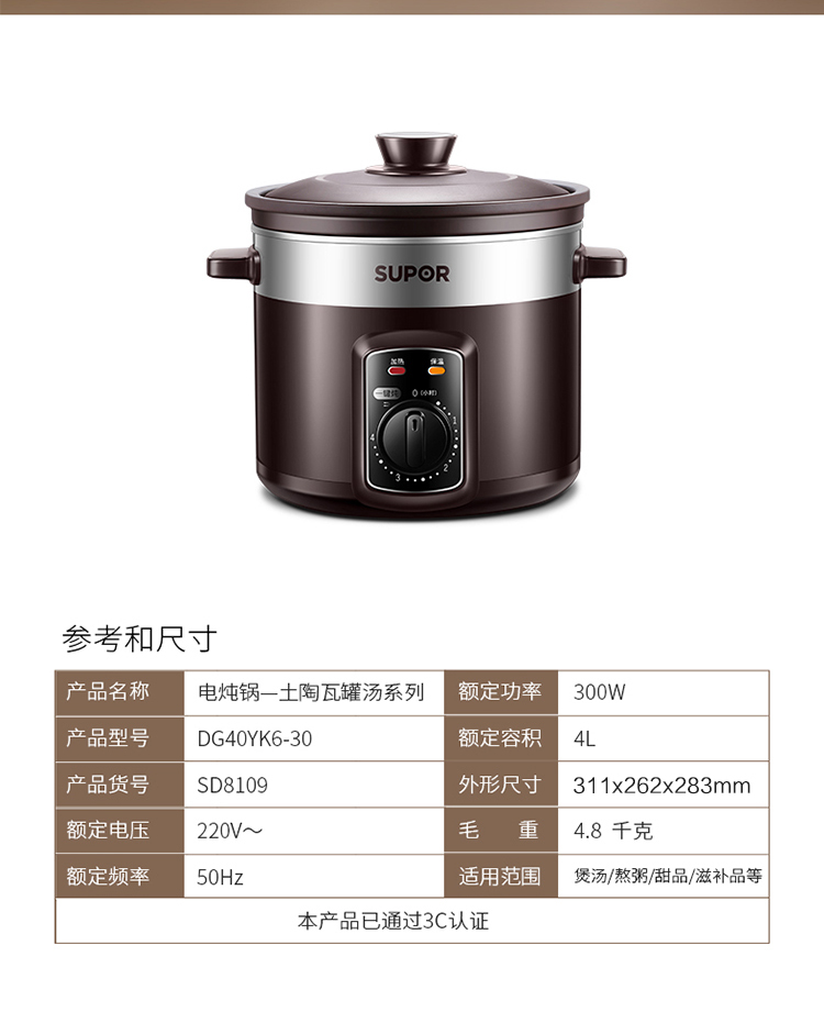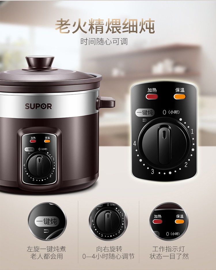 苏泊尔(SUPOR)DG40YK6-30 4升 ZMD安心系列 紫陶系列 机械型电炖锅 银紫
