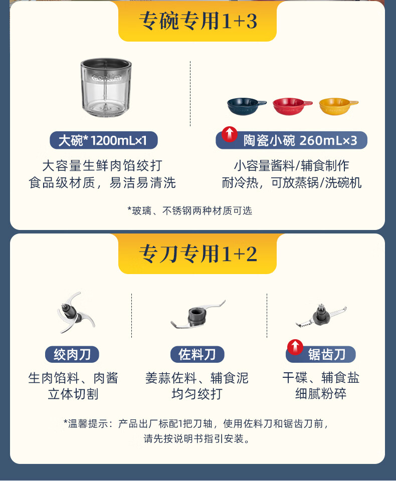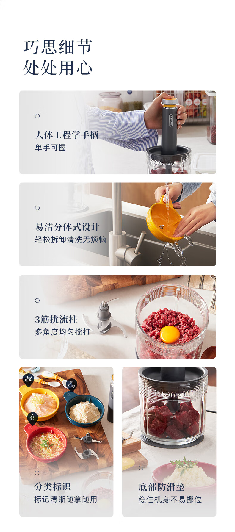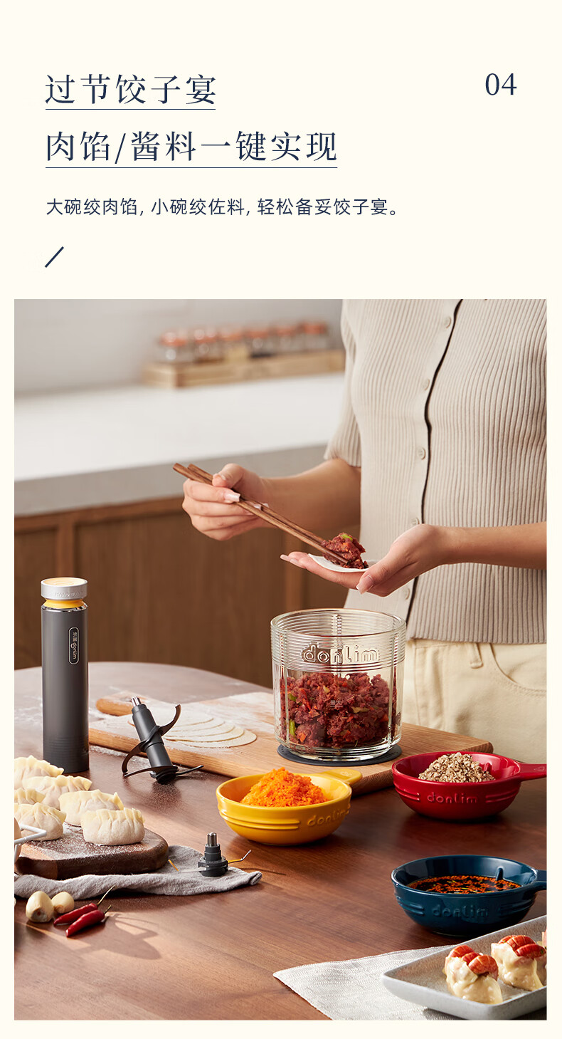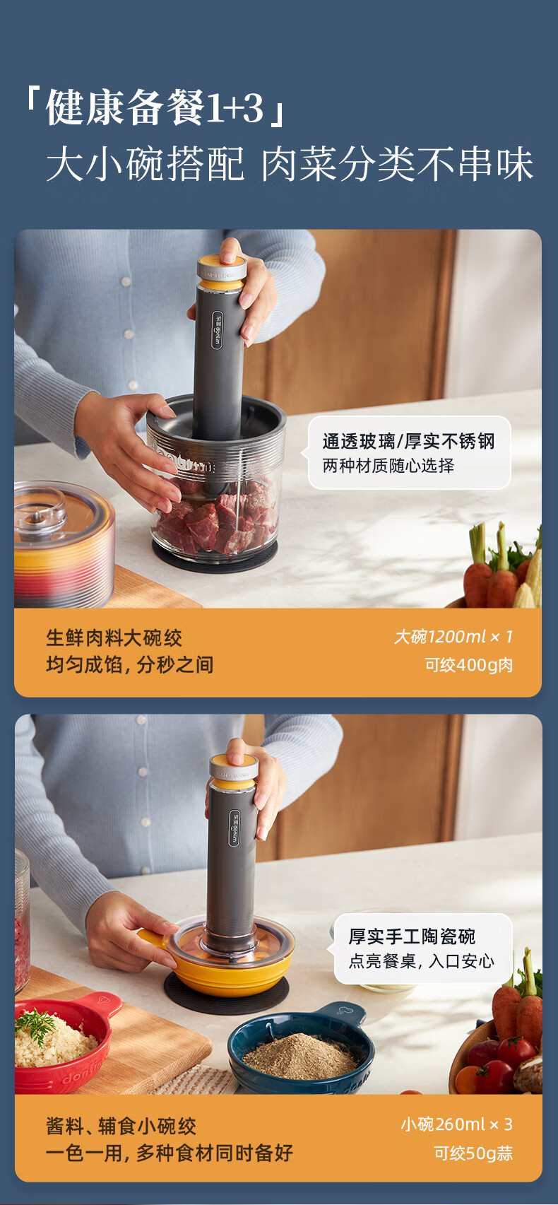东菱(Donlim)绞肉机家用备餐佐料机电动有线料理棒 套娃辅食机多功能搅拌机碎肉磨粉机捣蒜器DL-5028(玻璃款)