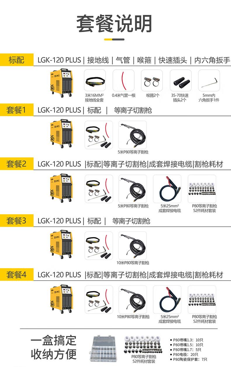 上海沪工LGK-120 PLUS II等离子切割机380V电焊两用工业级一体机 内置气泵,适配P80-100B切割枪。