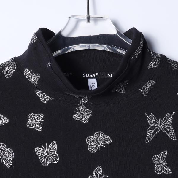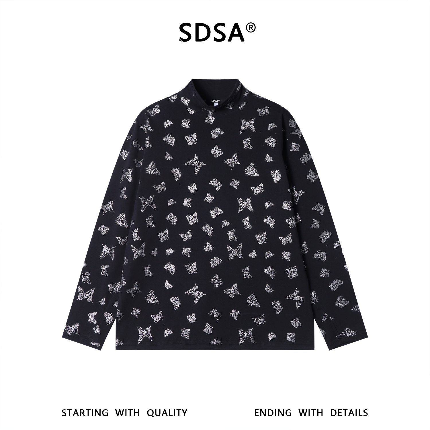 SDSA男士秋冬新款痞帅男装潮牌撞色满印蝴蝶印花立领长袖T恤百搭