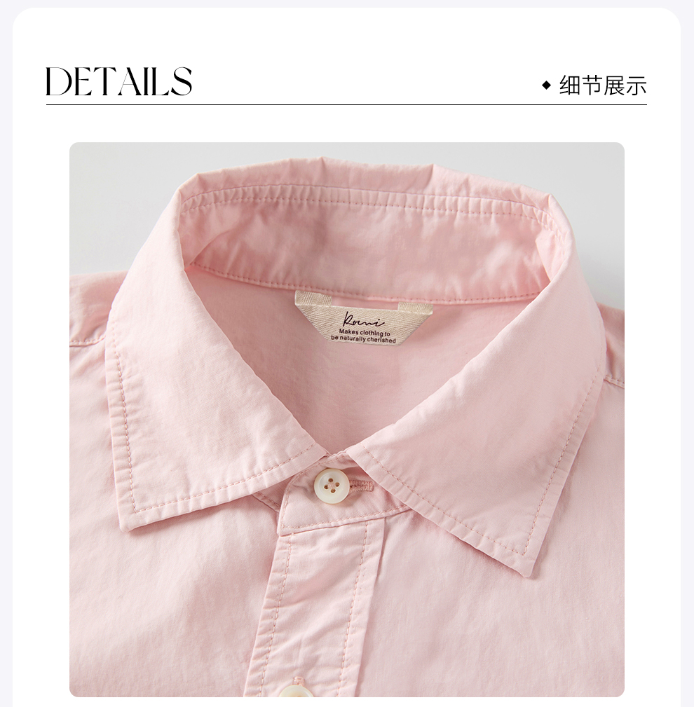 ROMI STUDIO“”纯棉复古砂洗粉经典款翻领衬衣RW24SSD0408