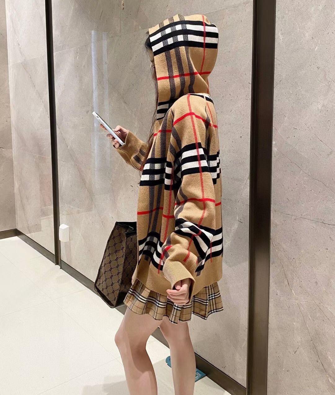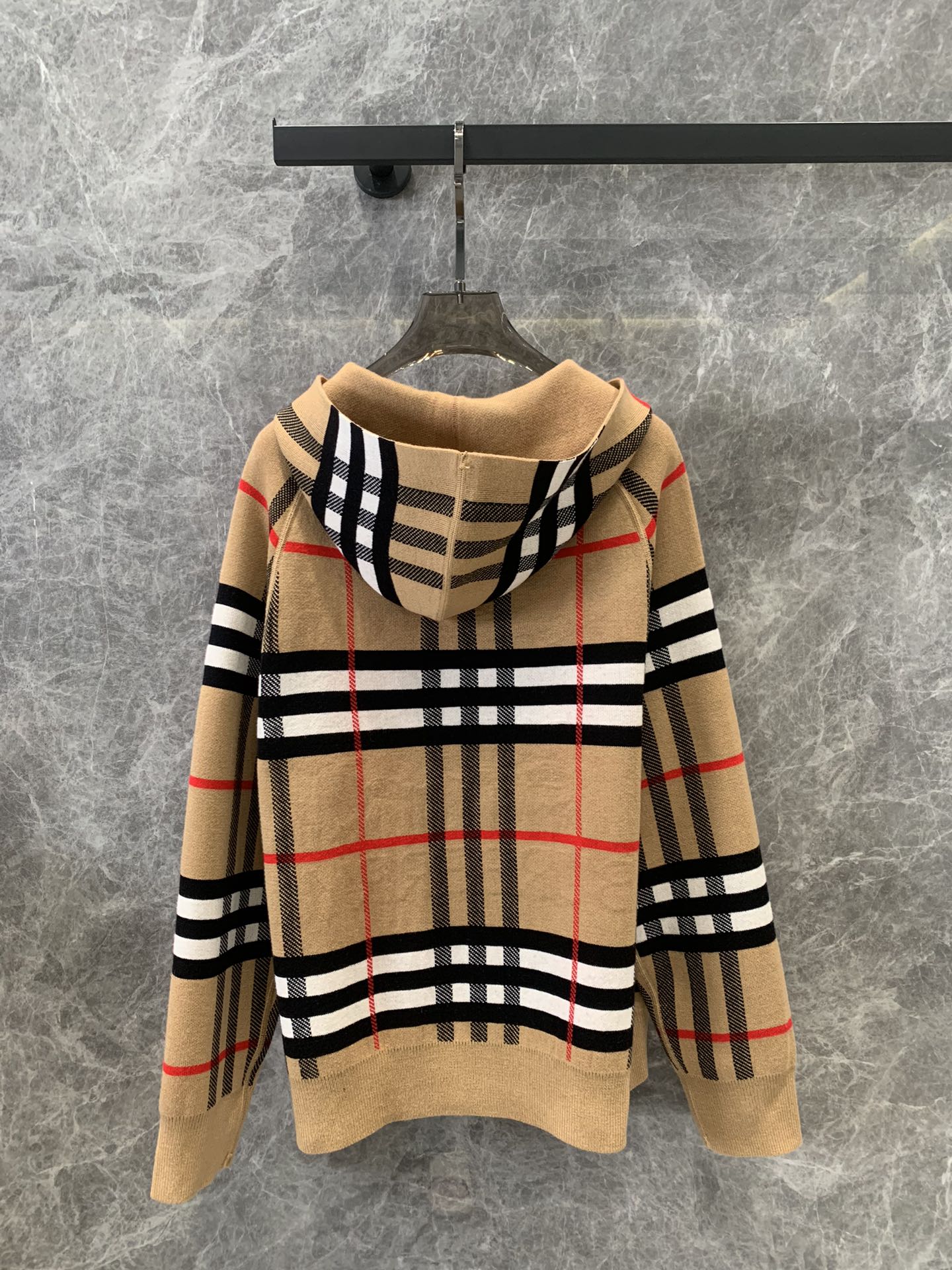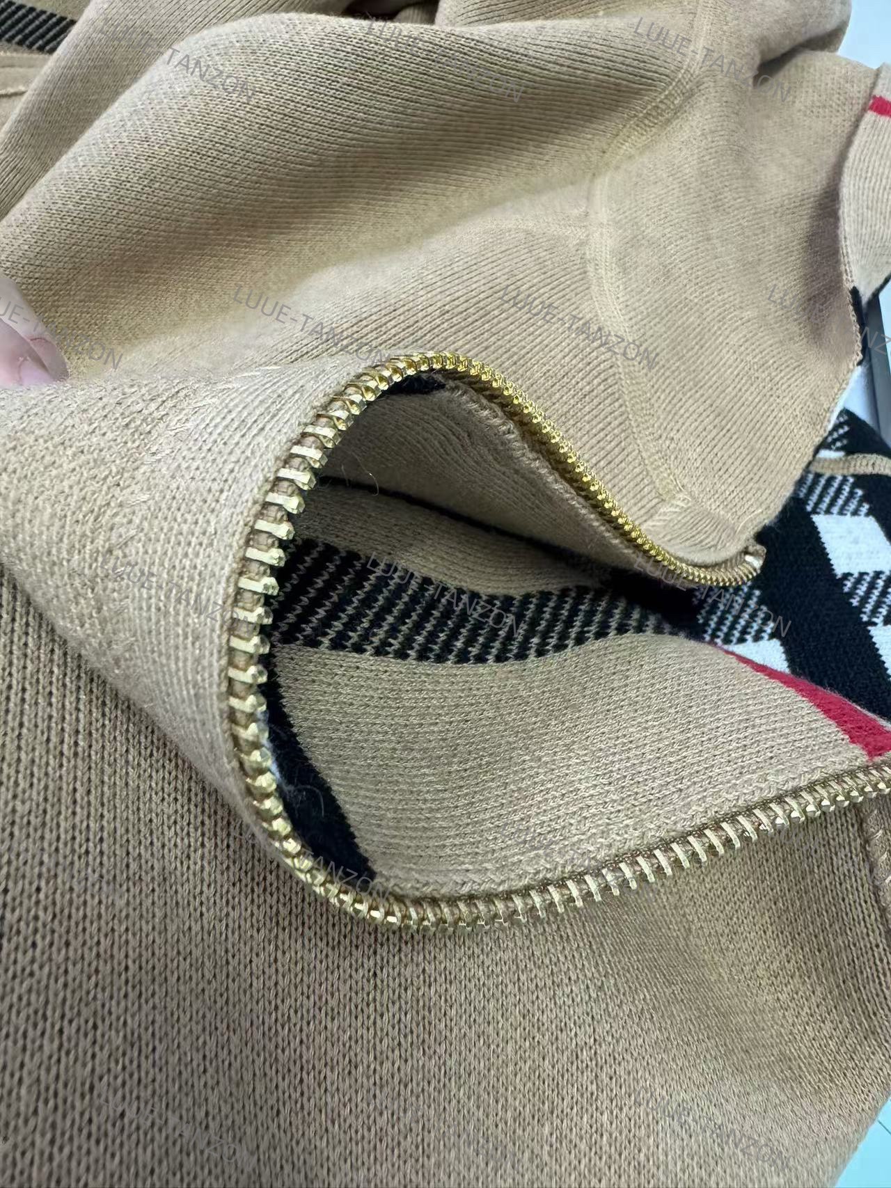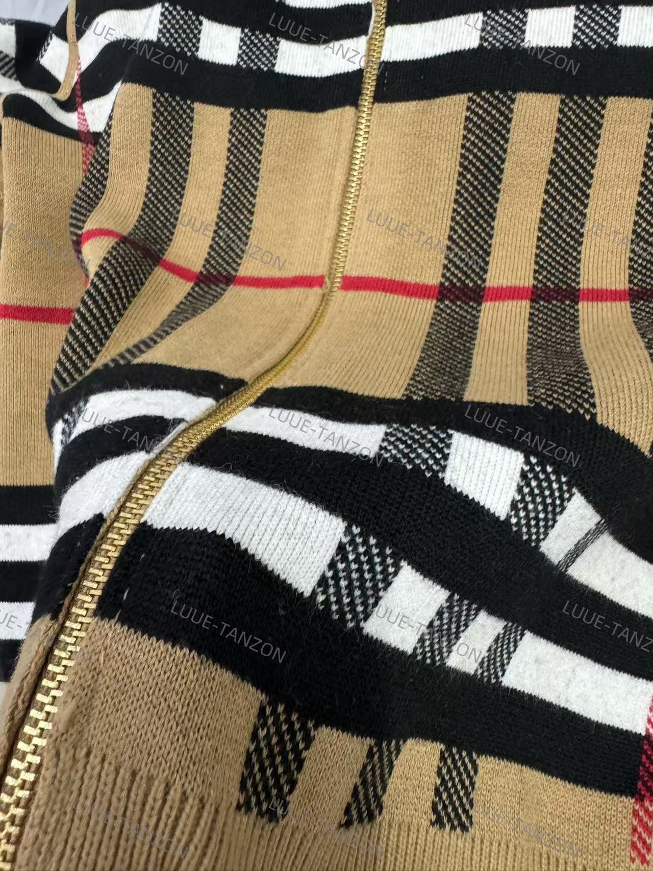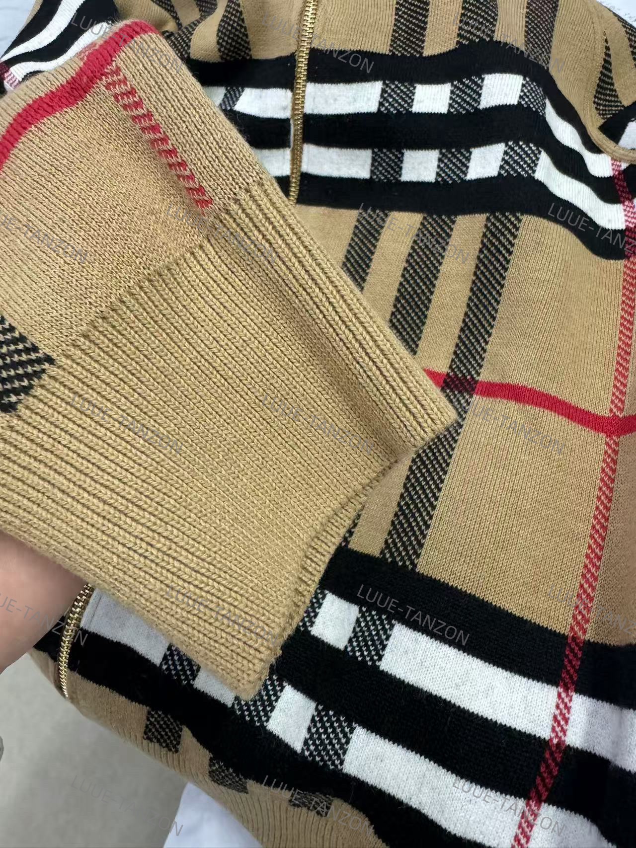 Burberr* 24Fw早秋新款 双面穿格纹拉链针织连帽开衫