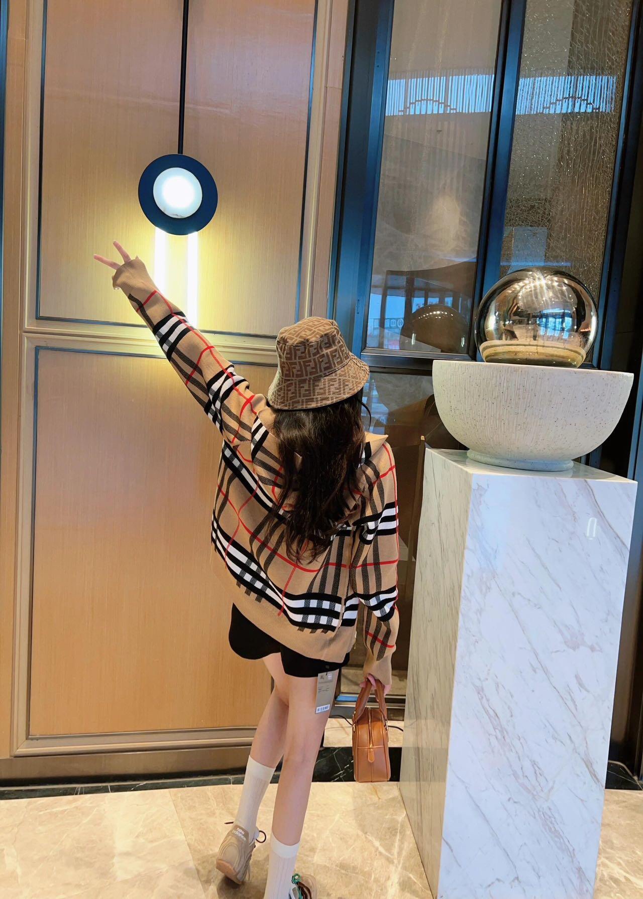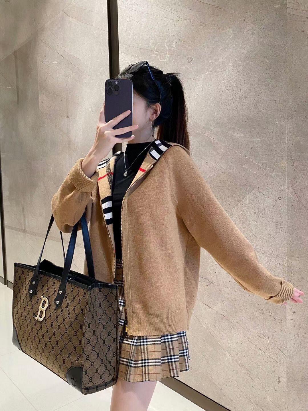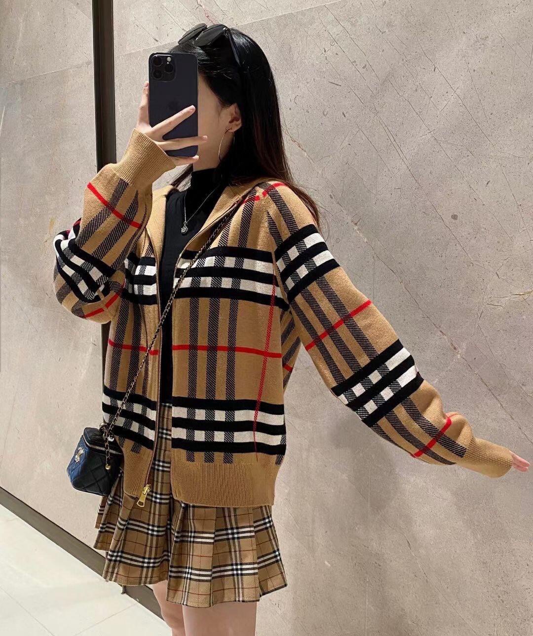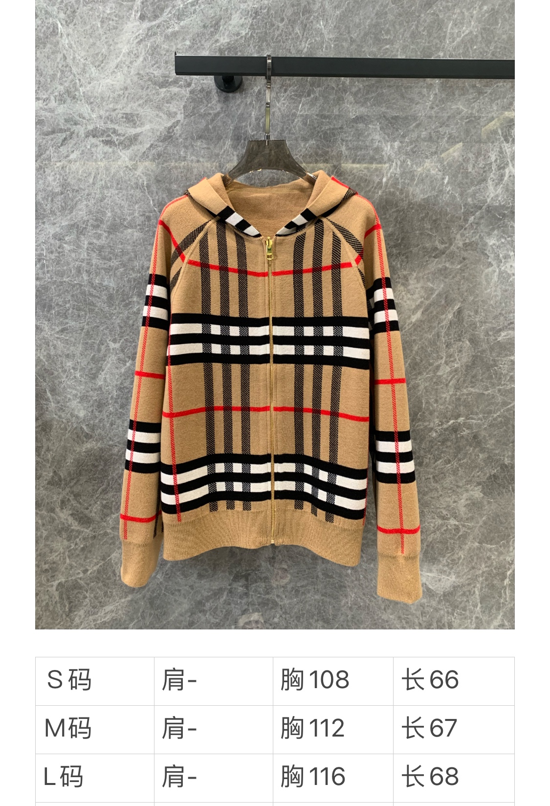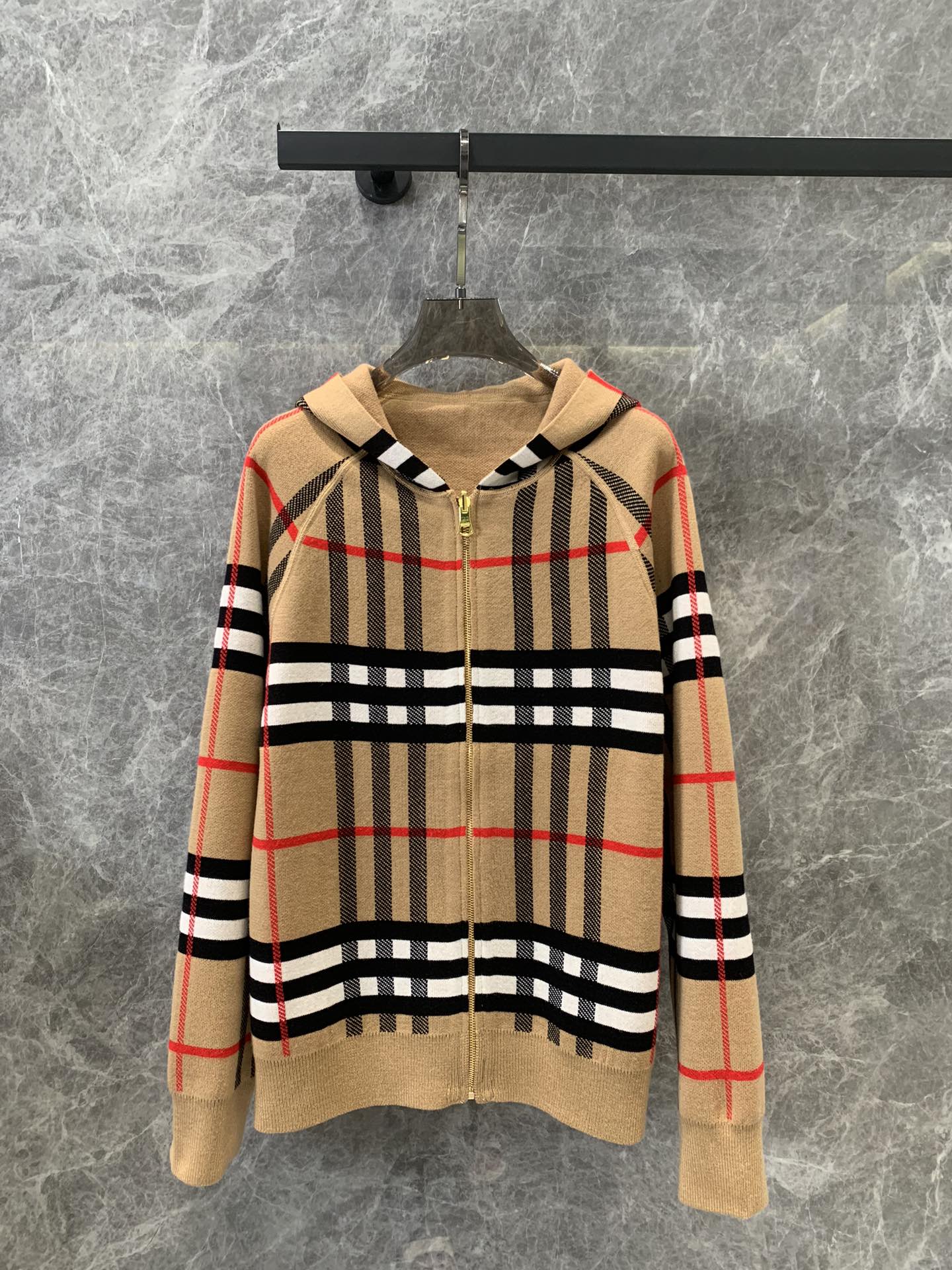 Burberr* 24Fw早秋新款 双面穿格纹拉链针织连帽开衫