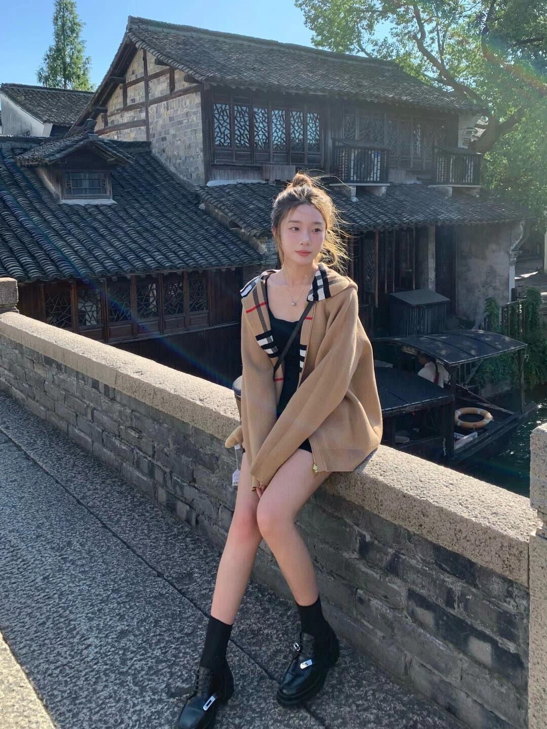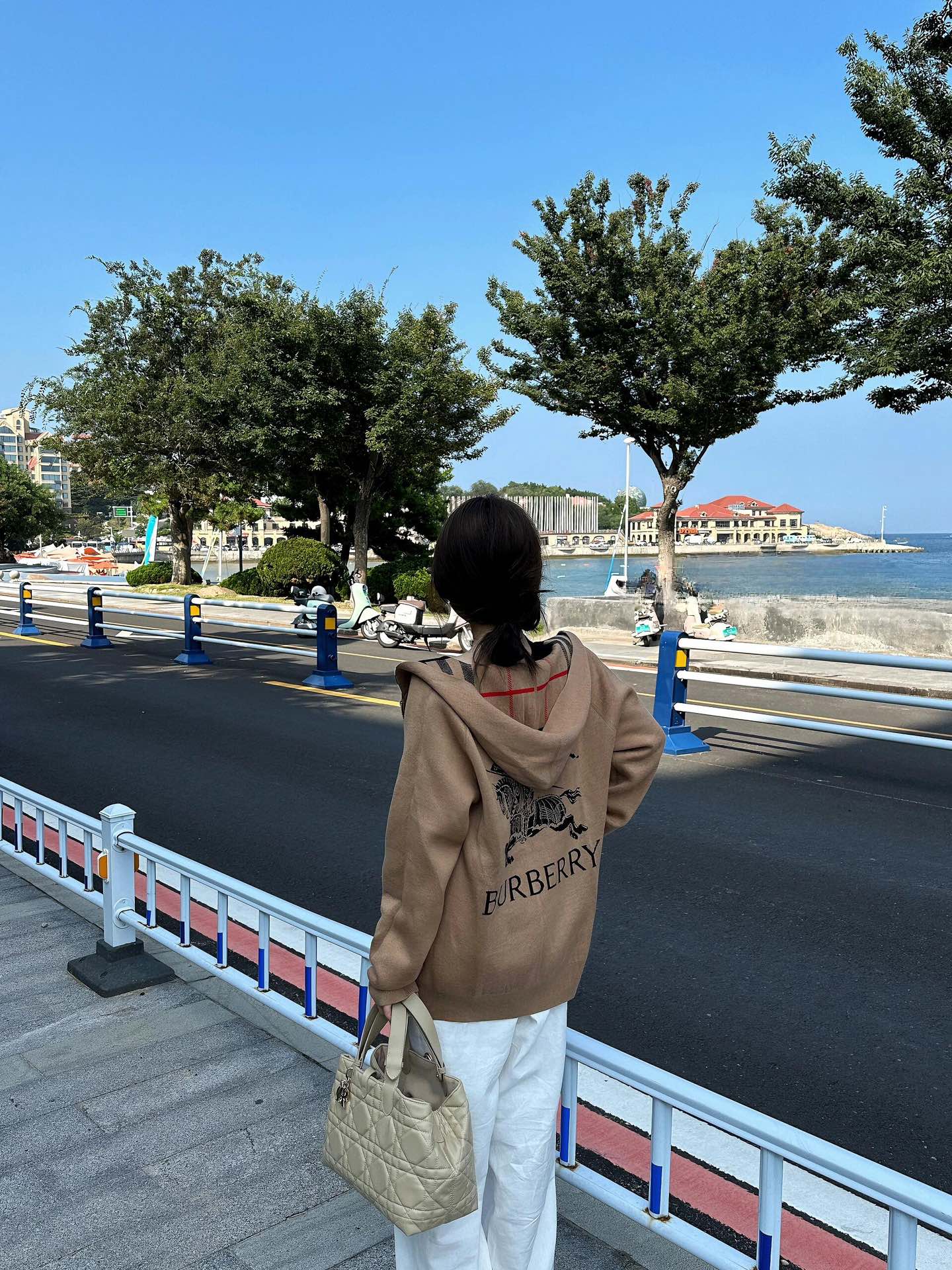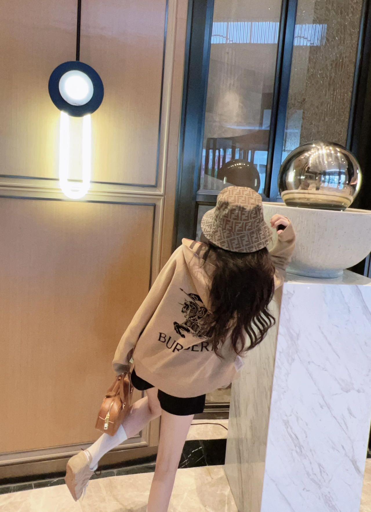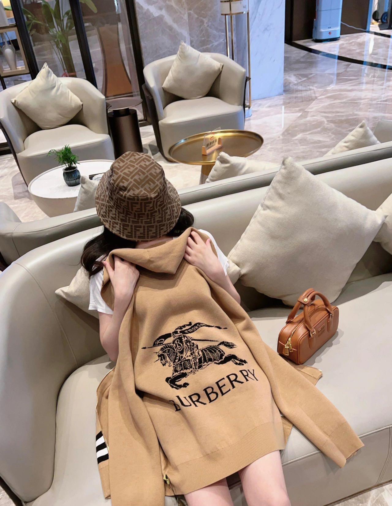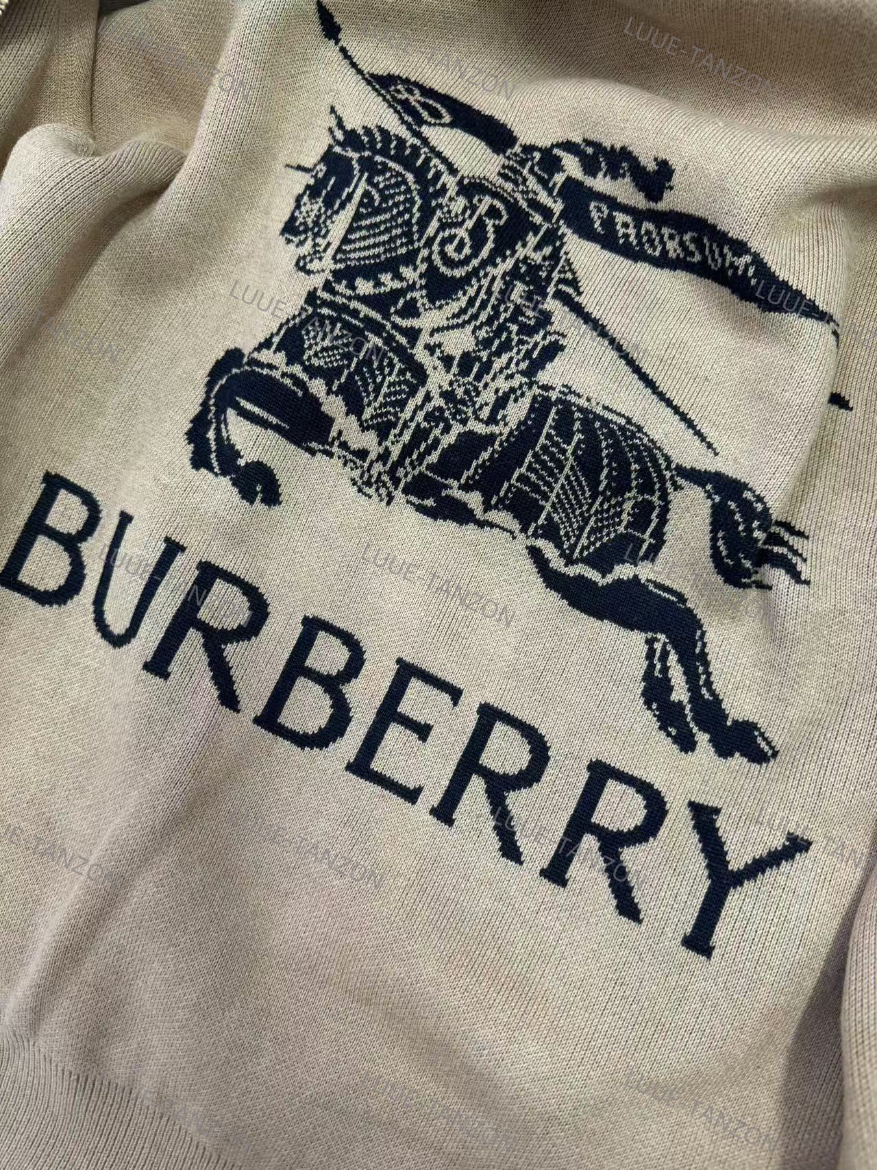 Burberr* 24Fw早秋新款 双面穿格纹拉链针织连帽开衫