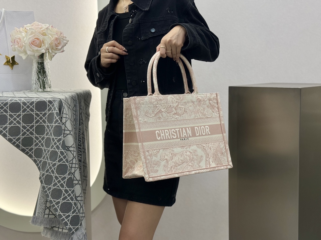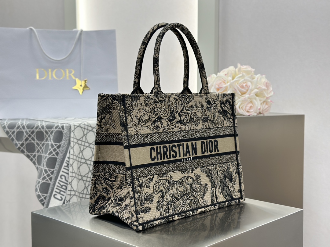 DIOR迪奥BookTote茹伊印花刺绣棉托特包Tote包购物袋手提包中号动物园系列(HH)