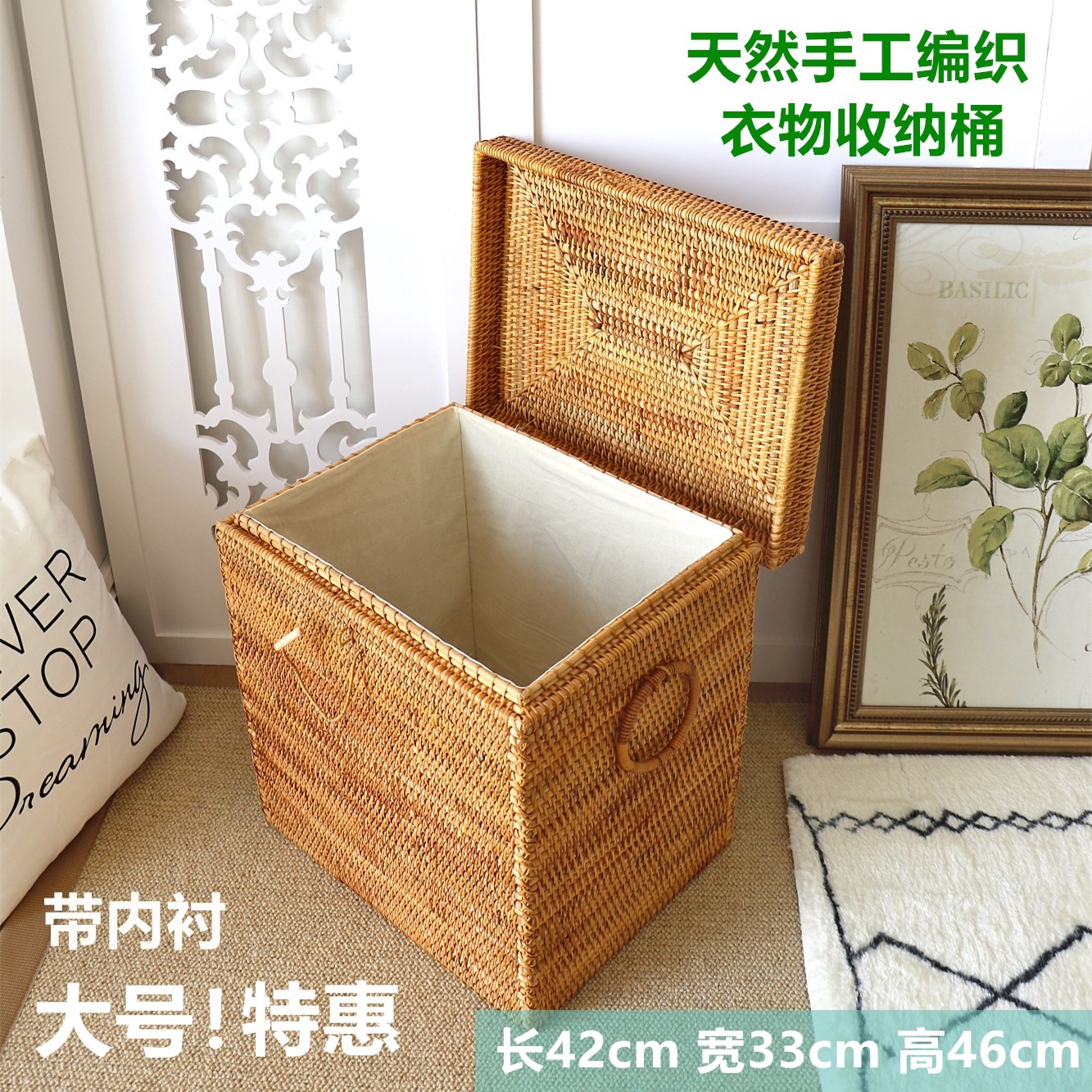 娜家天然手工藤编收纳箱大方型