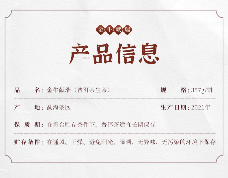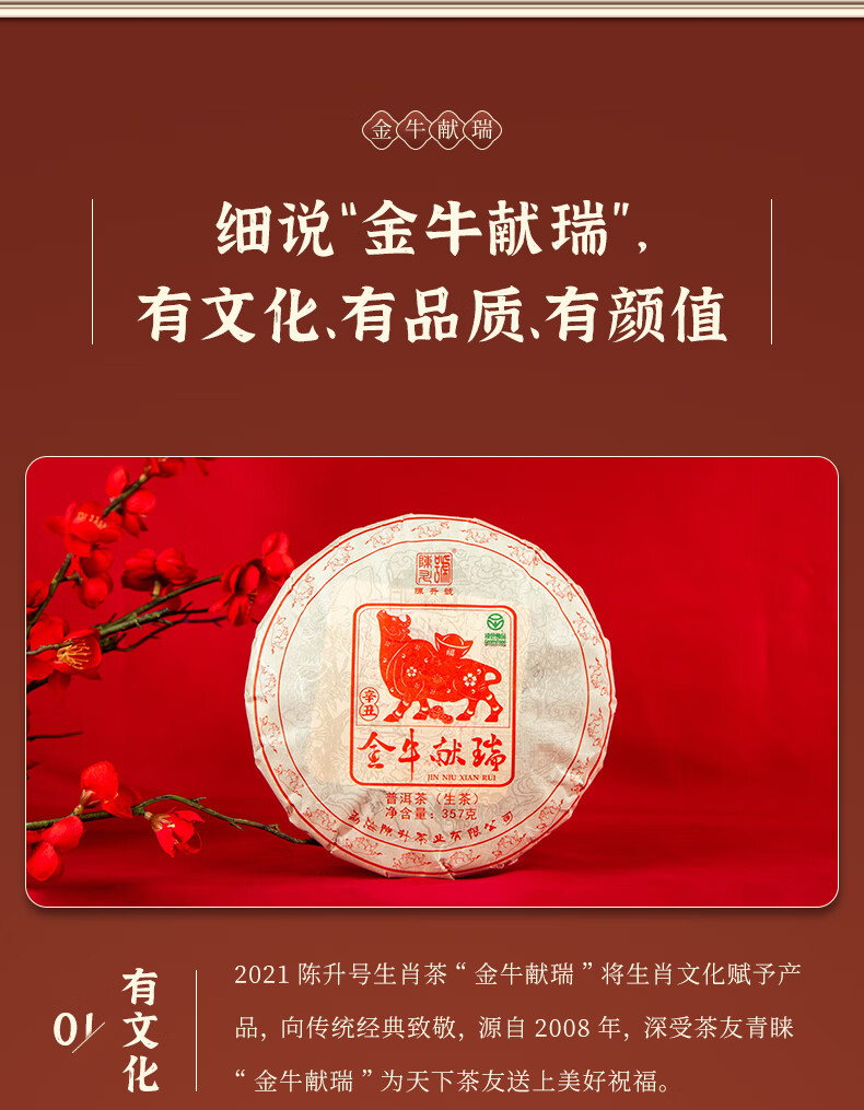 陈升号 2021年金牛献瑞生肖茶357g(生茶)