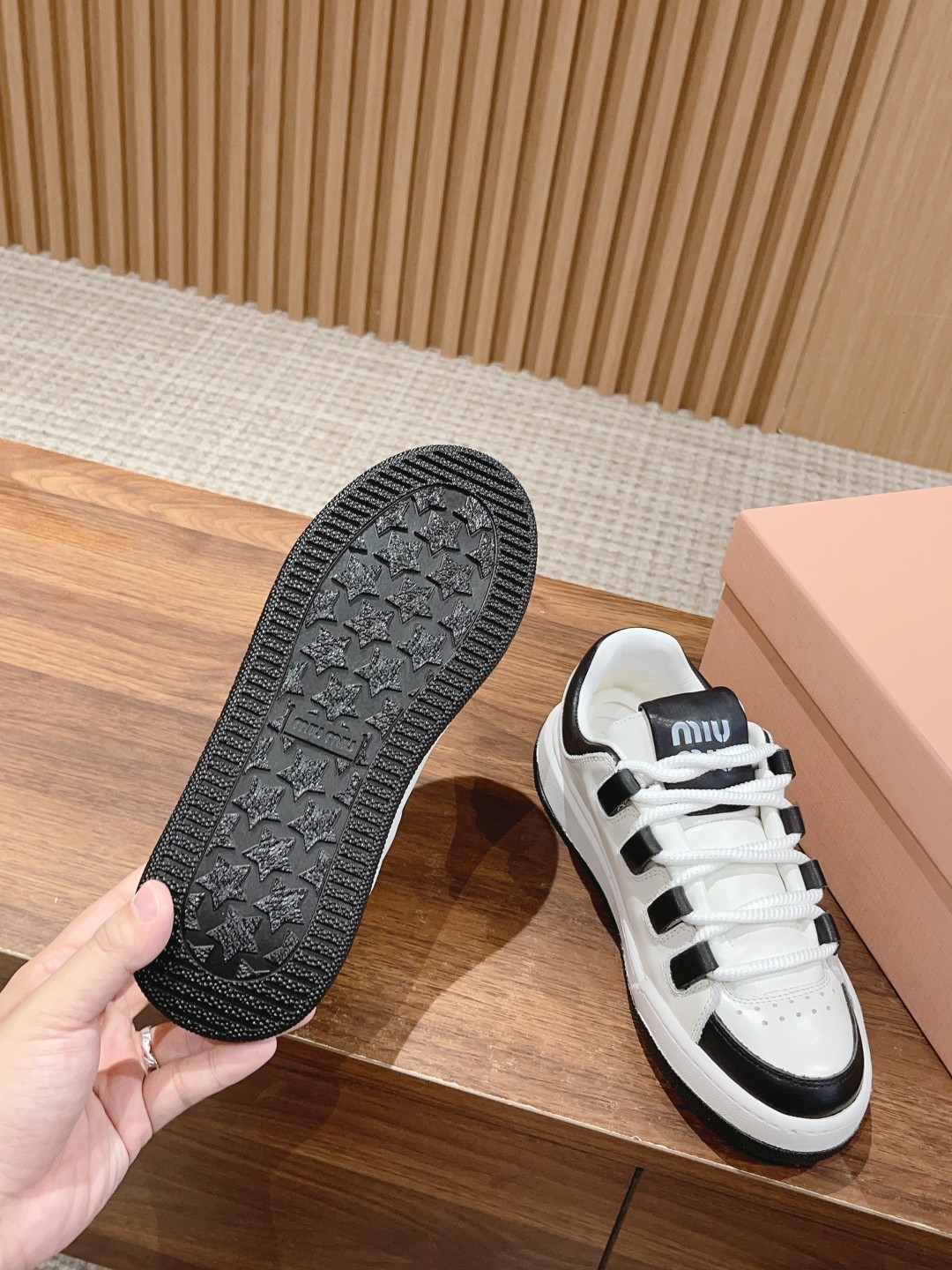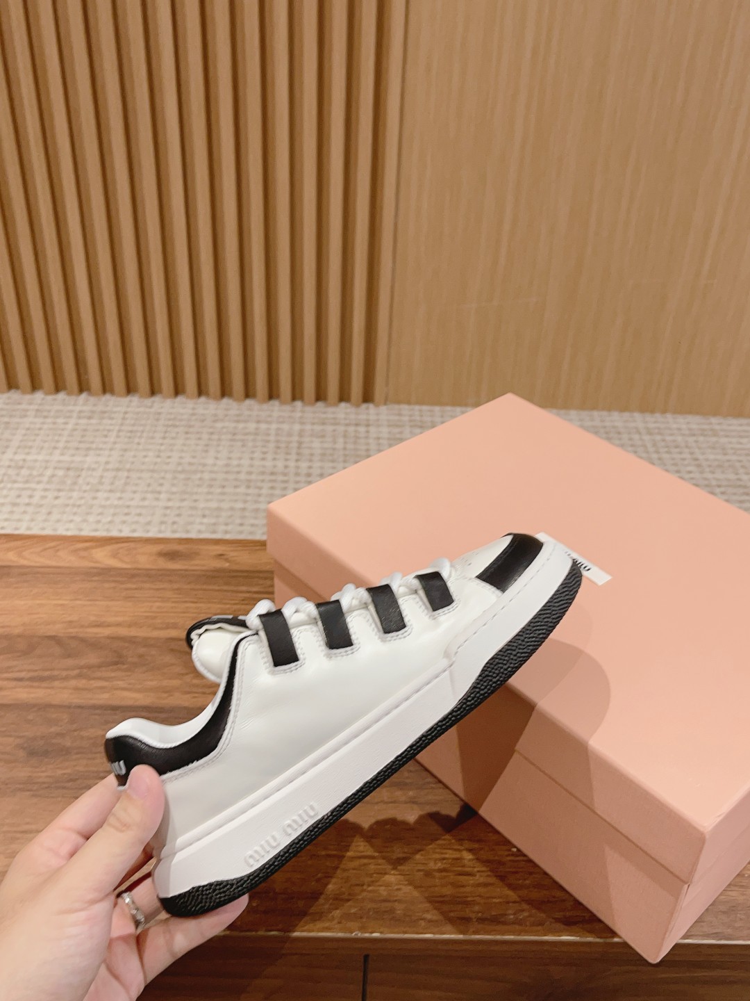 MIUMIU 缪缪2023新款美式复古风~ 颜值担当火爆款脏脏鞋 不得不入的一款~做旧时尚,简约高级 随意搭配上脚非常舒适,年度必入款! 早春最新走秀款运动小白鞋国内外博主刷爆的一款,小红书种草系列,复古又时髦上脚美炸了简约的运动板鞋设计,极具辨识度的鞋舌,打造佛系甜美的休闲风~~上脚气场十足随意搭配, 选用头层牛皮材质,内里丝绸牛皮里,原版TPU抽真空厚底(约4cm左右)