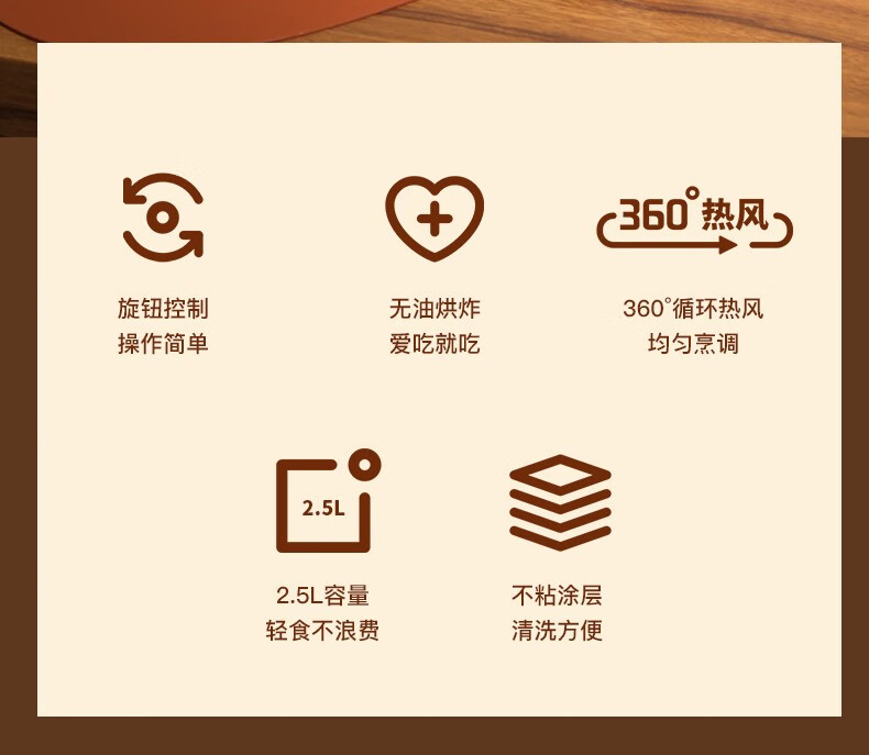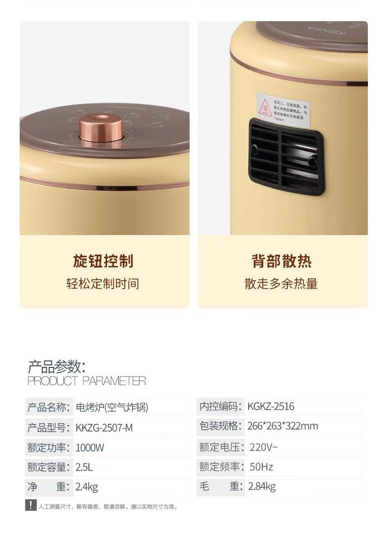 康佳(KONKA) 电炸锅家用多功能不沾涂层无油薯条机空气炸锅KKZG-2507-M