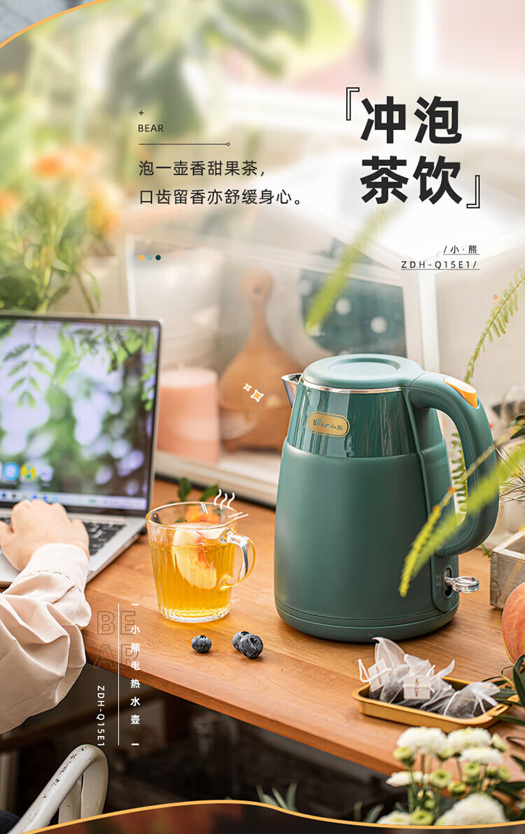 小熊烧水壶电水壶保温热水壶电热水壶开水壶1.5L大容量养生 ZDH-Q15E1