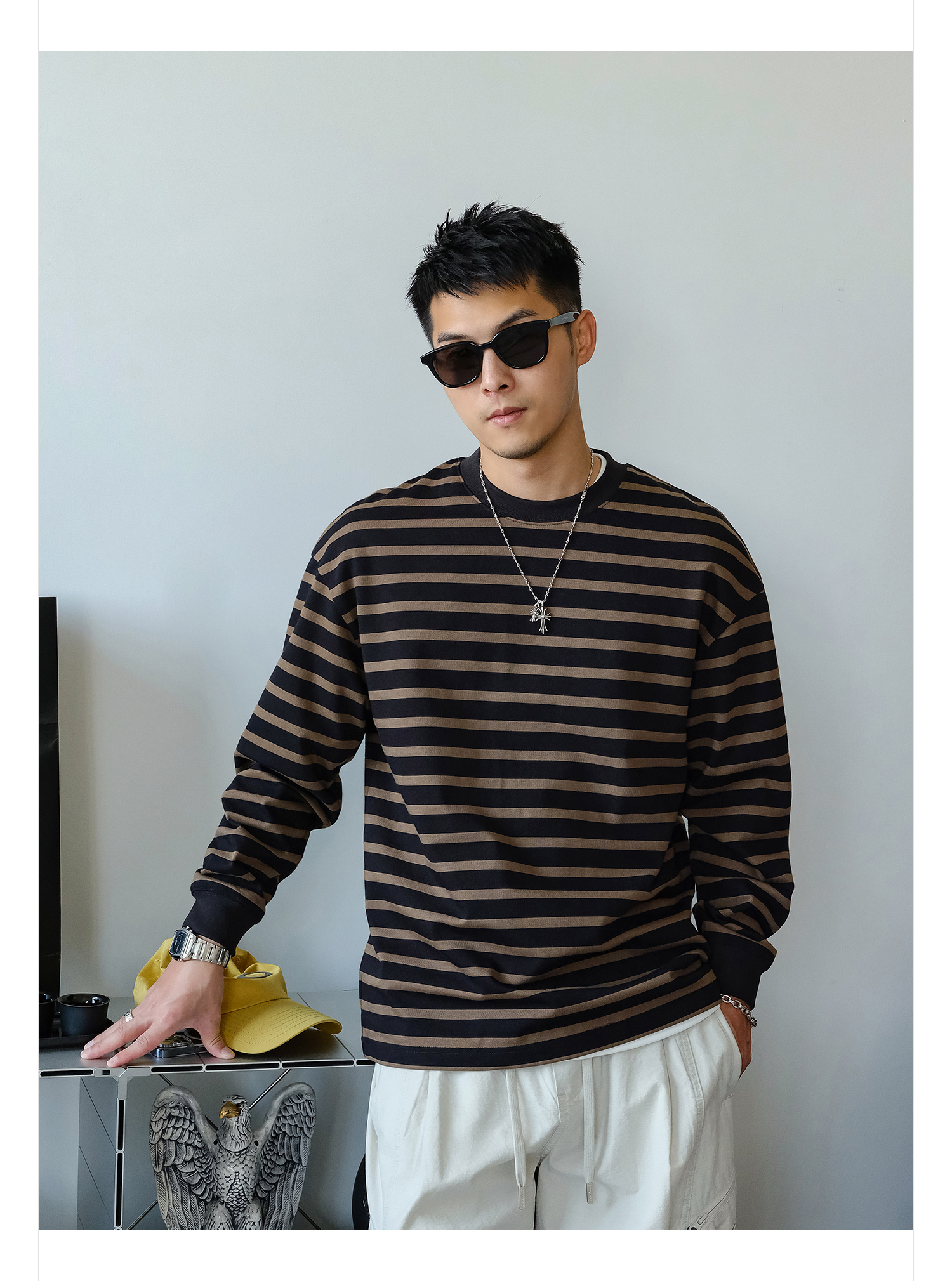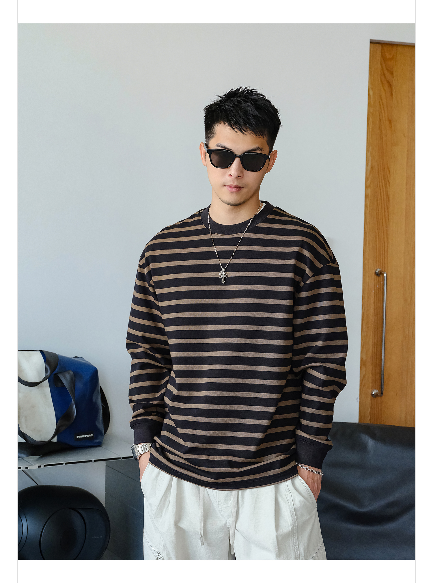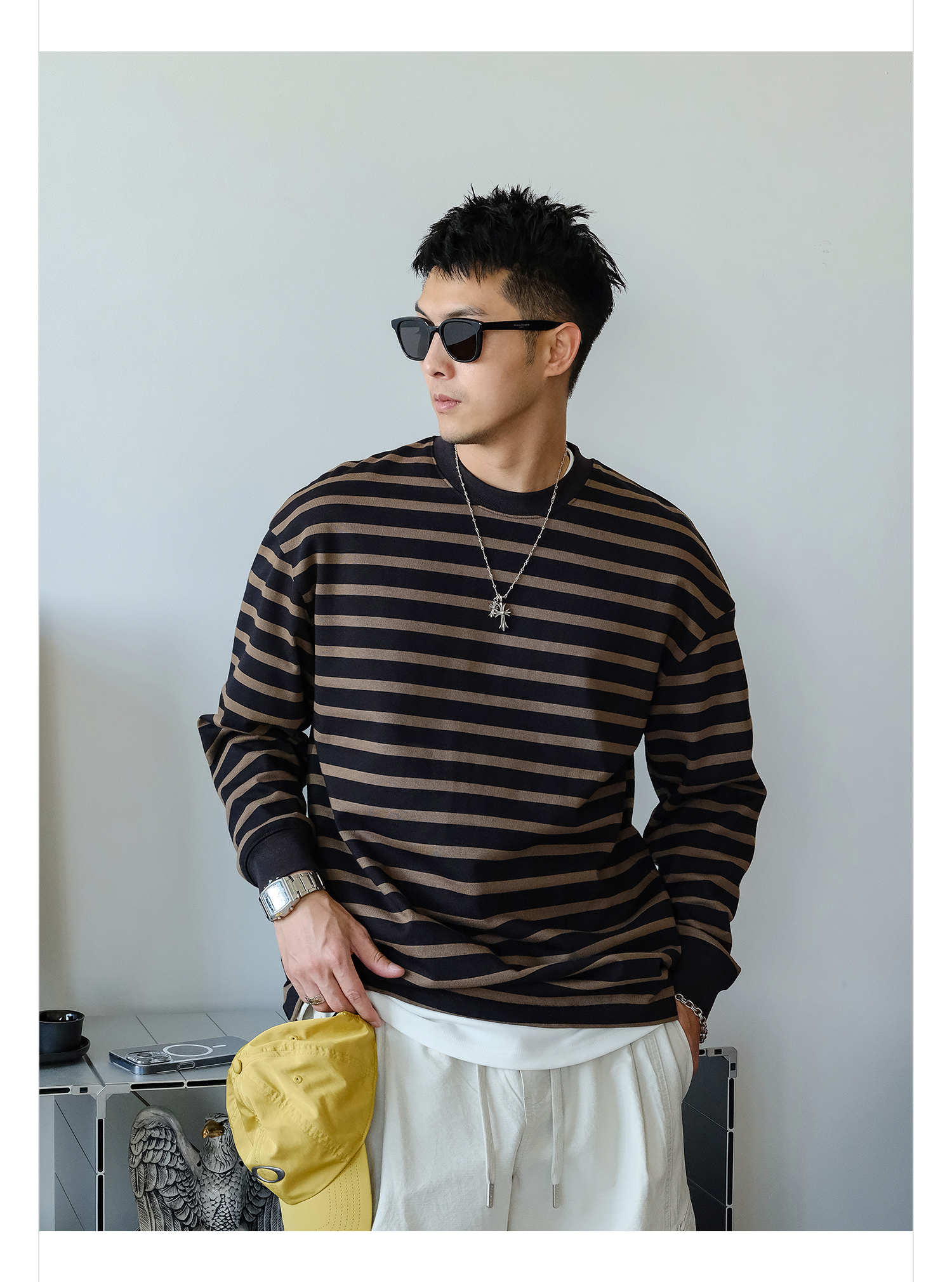 徐太浪310g美式撞色条纹卫衣男2025新款秋季男装休闲内搭通勤上衣