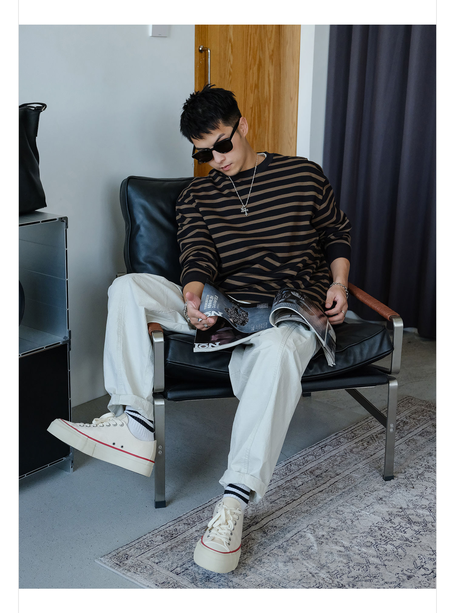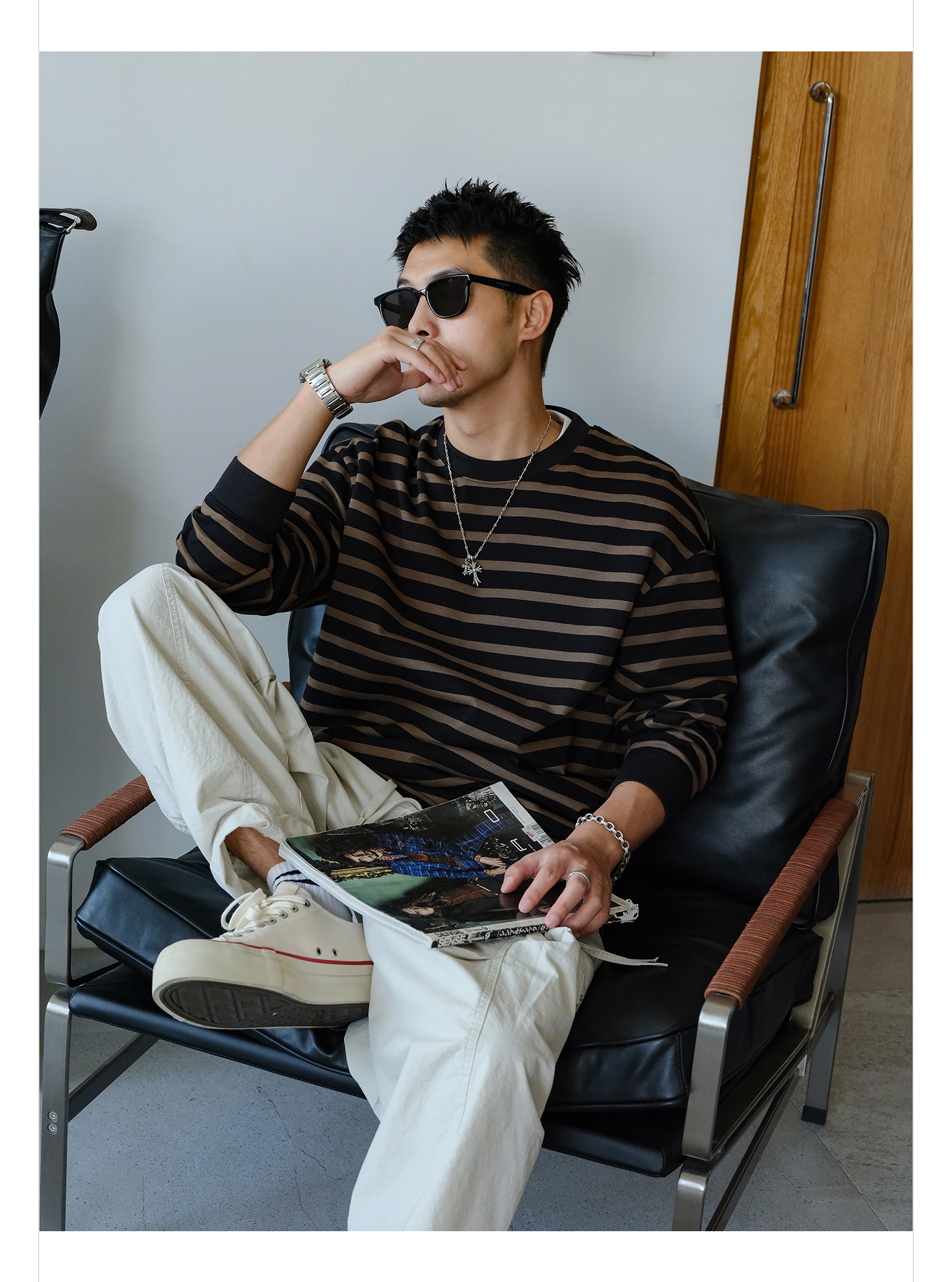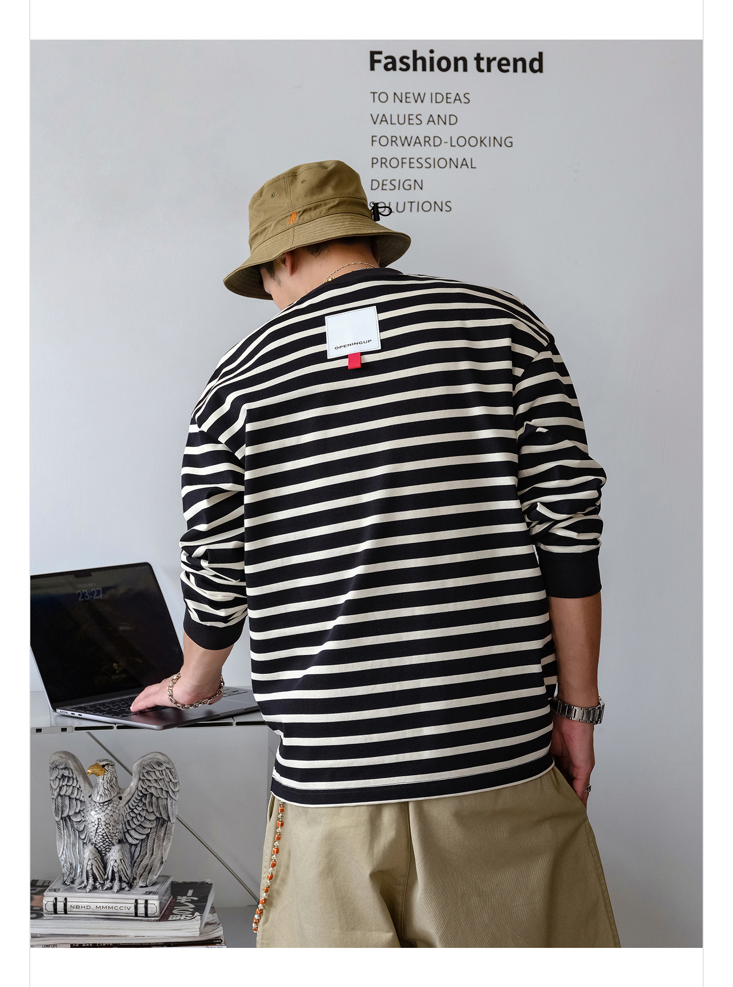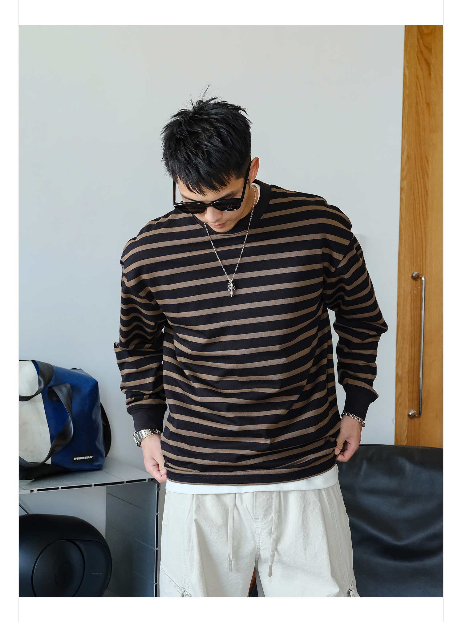 徐太浪310g美式撞色条纹卫衣男2025新款秋季男装休闲内搭通勤上衣
