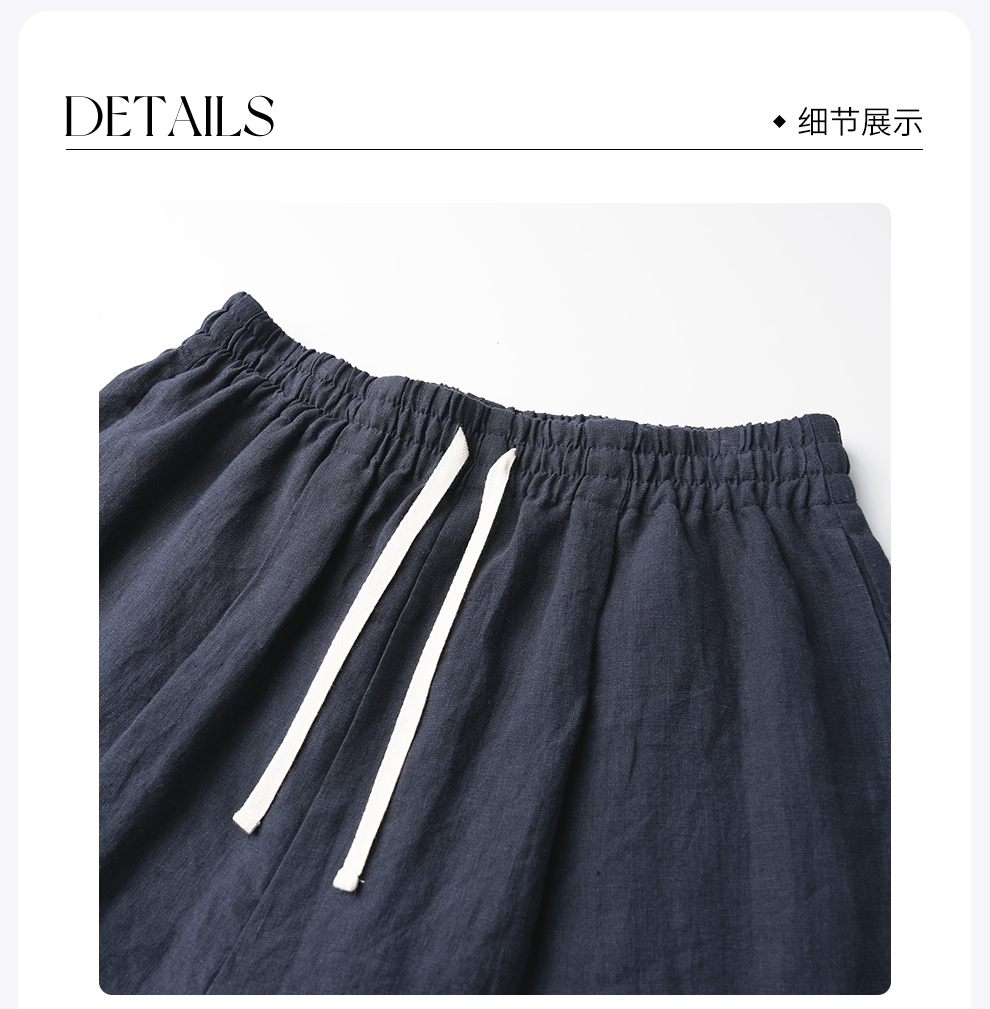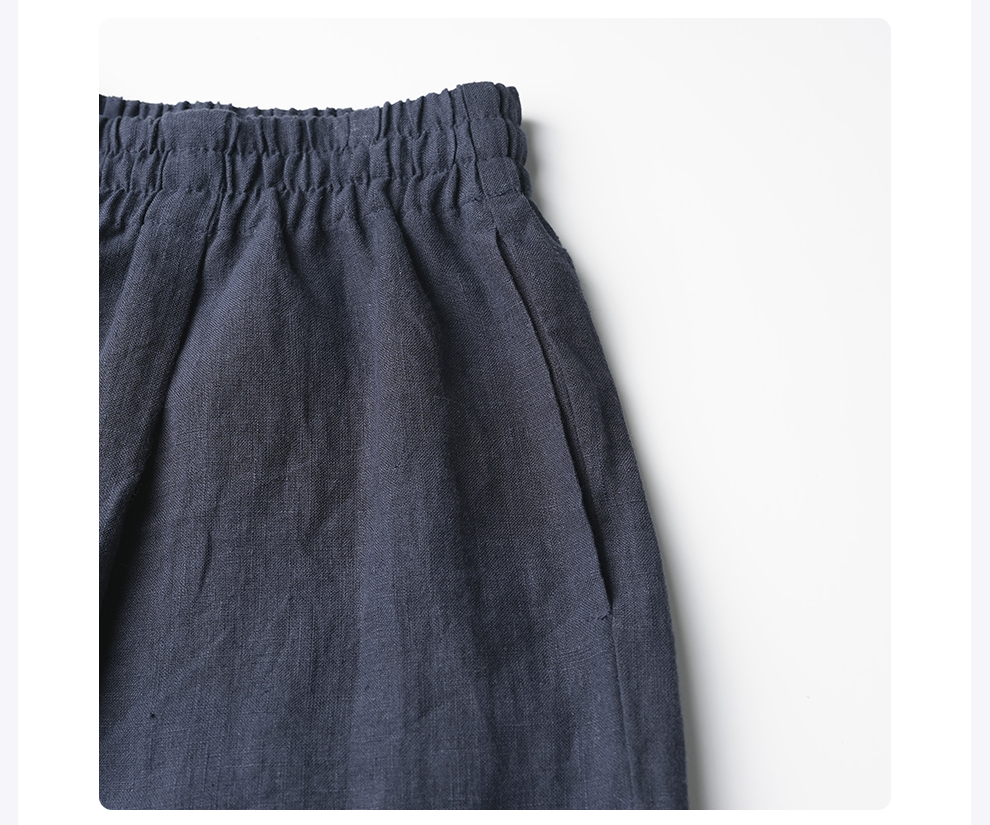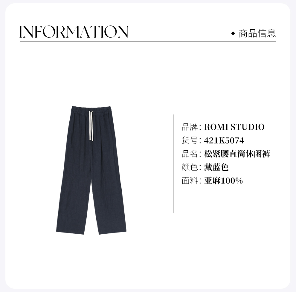 ROMI STUDIO“内心规则”100亚麻砂洗加软松紧腰直筒休闲裤421K5074