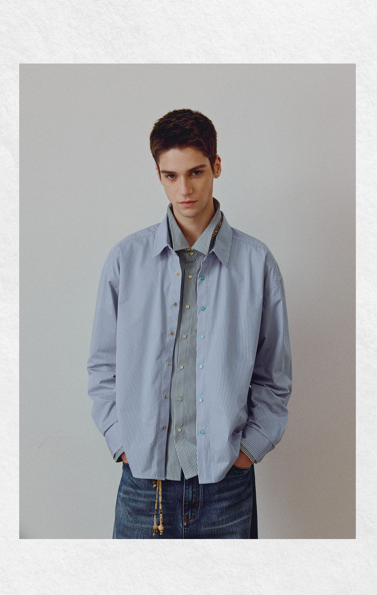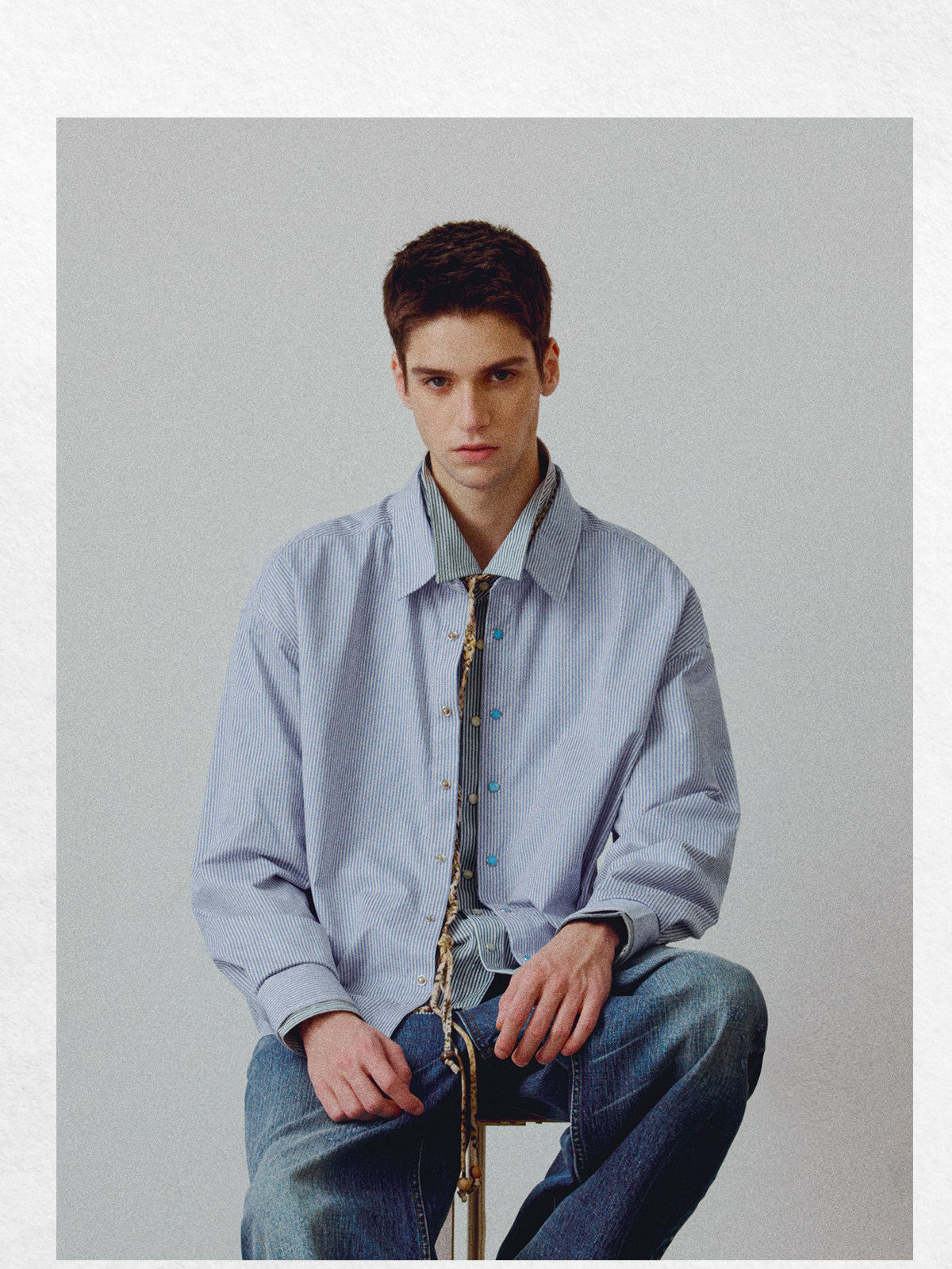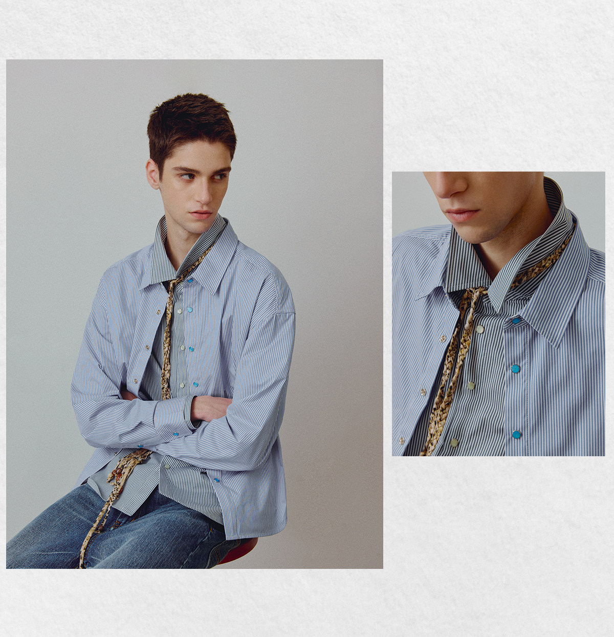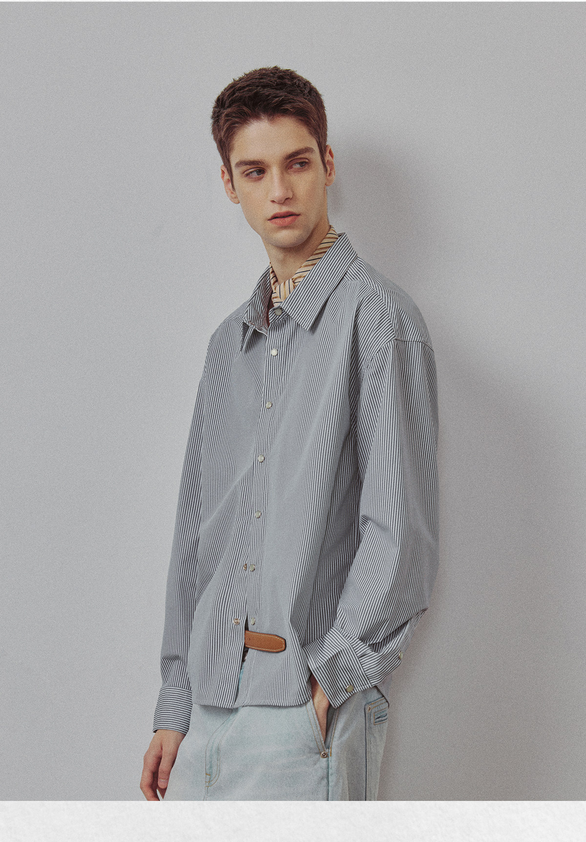 714street高端线BEHALF 东丽「猫眼扣」筋骨感条纹记忆回弹衬衫